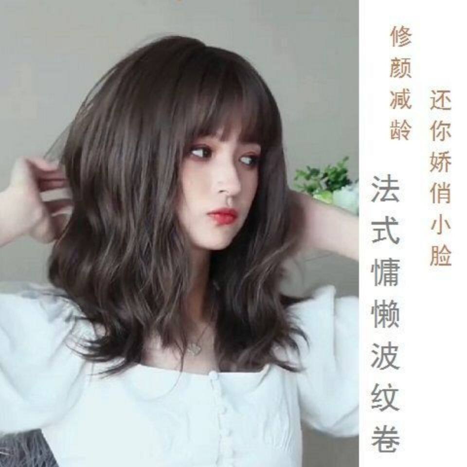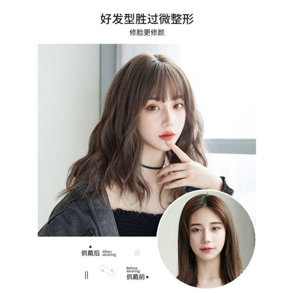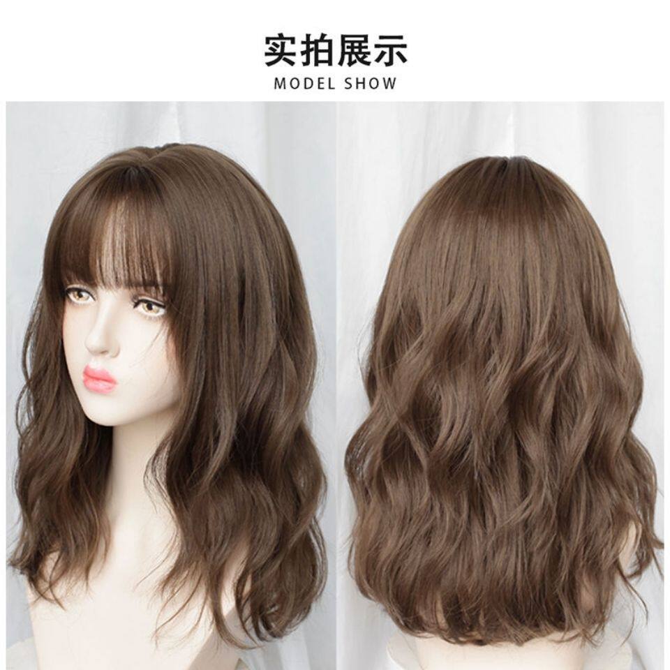 Wig for women with short curly hair, natural girl with medium and long hair, wool curly wig, bangs and clavicle short hair