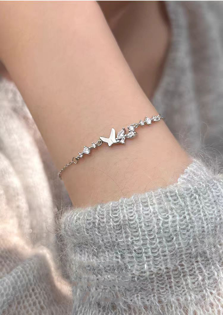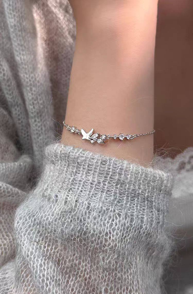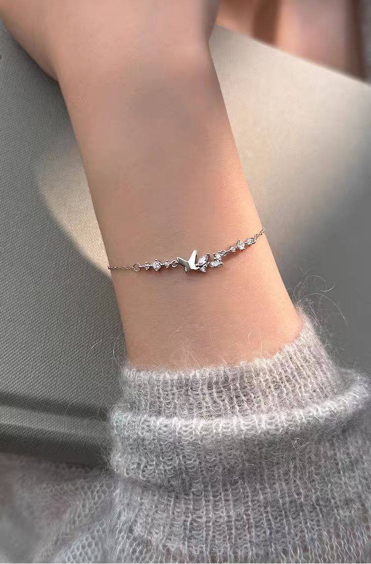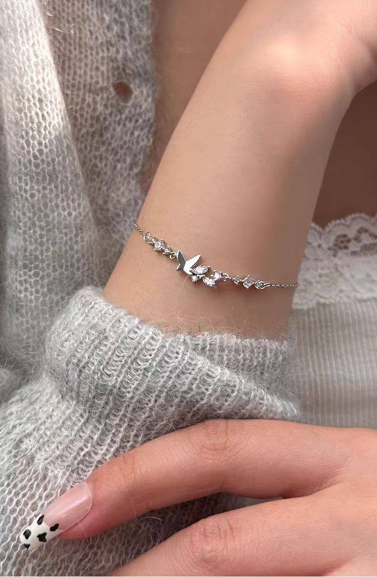 925 sterling silver shiny butterfly bracelet for women, personalized simple bestie student gift accessories new ins lettering
