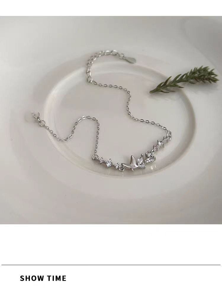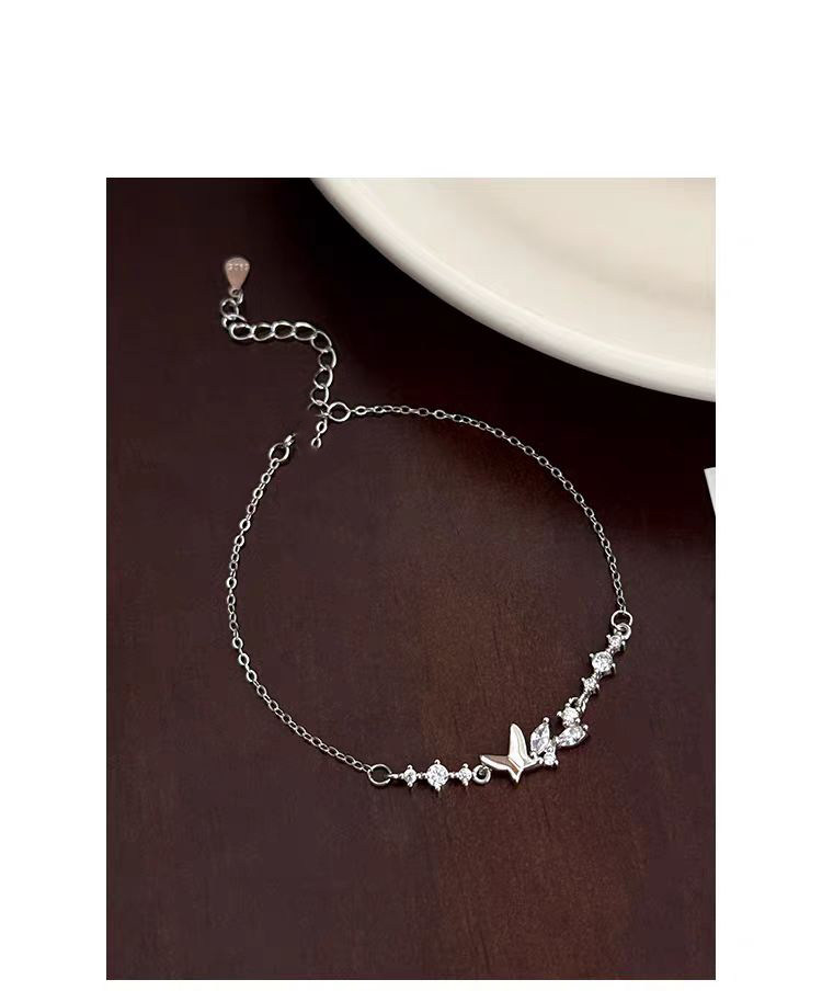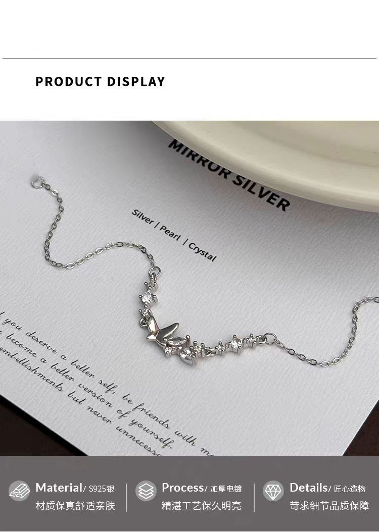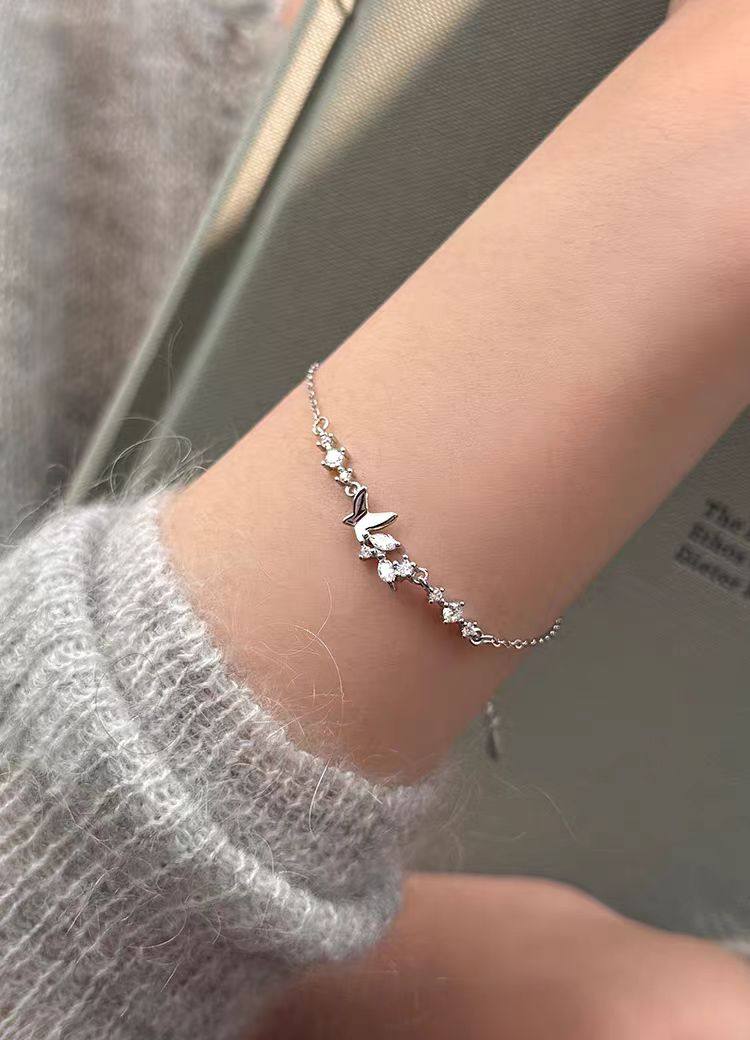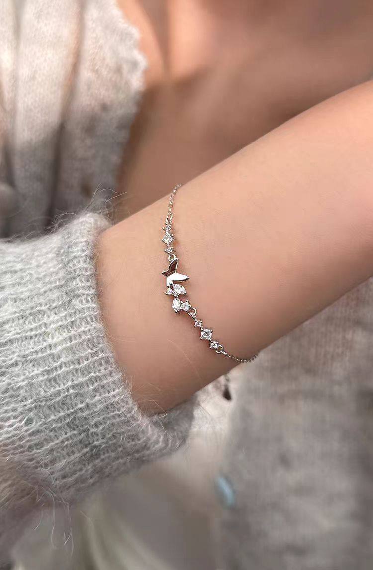 925 sterling silver shiny butterfly bracelet for women, personalized simple bestie student gift accessories new ins lettering