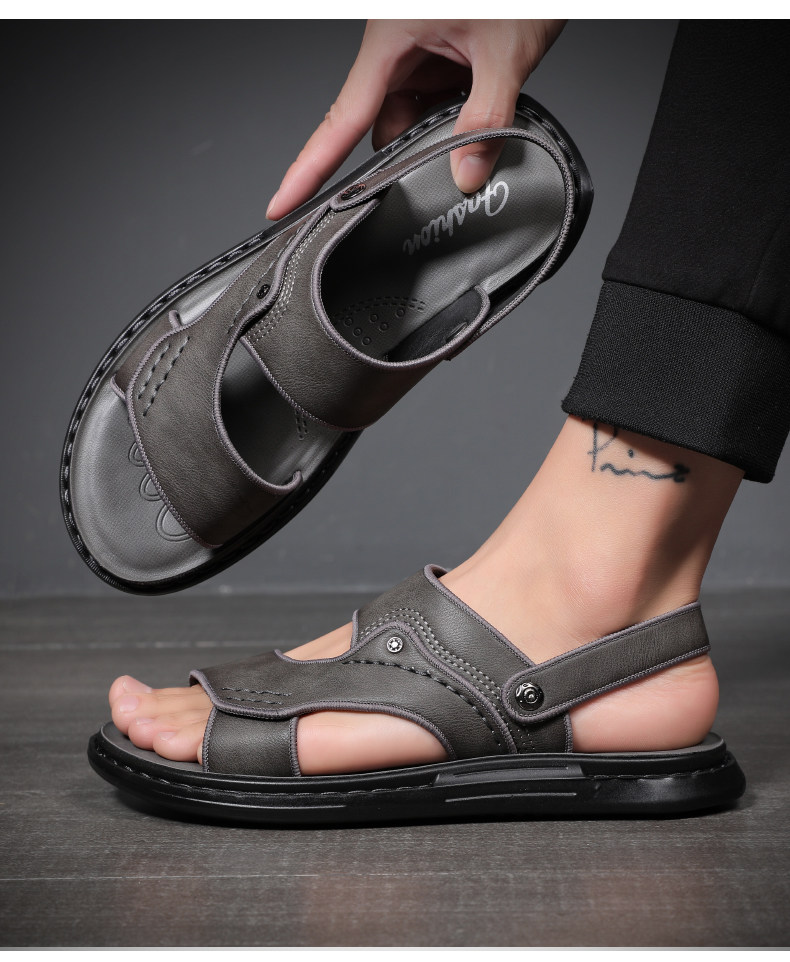 凉鞋男真皮2024新款夏季外穿休闲沙滩鞋夏天防滑防臭爸爸男士拖鞋