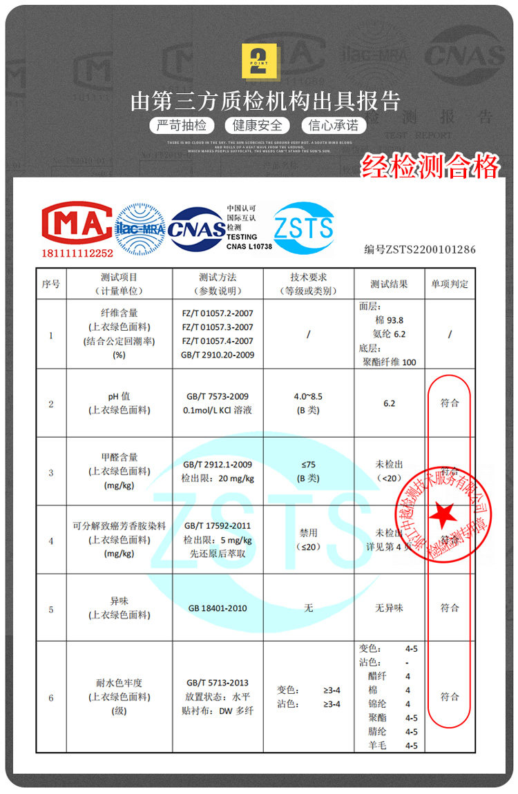 材质成分 棉95.1% 其他4.9%