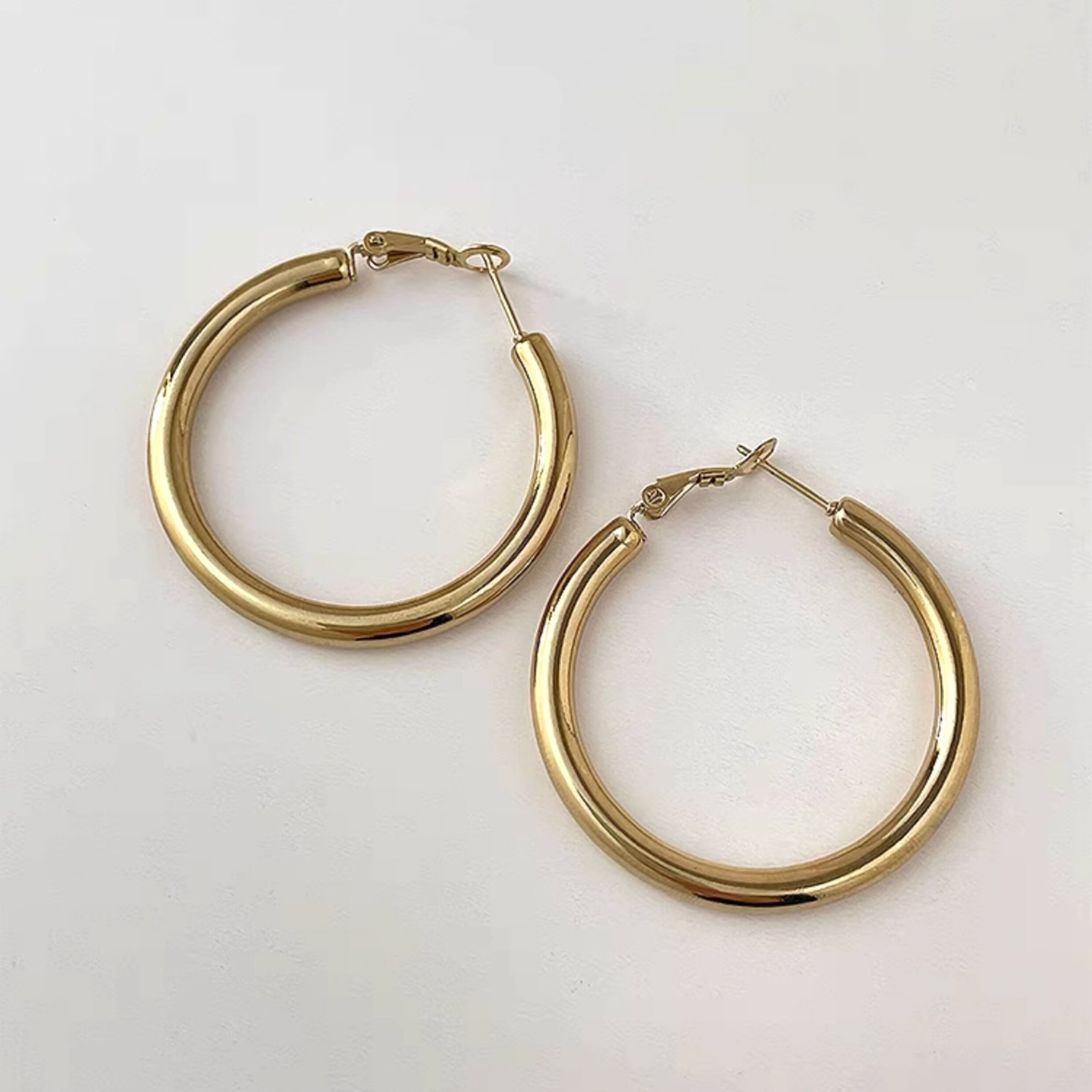 Fashionable and classic European and American large hoop non-fading titanium steel gold-plated earrings ins simple hip-hop hoop earrings and ear clips