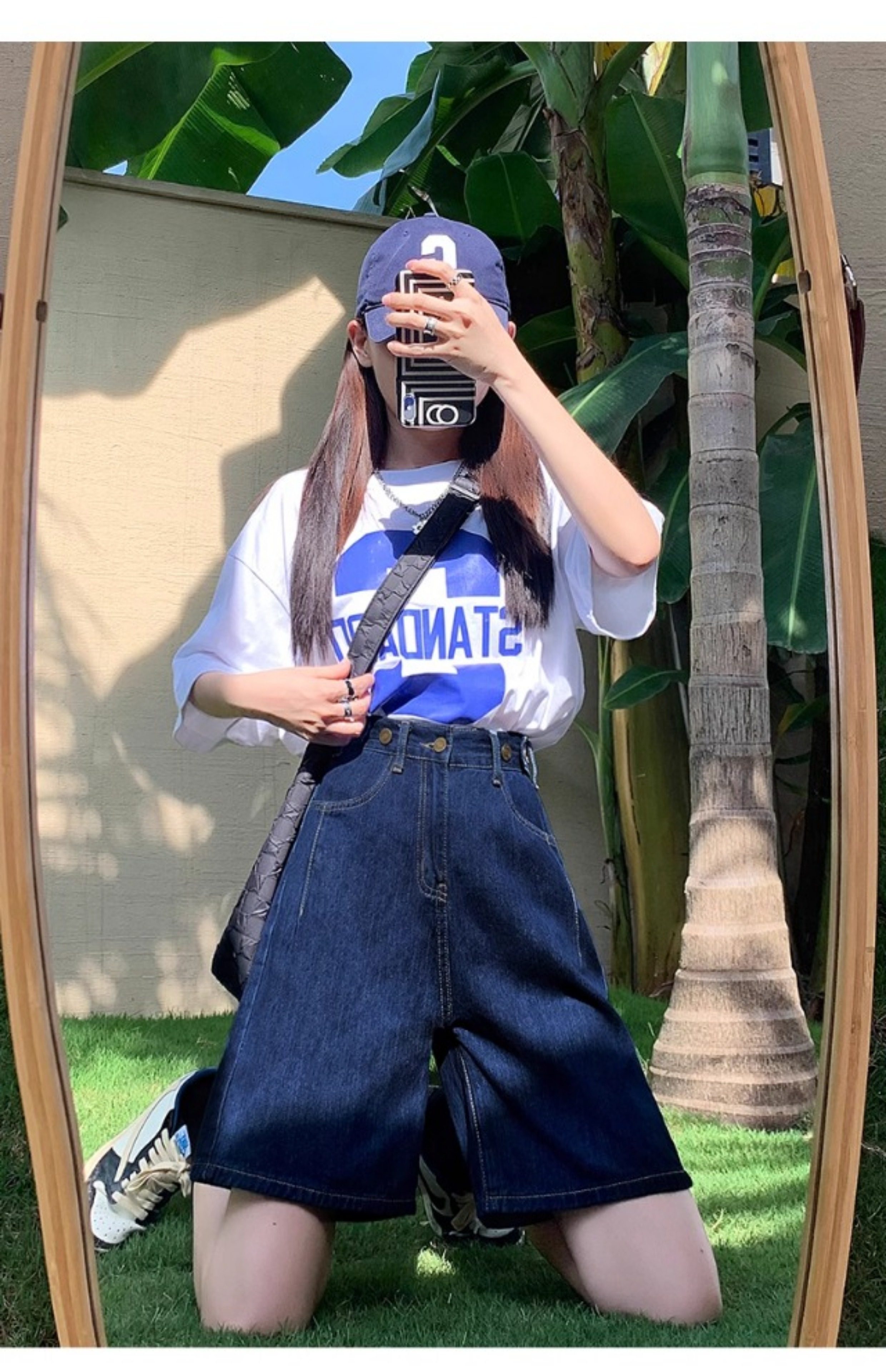 Темно-синие джинсовые шорты большого размера для женщин, новинка 2025 года, летний стиль, свободные утягивающие широкие брюки с пятью точками для маленьких людей