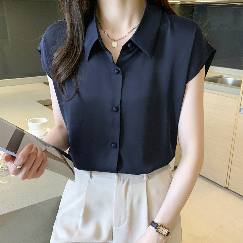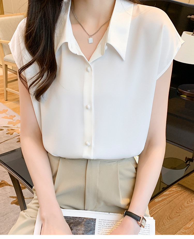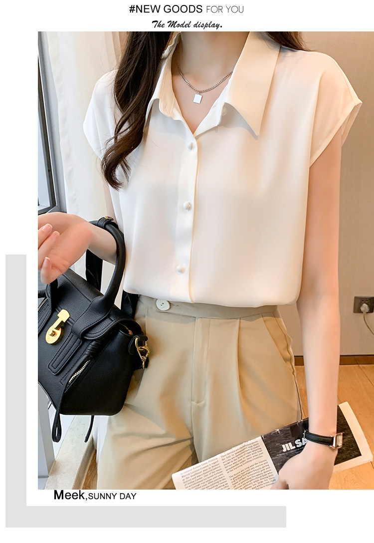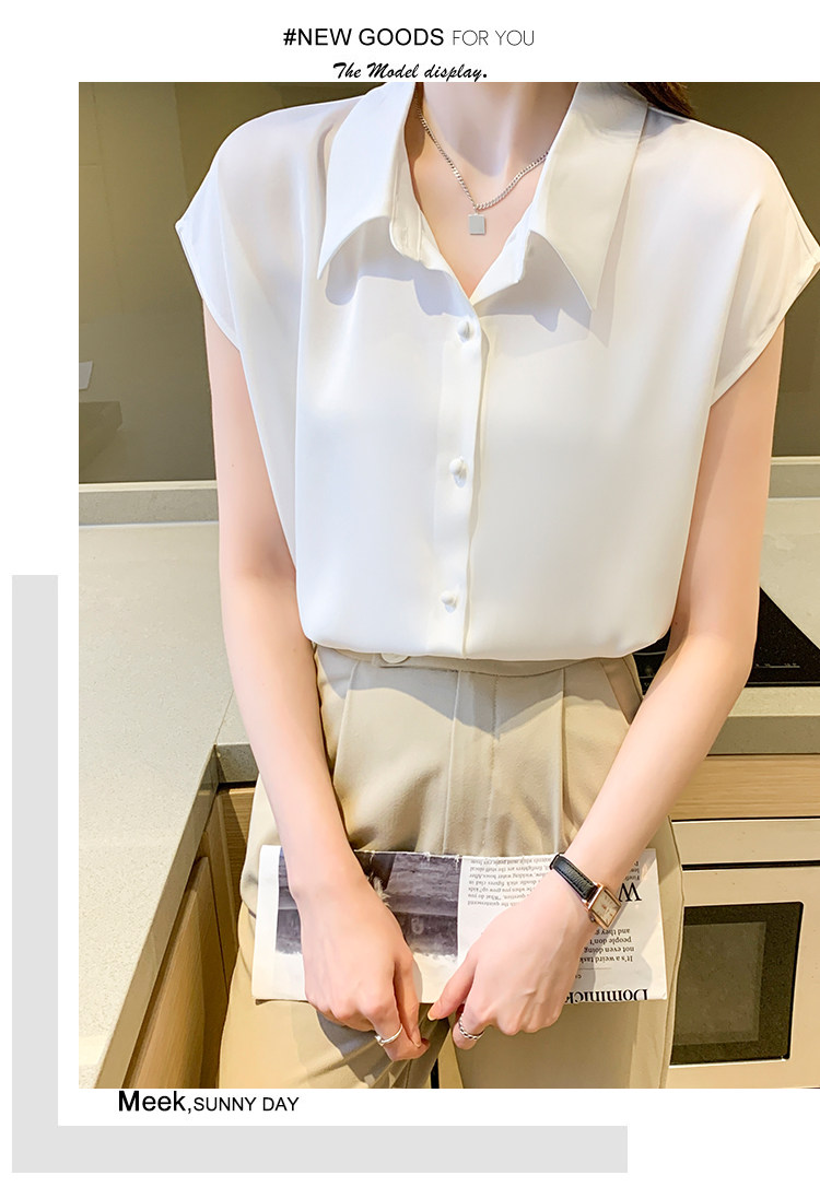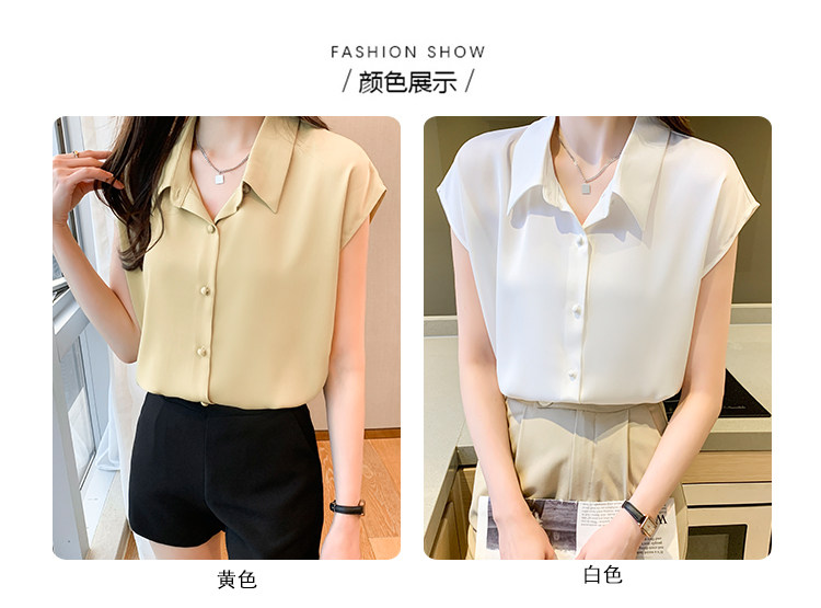 夏季白色短袖雪纺衬衫通勤女装2026年新款潮无袖上衣职业女士衬衣