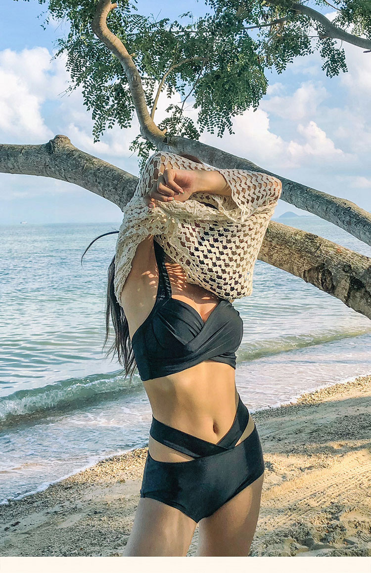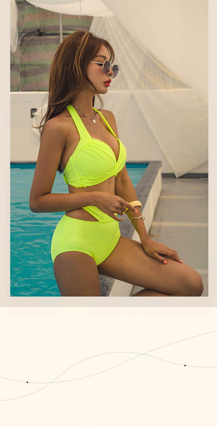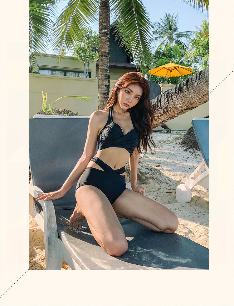 DK European and American high-end swimsuit women's summer sexy halterneck large backless chain low-cut split swimsuit beach bikini
