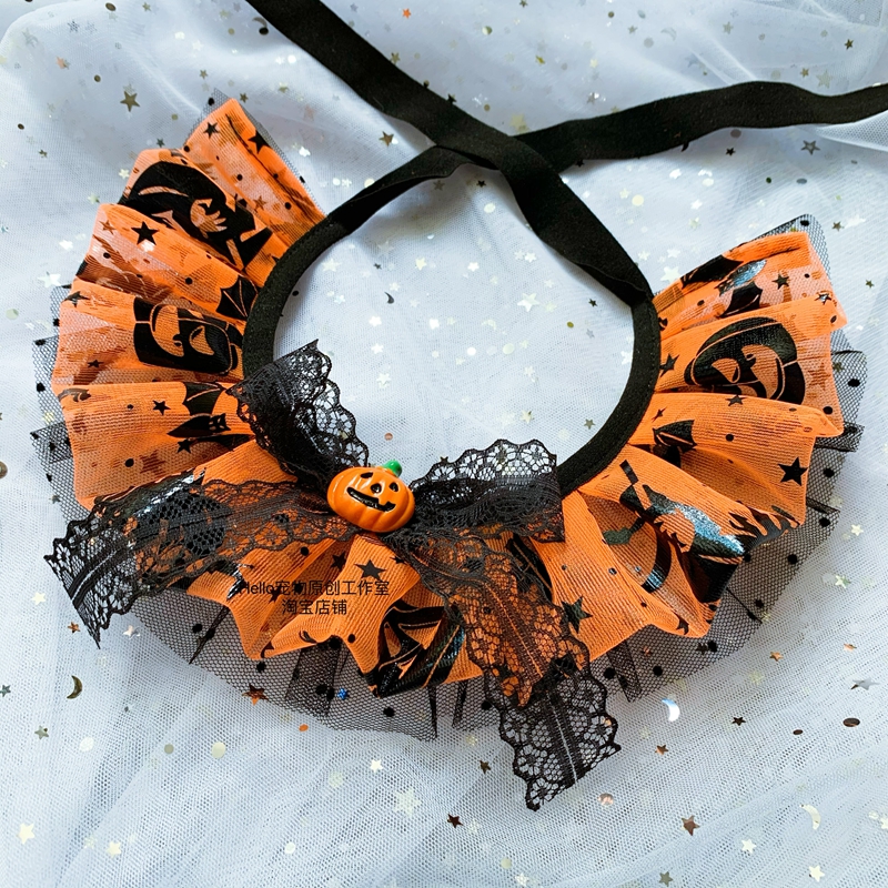 Halloween Pet Bib Dog Bandana Cat Scarf Teddy Bib Handmade Custom Large and Medium-Sized Collar Accessories