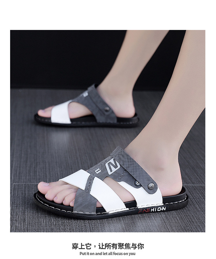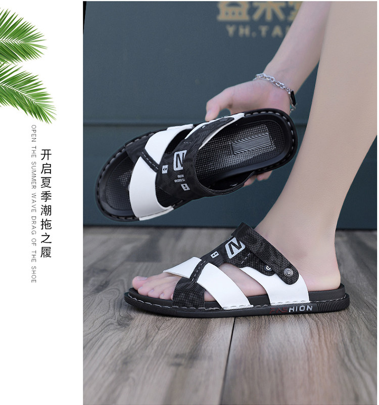 Leather sandals for men, autumn, high-end, non-slip, lightweight beach shoes, dual-use casual men's driving sandals and slippers