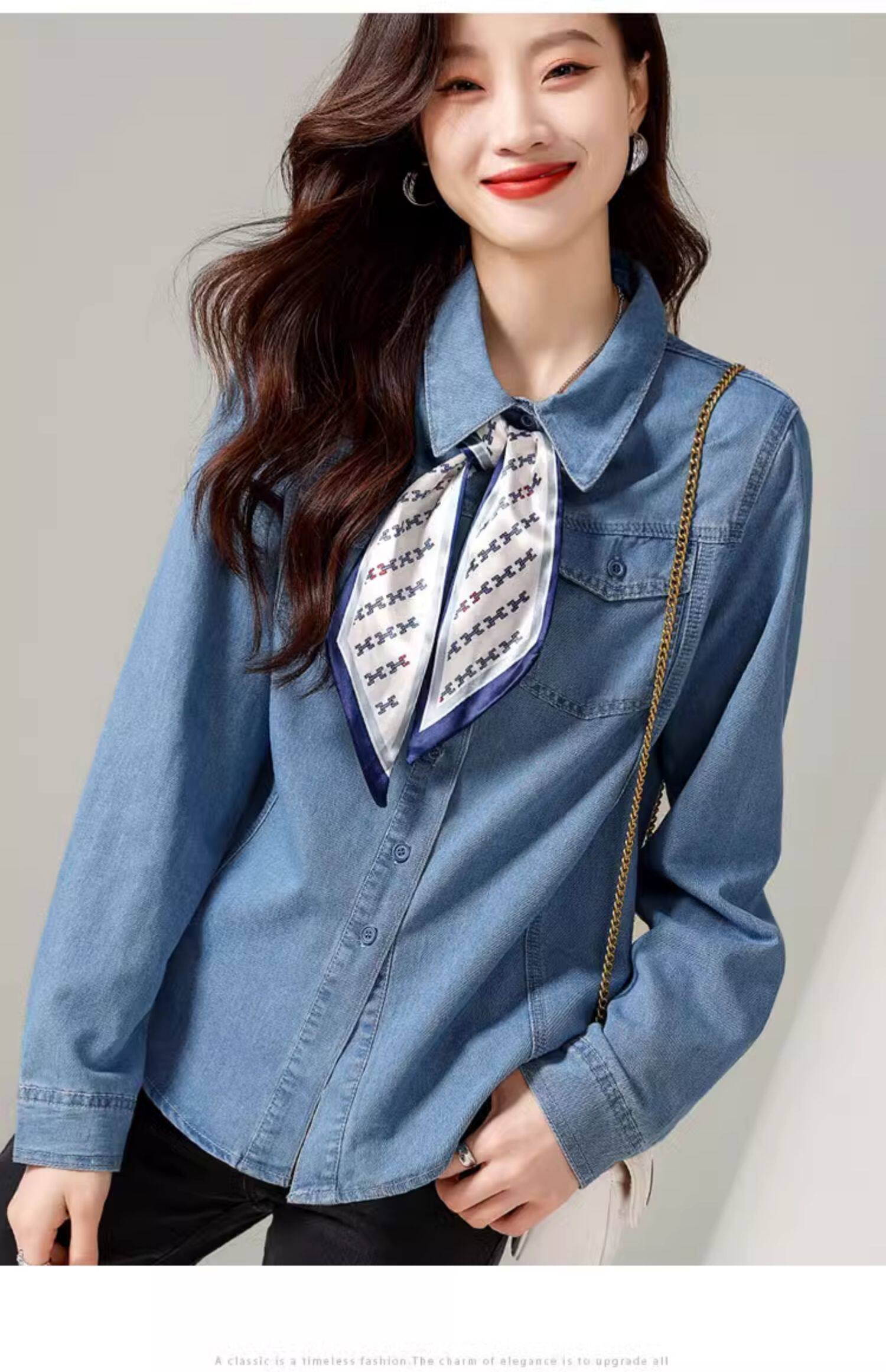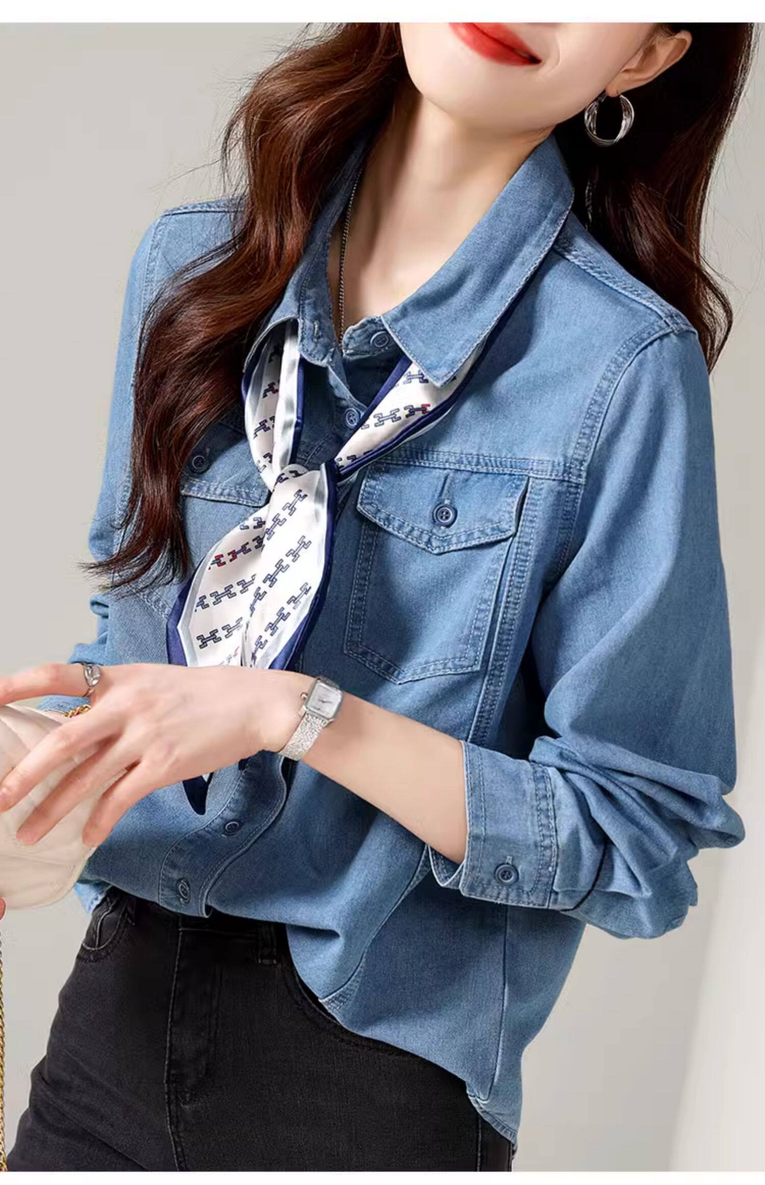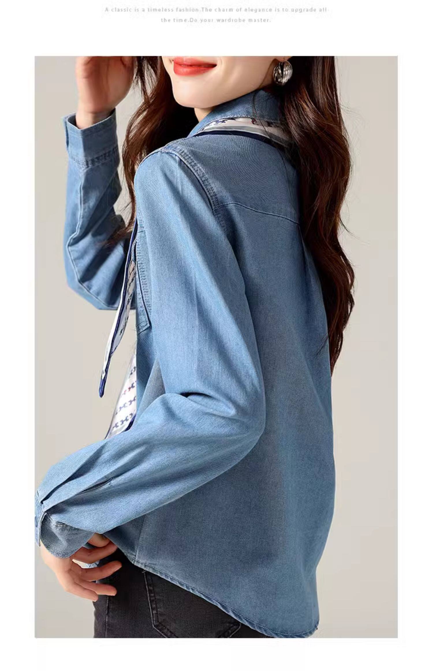 Outlet brand counter foreign trade women's clothing clearance women's clothing with scarf fashionable temperament versatile denim shirt
