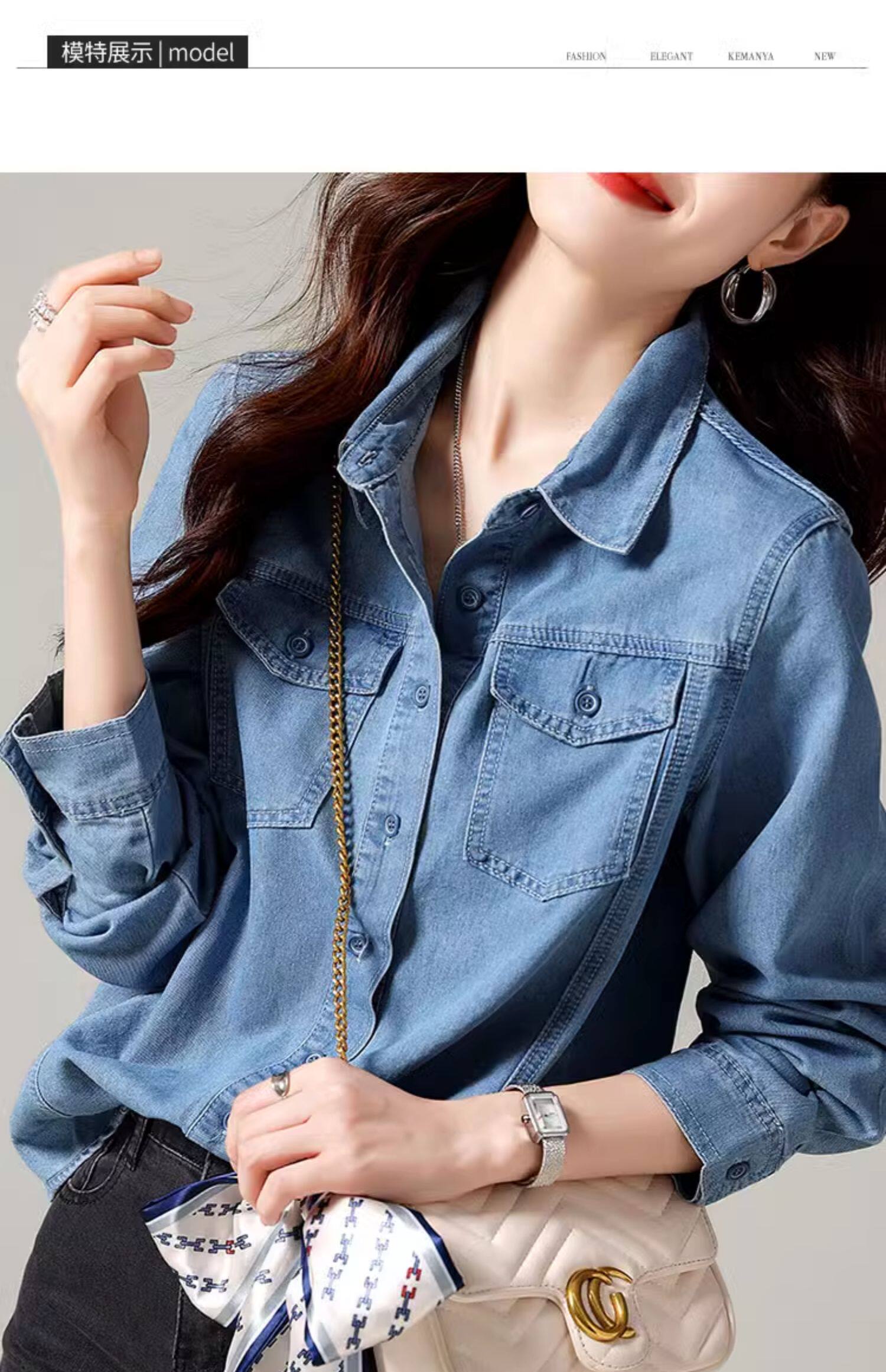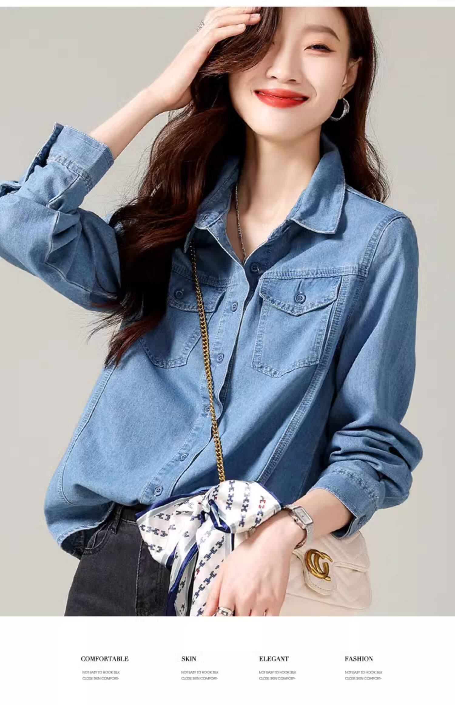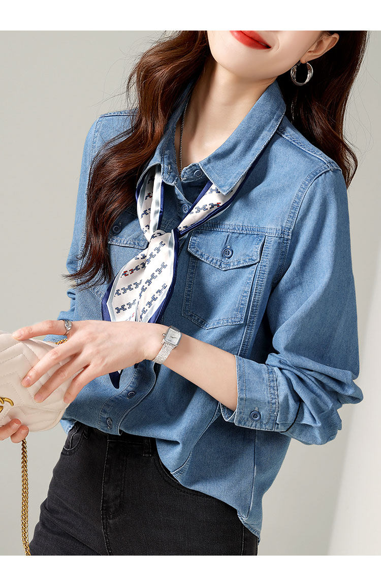 Outlet brand counter foreign trade women's clothing clearance women's clothing with scarf fashionable temperament versatile denim shirt