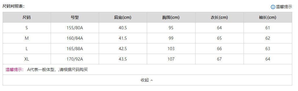 China (cm) 160-165/84-86 165-170 / 88-90 167-172 / 92-96 168-173 / 98-102 170-176 / 106-110