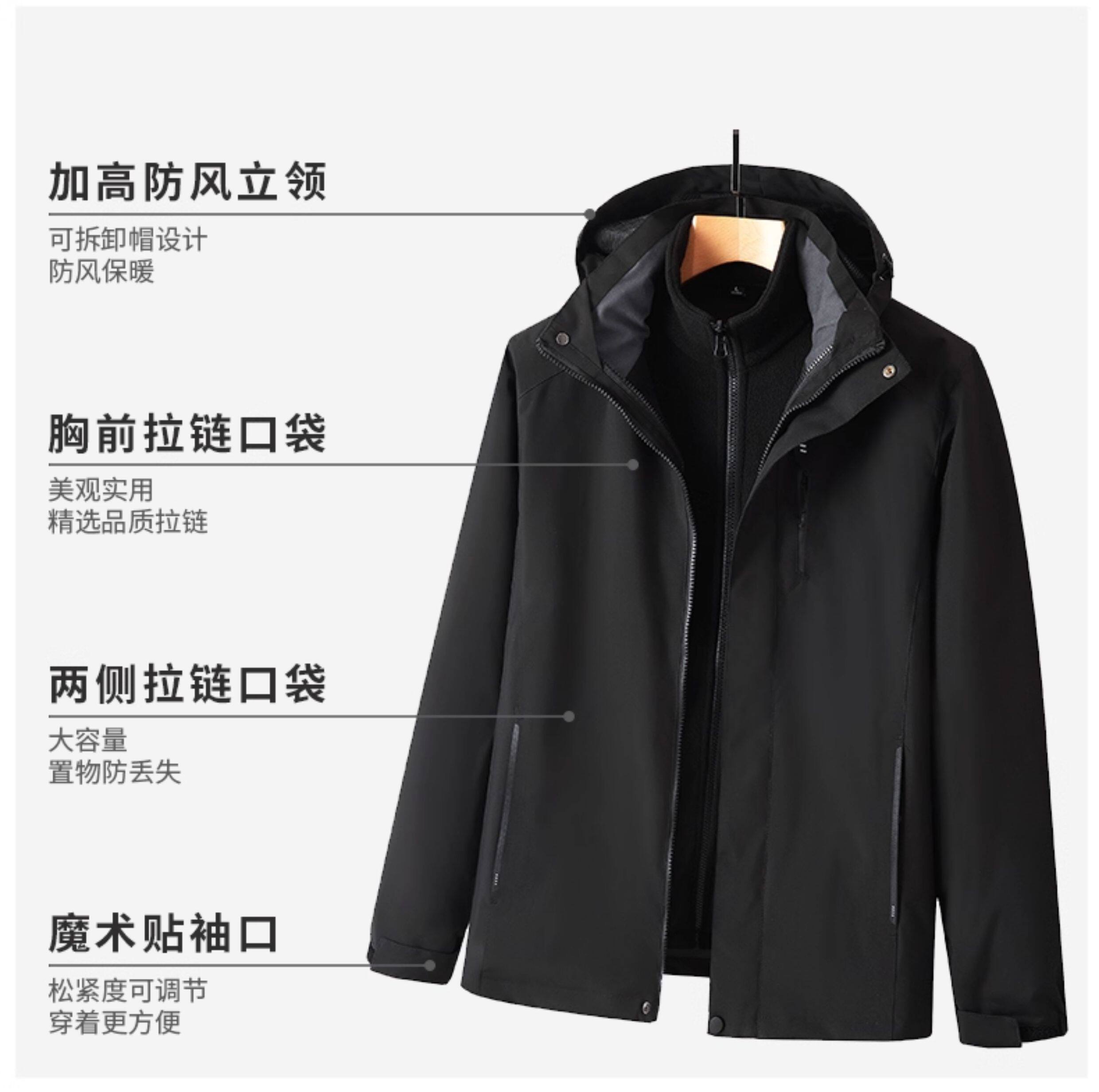Spring and autumn thick men's three-in-one jacket, middle-aged dad's winter velvet jacket, middle-aged and elderly warm jacket