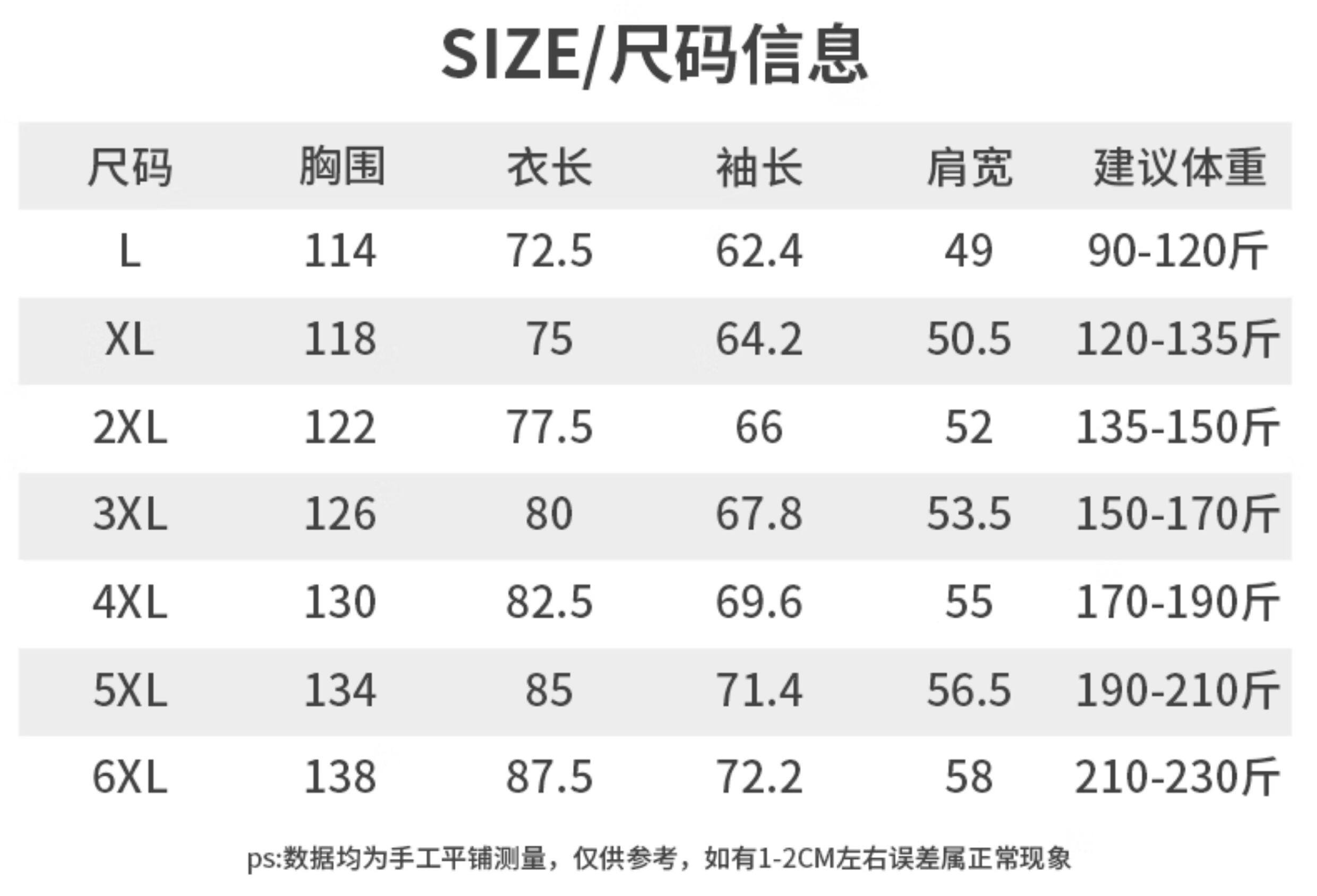 China (cm) 165 / 88-90 170 / 96-98 175 / 108-110 180 / 118-122 185 / 126-130