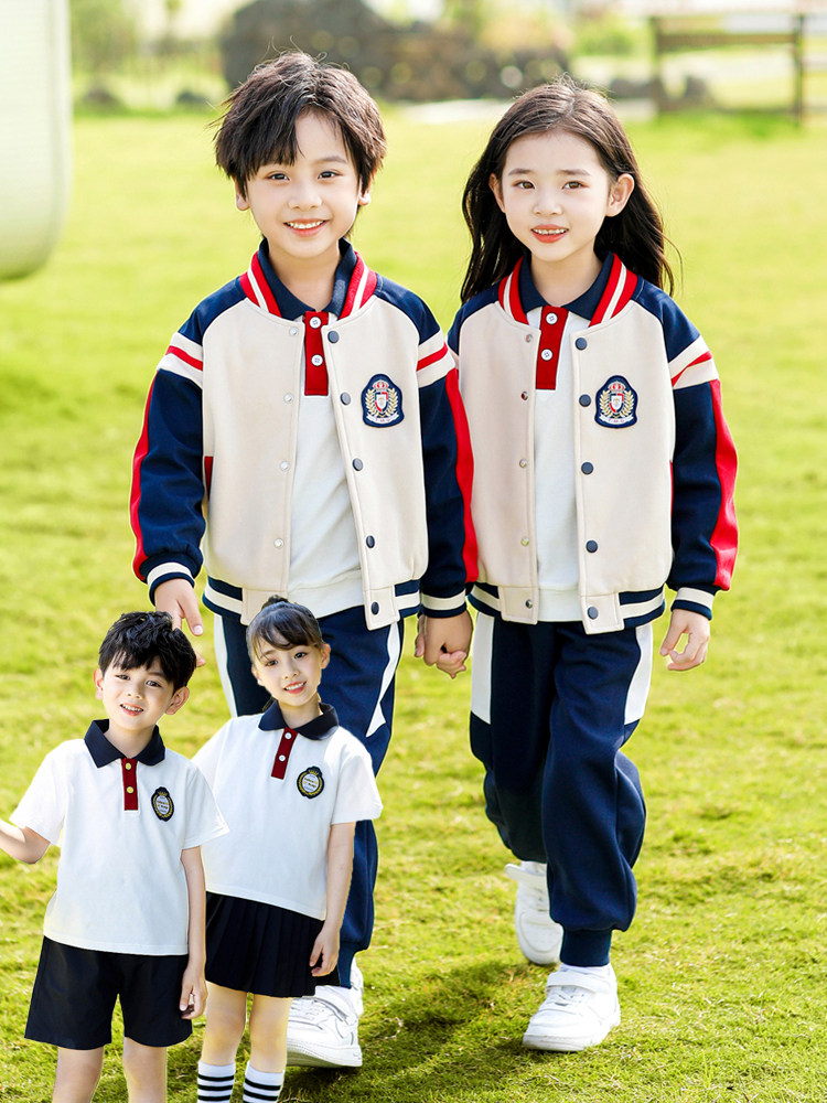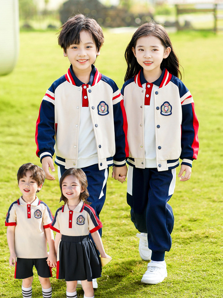 Pure Cotton Kindergarten Uniforms, Spring and Autumn Baseball Uniforms, Red Three-Piece Suits, School Uniforms, Primary School Students' Sports Uniforms, Class Uniforms