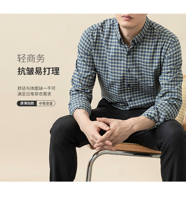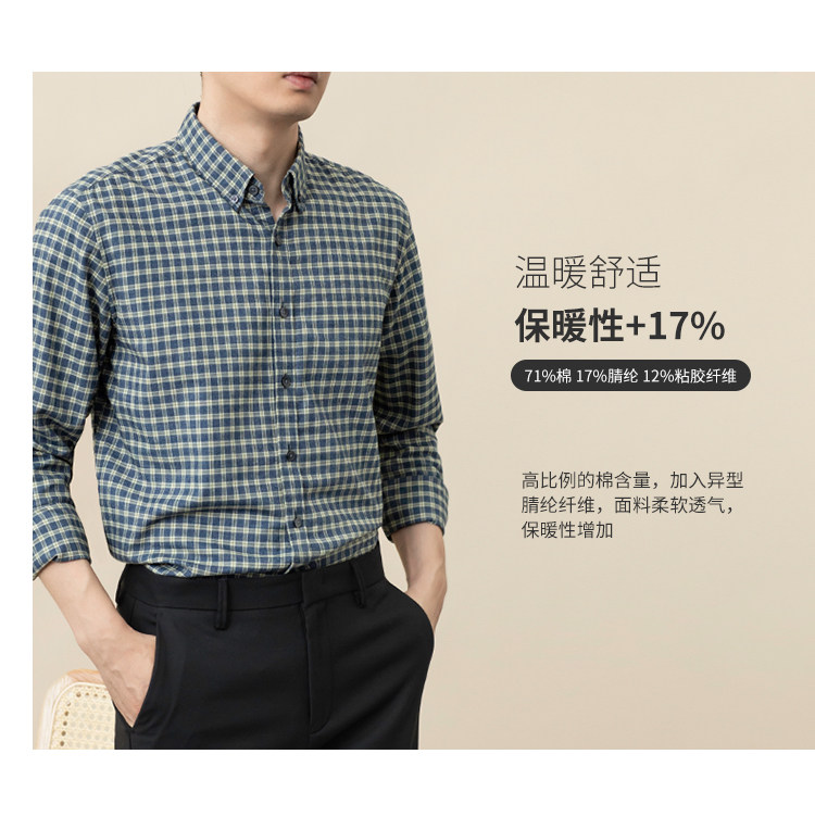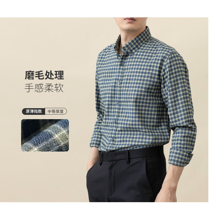 2025 autumn brushed cotton plaid shirt men's long-sleeved shirt no-iron easy care middle-aged business casual inch shirt
