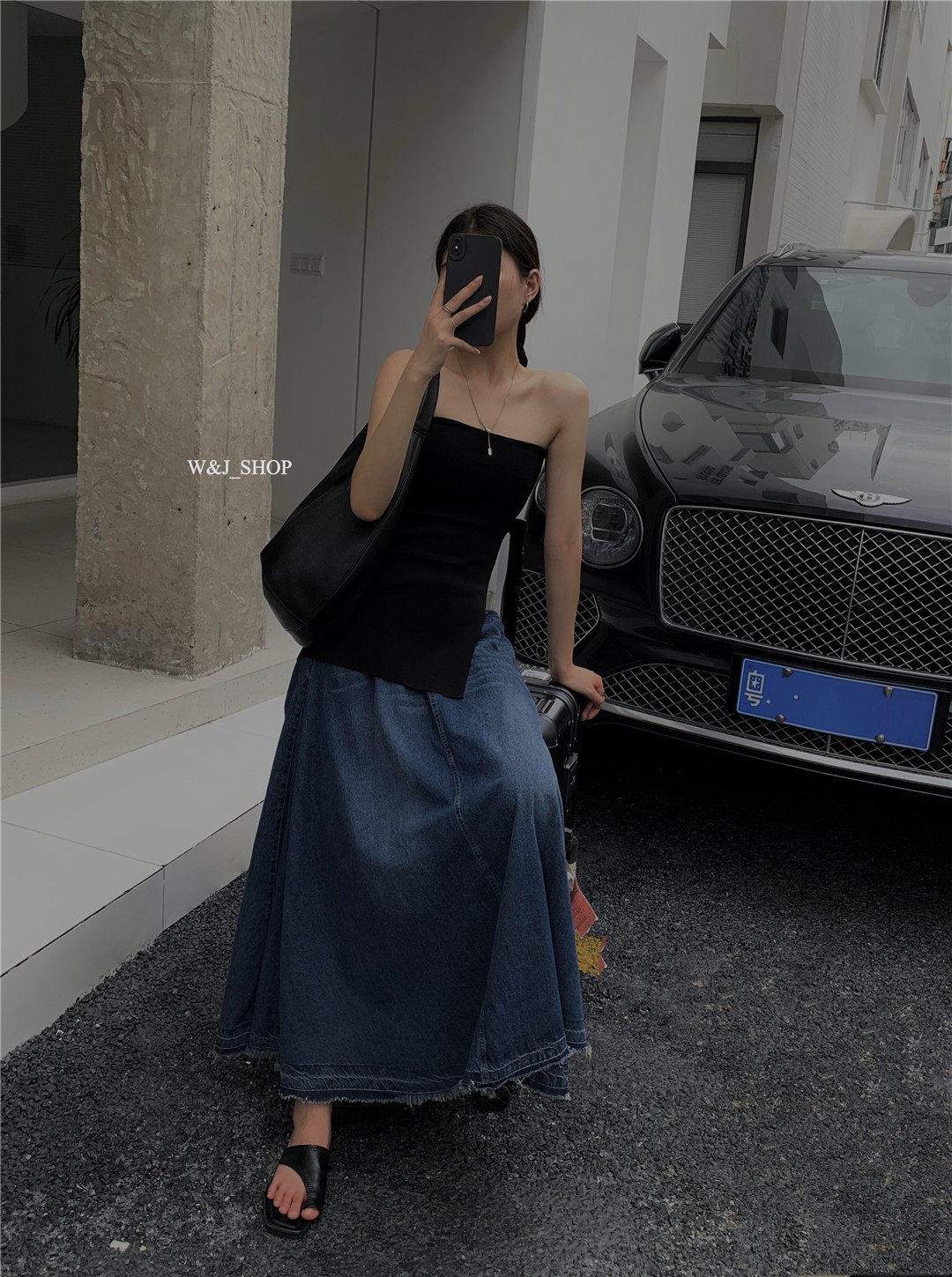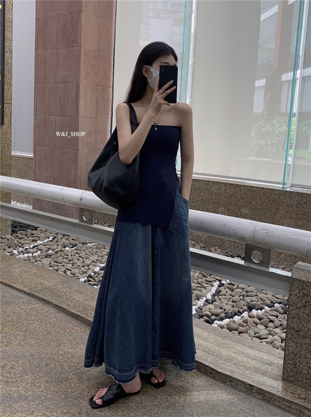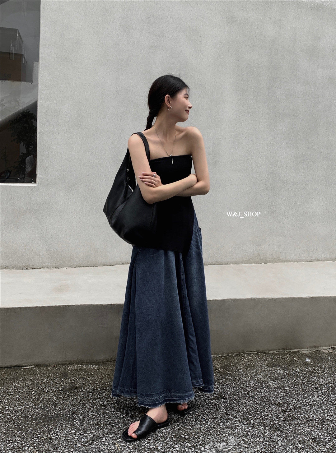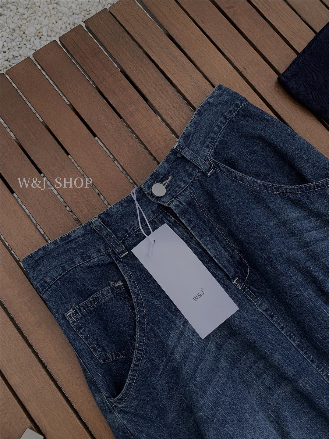 High-end, elegant, high-waisted denim blue, retro-style lazy half-length skirt, niche design, tasseled raw edge skirt