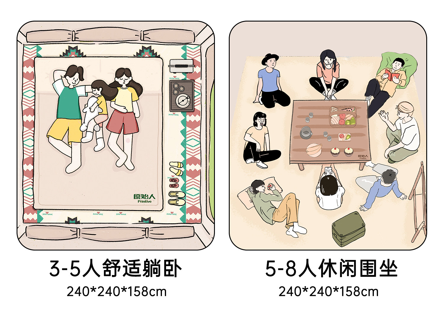 Primitive Man Tent Outdoor Camping Overnight Camping Equipment Full Set Thickened Rainproof Foldable Portable Outdoor Quickly Open