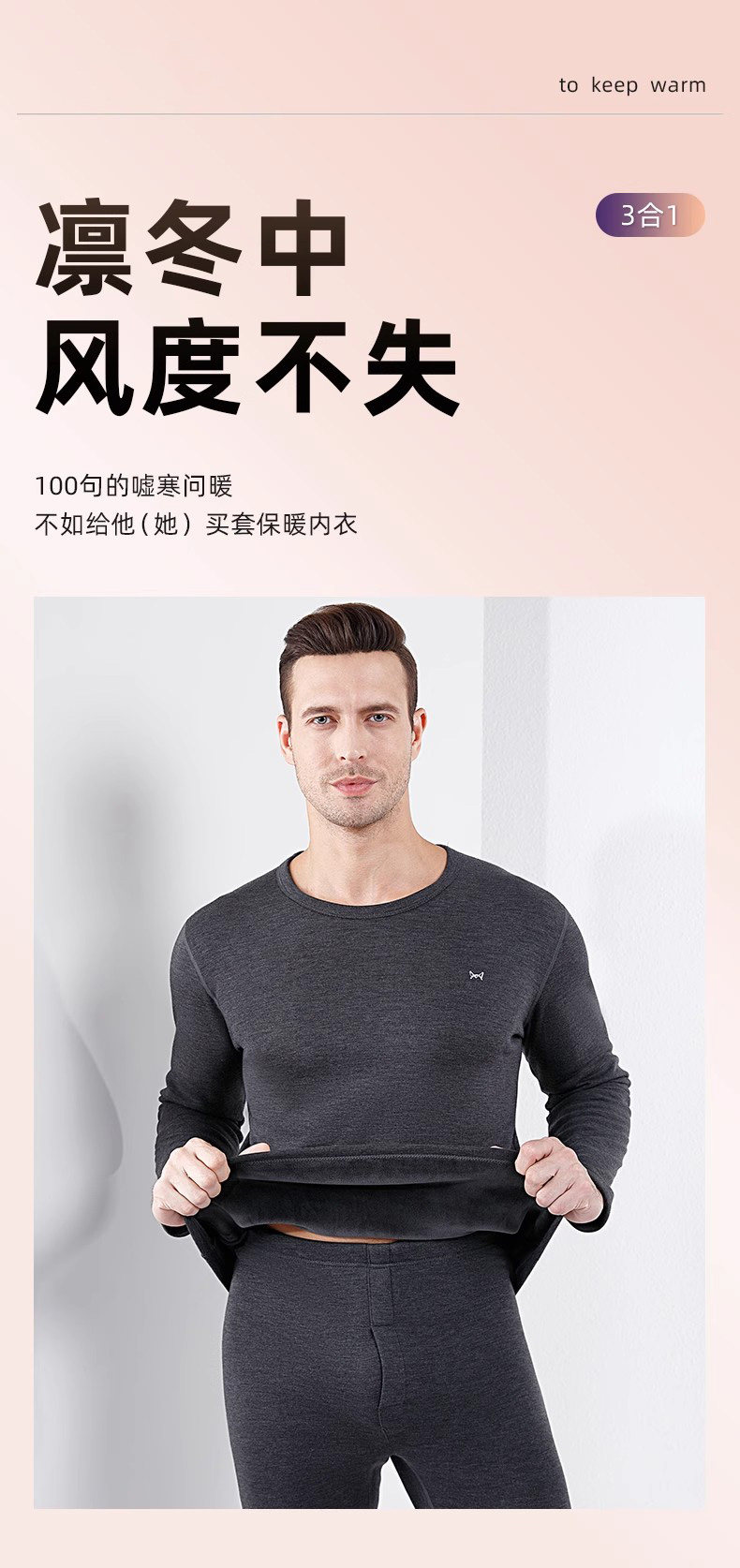猫人保暖内衣男士加绒加厚德绒发热套装青年大码冬季防寒秋衣秋裤