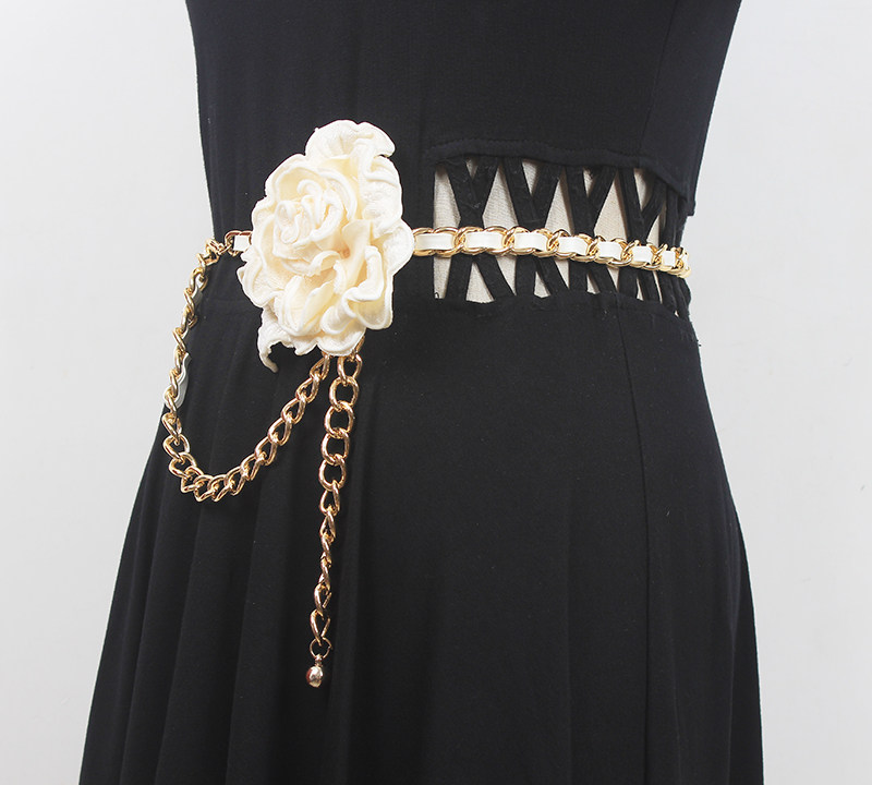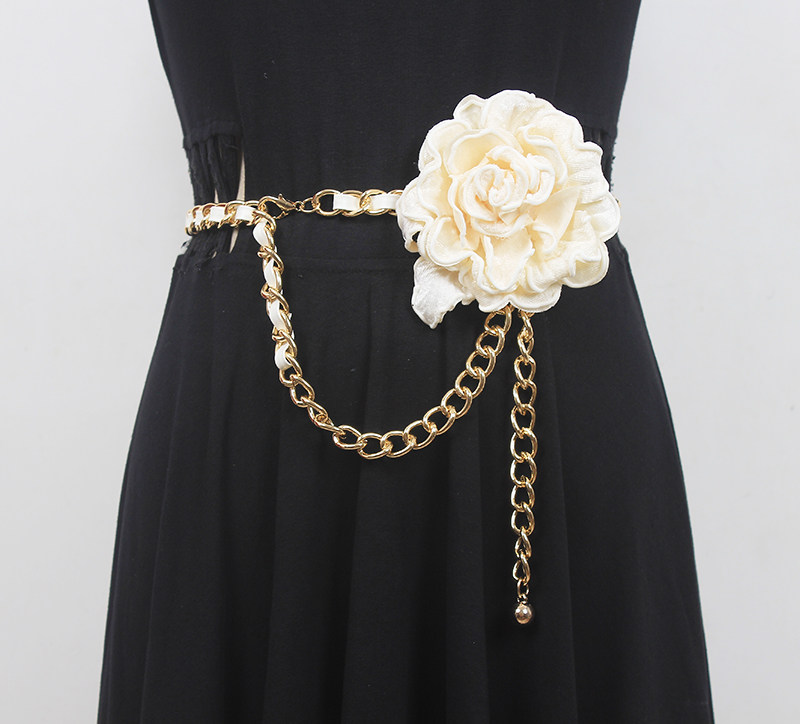 衣服配饰腰链复古西装腰带女珍珠链条花朵装饰腰饰ins潮皮带夏