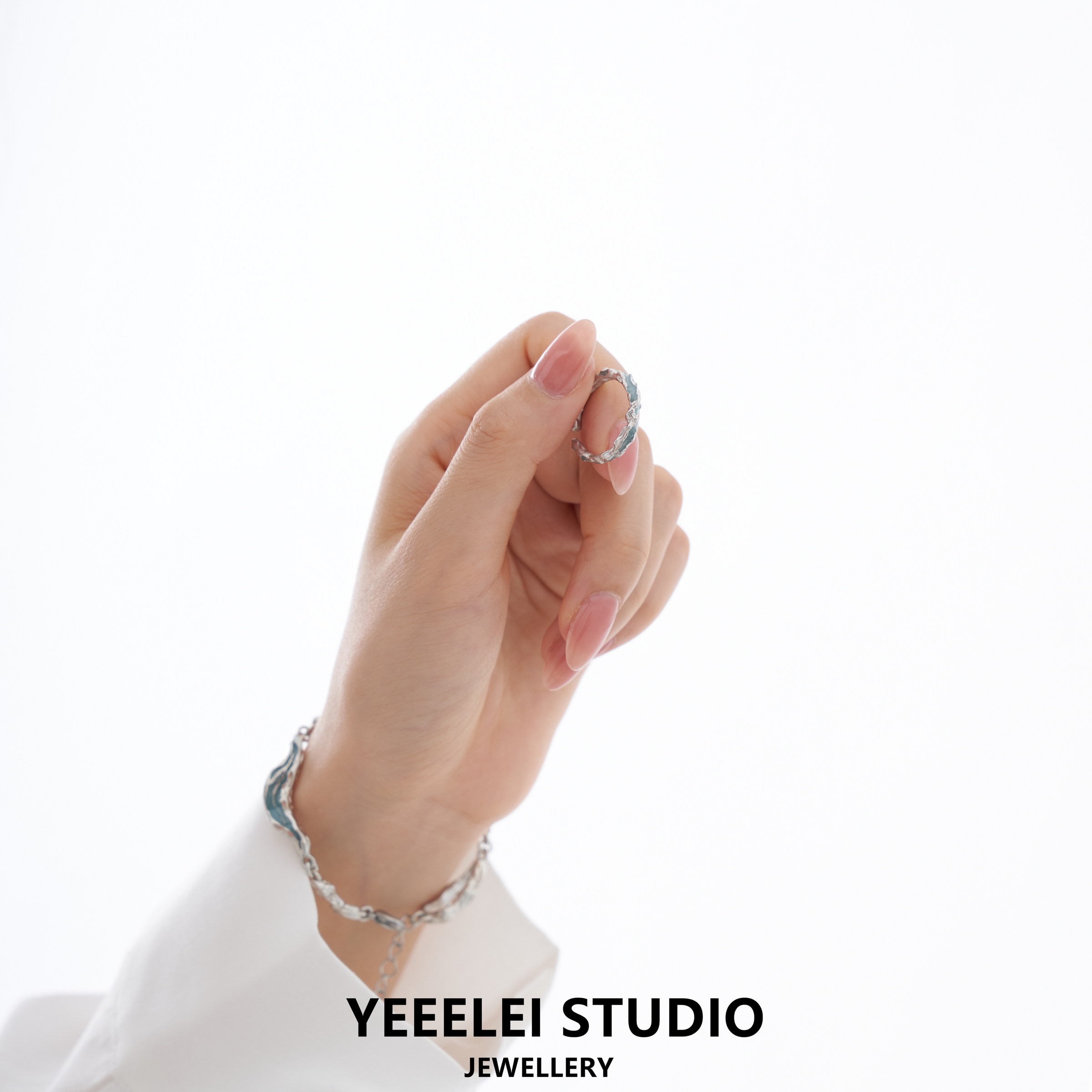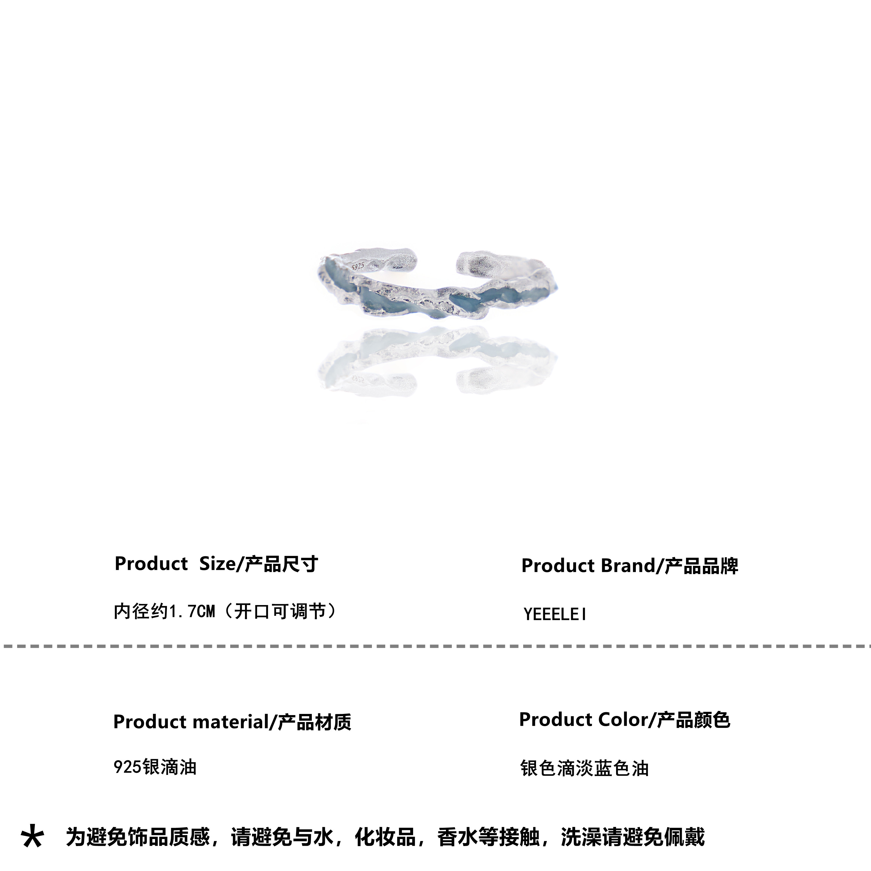 Yeeelei/Original Niche Design Ring, a Light Blue Open-Ended Index Finger Ring, Basic Style 925 Silver Ring