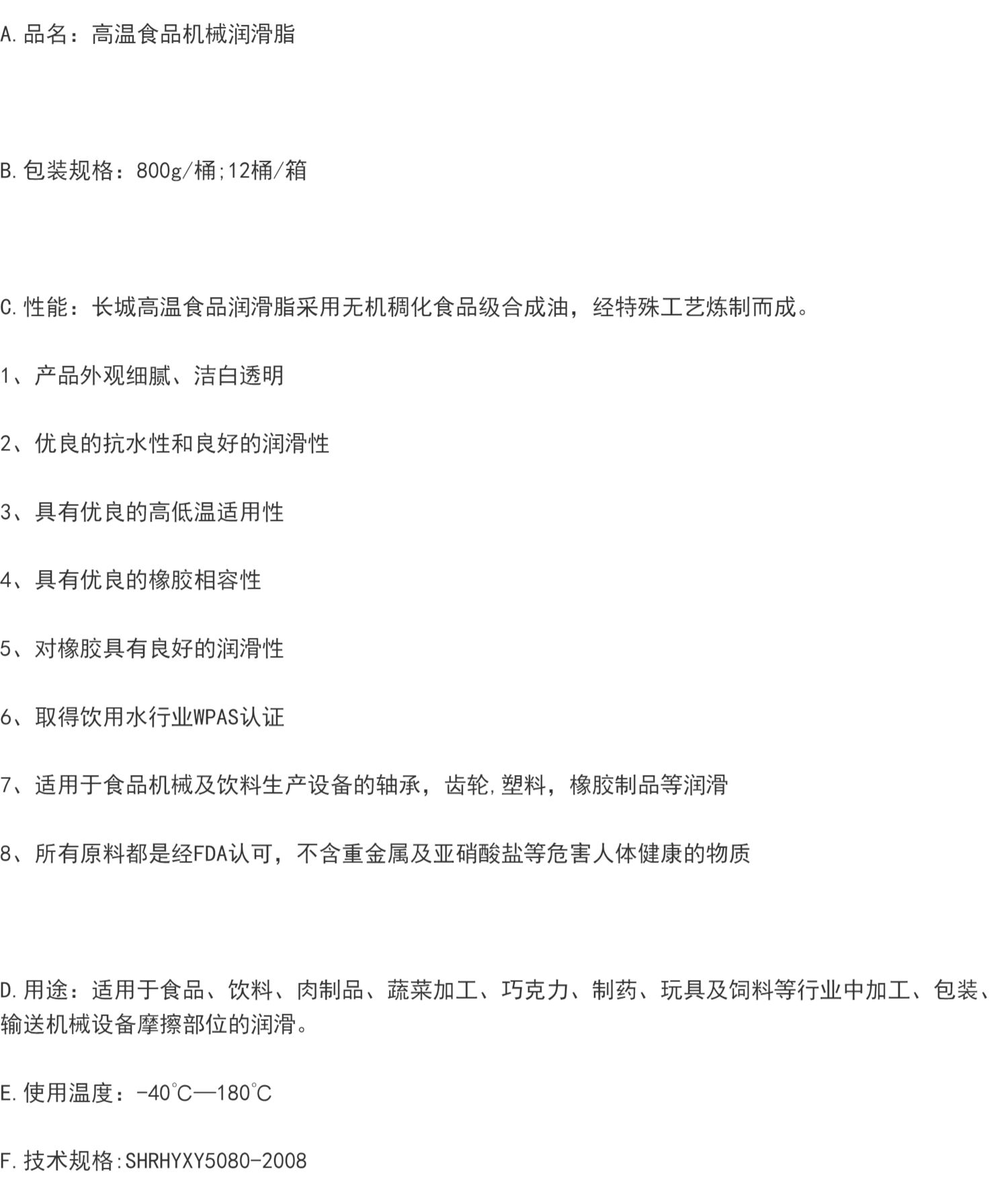 Color Classification Great Wall High-Temperature Food Machinery Grease 800G/Can,Provide Food-Grade Certification Materials.