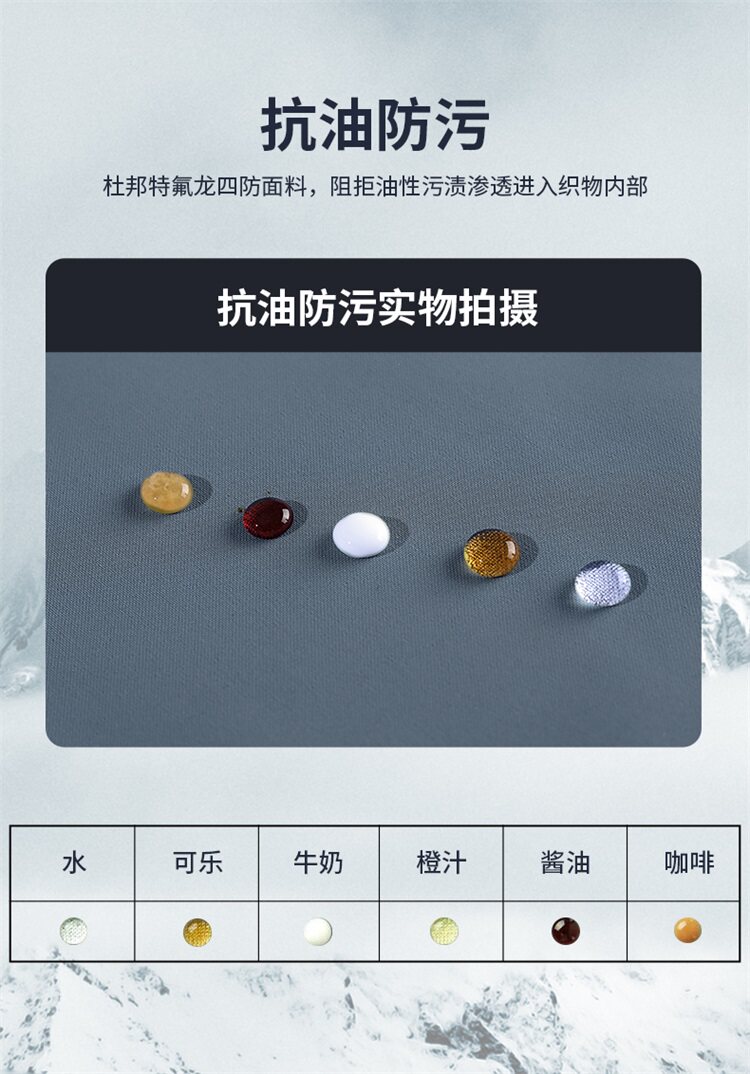Clothing craftsmanship Seamless docking,No iron treatment,Teflon waterproof and oil-proof