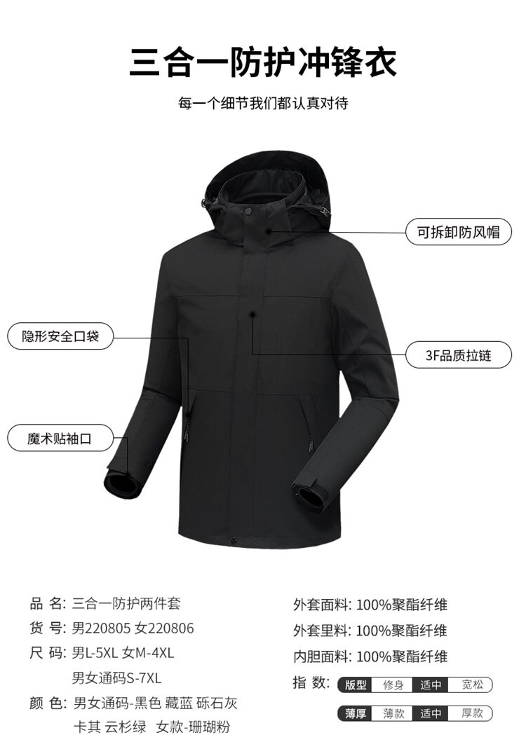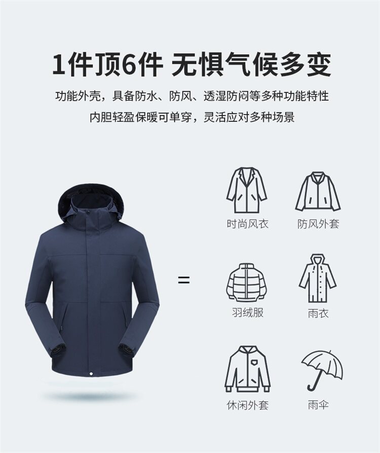 Jacket for men and women, three-in-one outdoor Tibet travel windproof jacket, waterproof jacket with printed logo, customized work clothes