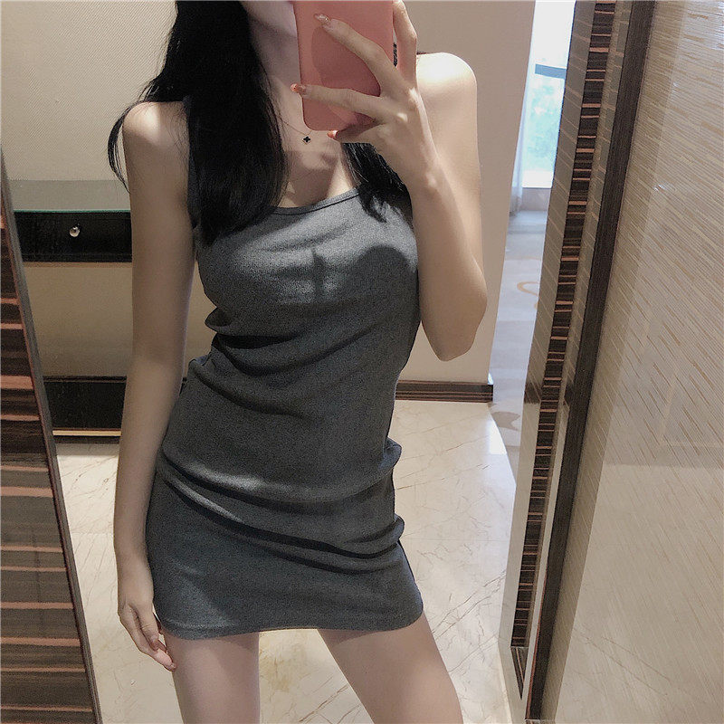Chaleco con cuello cuadrado, vestido de punto para mujer, otoño puro deseo, Falda corta sexy, estilo deportivo, bolso con tirantes, camiseta a la cadera, falda de fondo