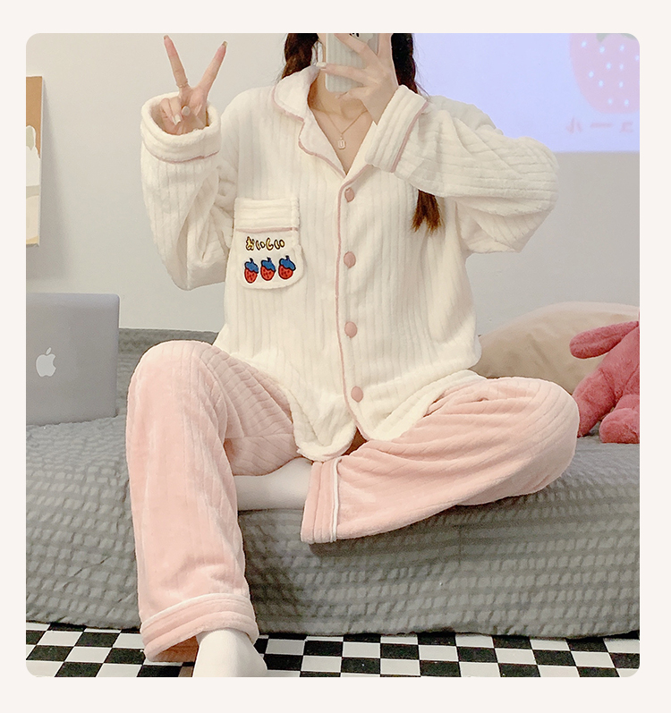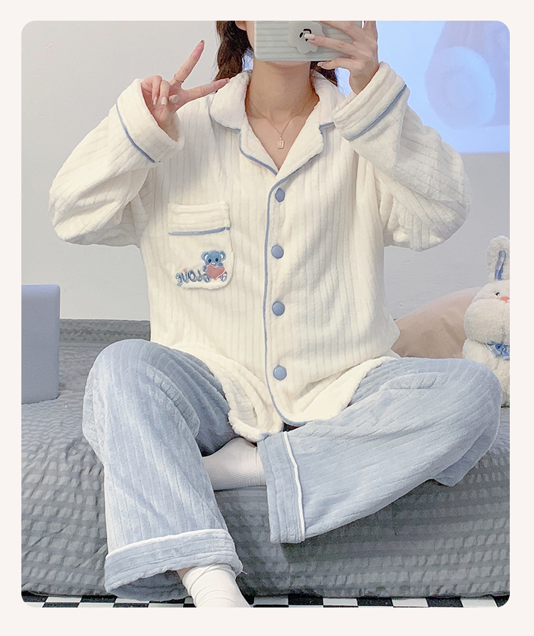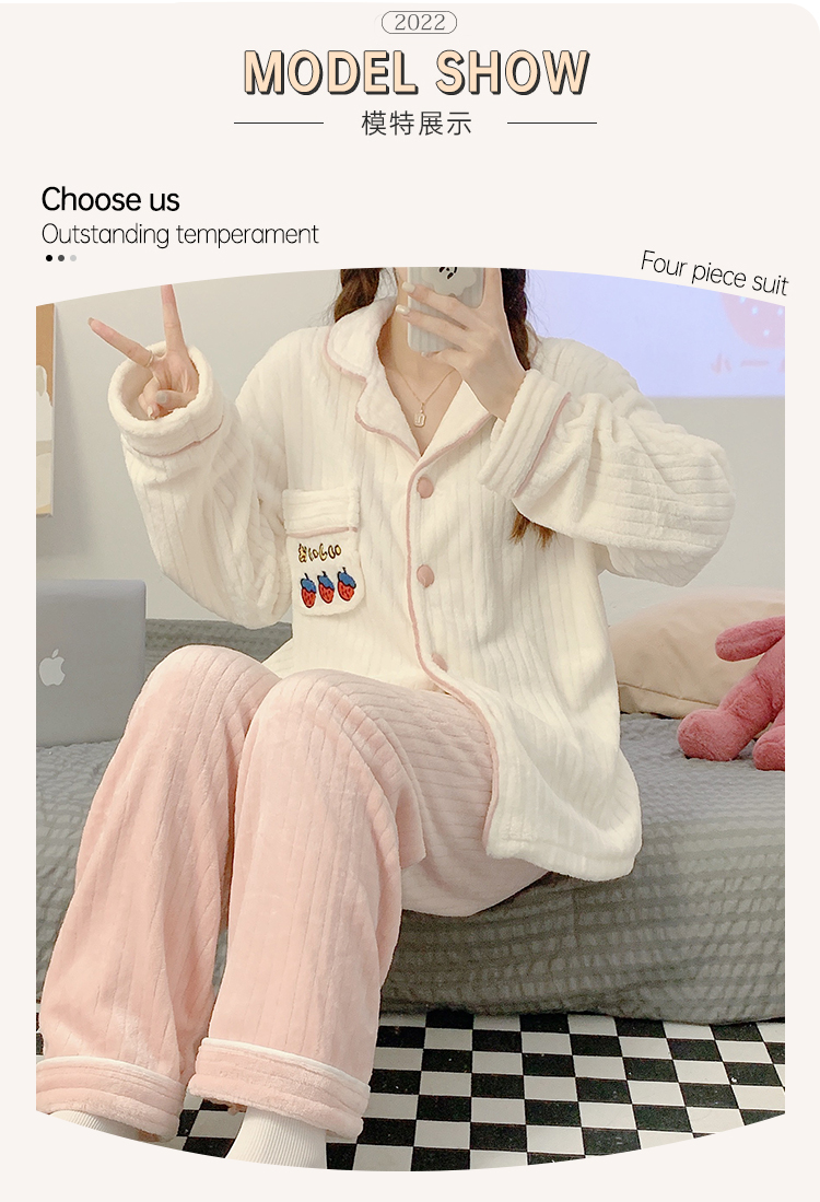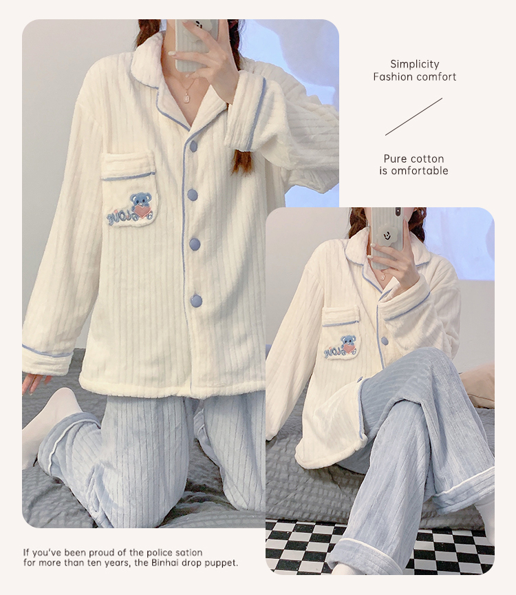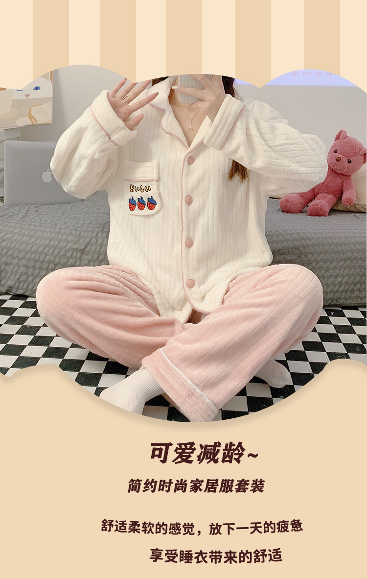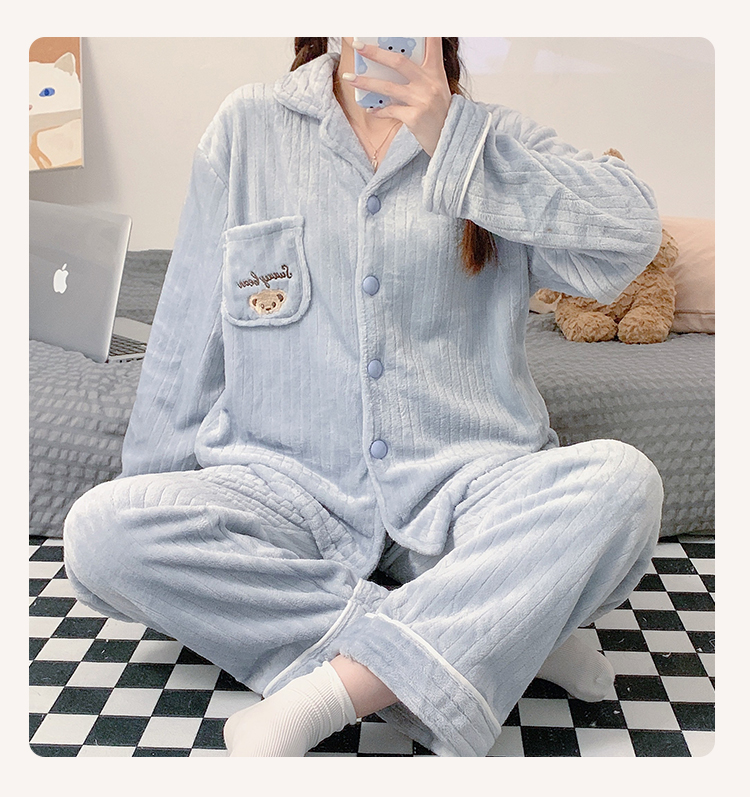 Pajamas for women spring, autumn and winter coral velvet thickened plus velvet cute 2024 new flannel suit home clothes