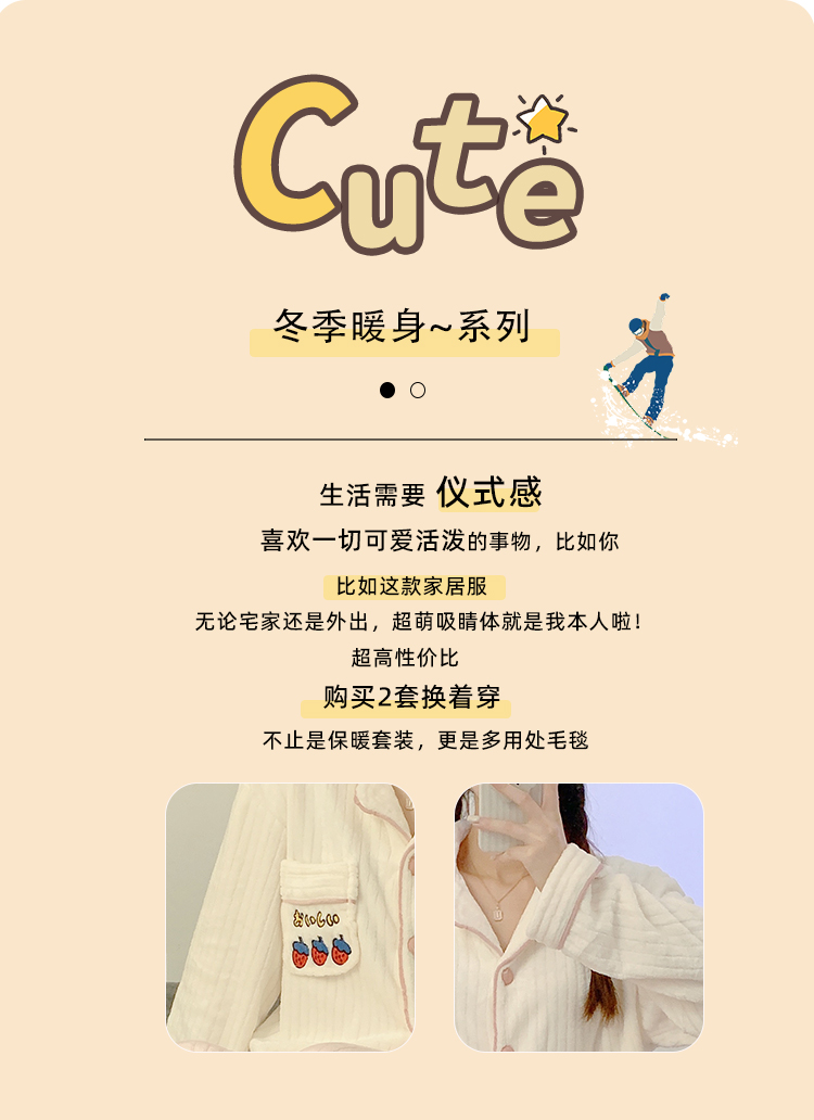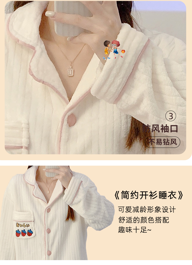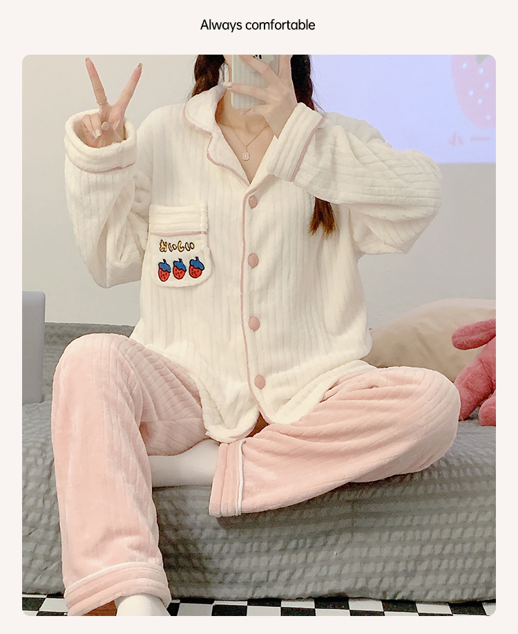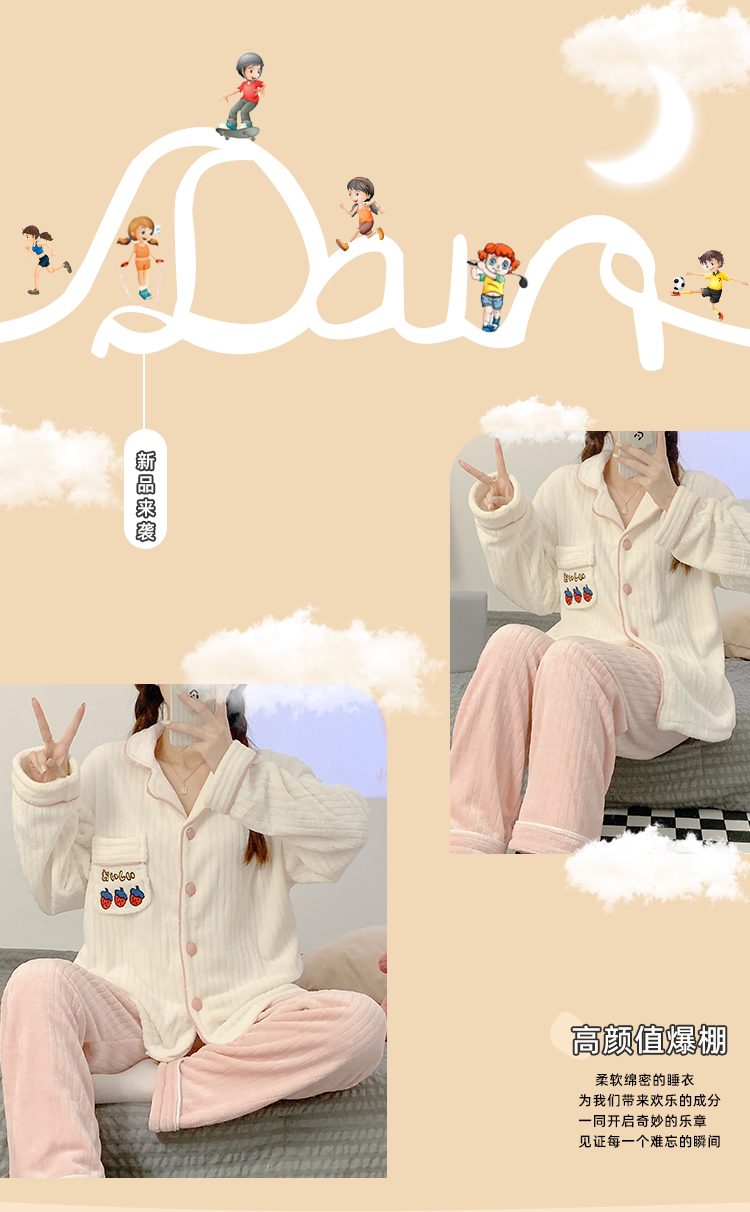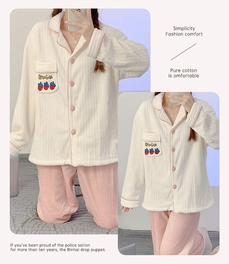 Pajamas for women spring, autumn and winter coral velvet thickened plus velvet cute 2024 new flannel suit home clothes