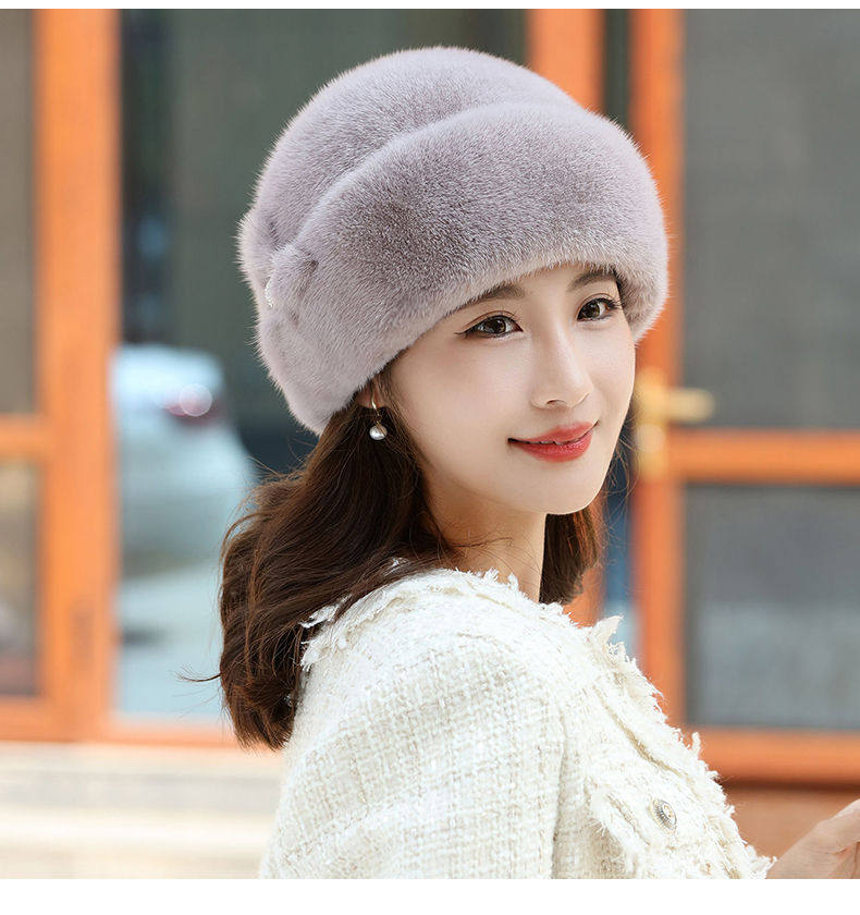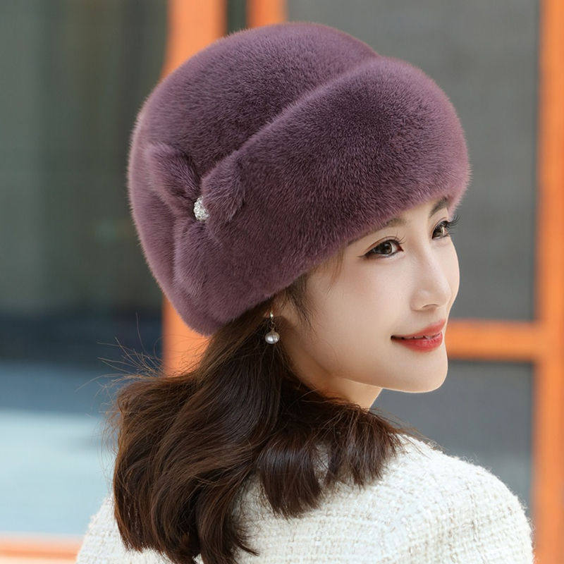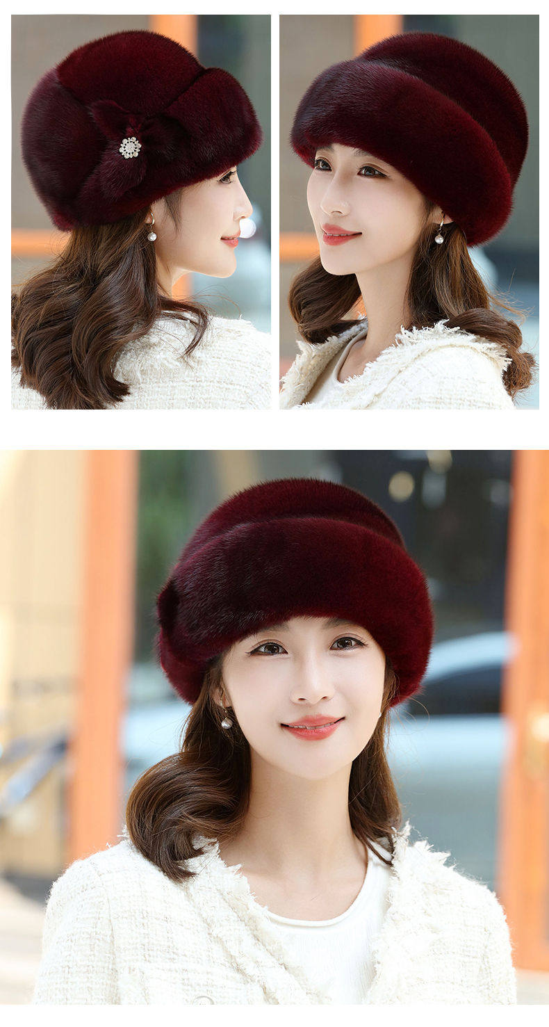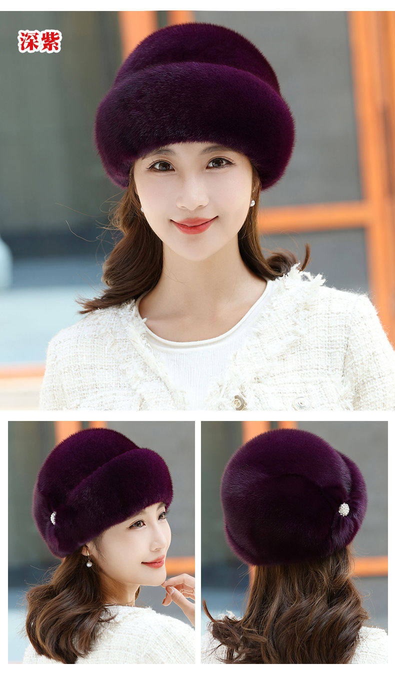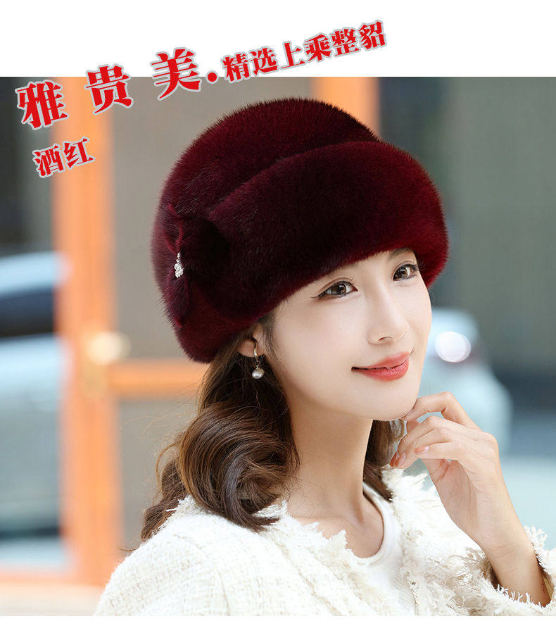 Mink fur hat for middle-aged and elderly women winter ear protection whole mink fur winter mother mink velvet fur cotton hat