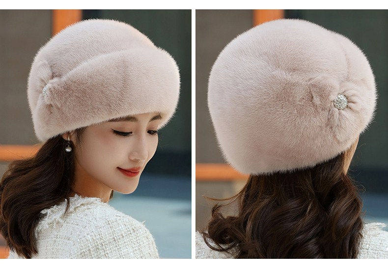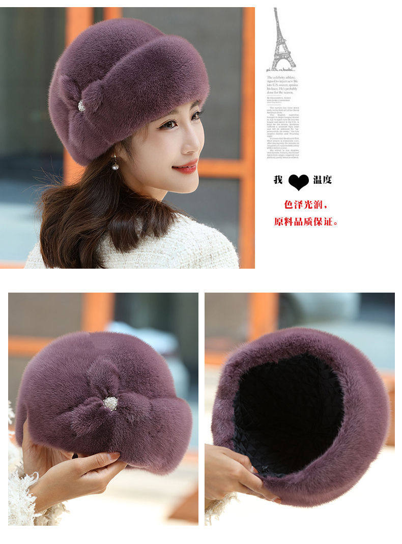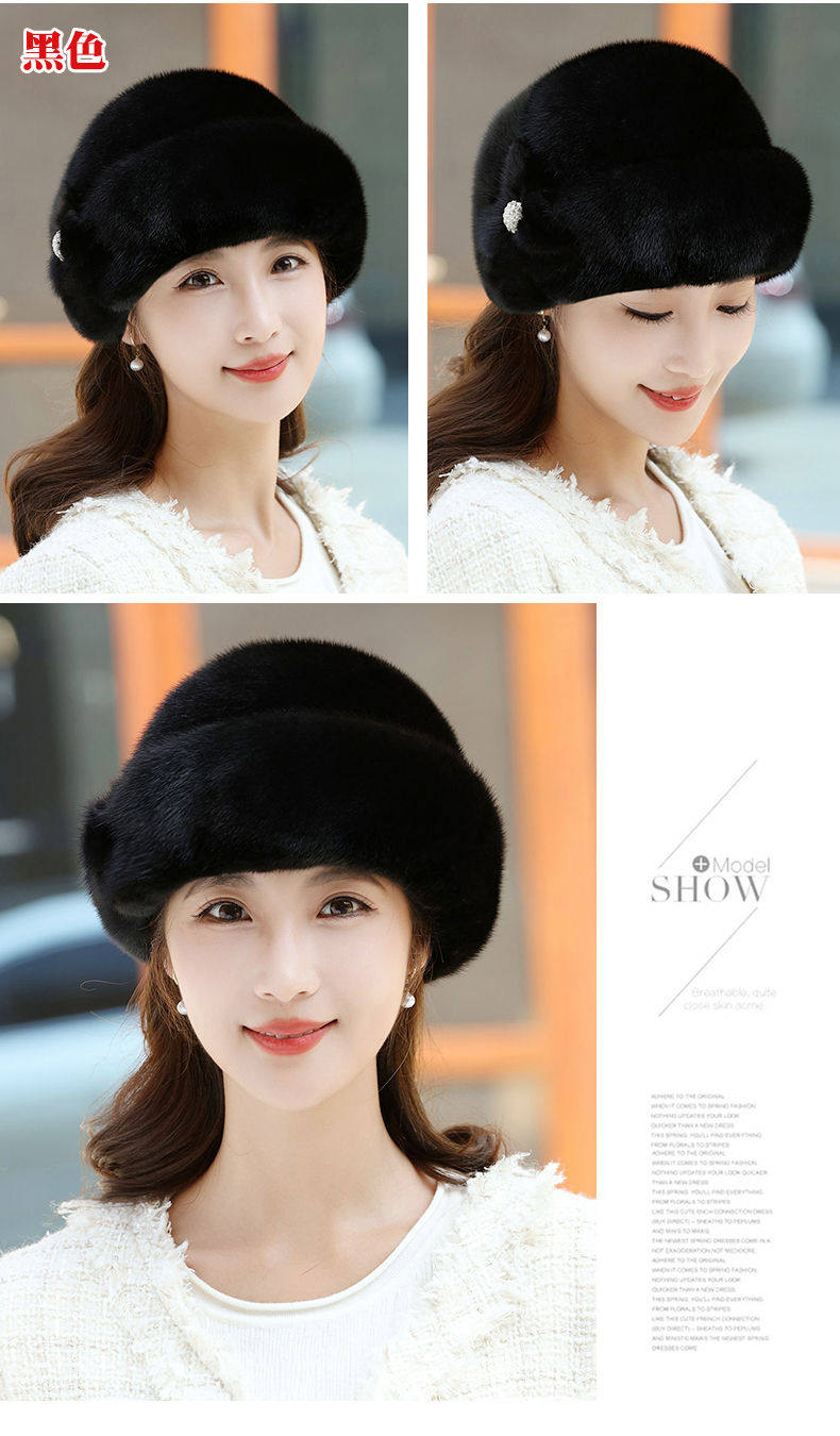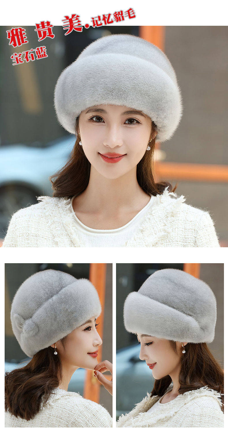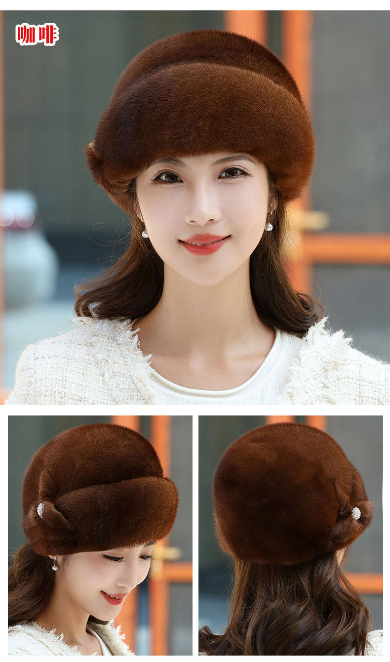 Mink fur hat for middle-aged and elderly women winter ear protection whole mink fur winter mother mink velvet fur cotton hat