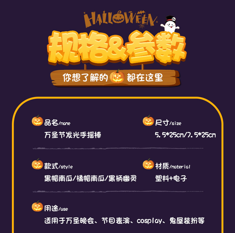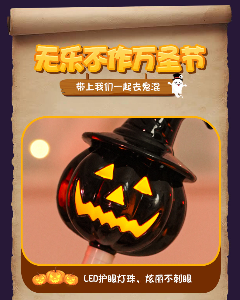 Linterna de calabaza para halloween, palo de mano brillante, accesorios de decoración, regalos para niños, regalos pequeños, diseño de escena de fiesta y bar