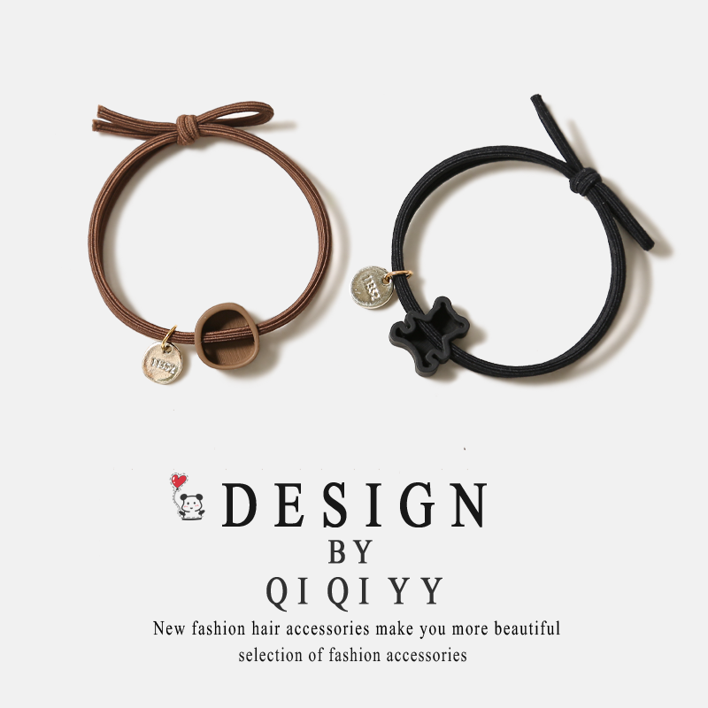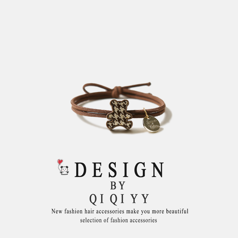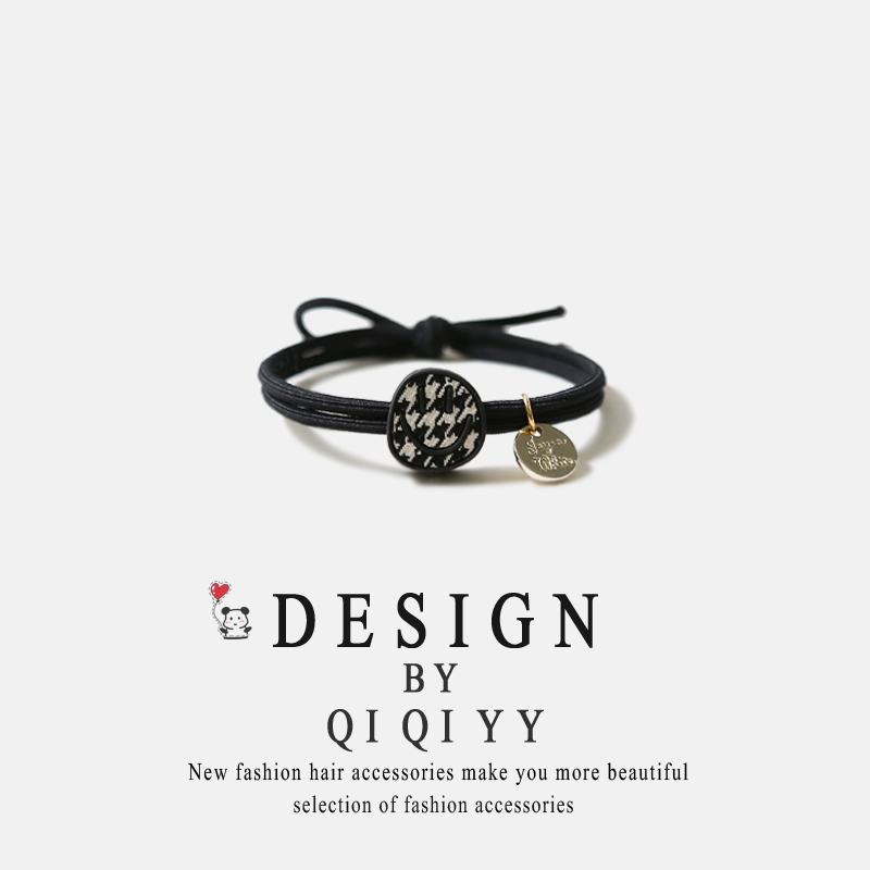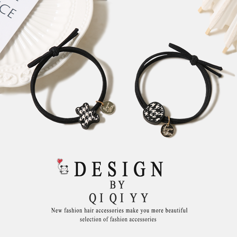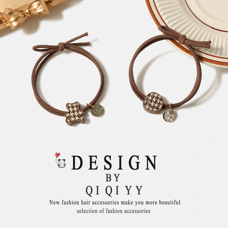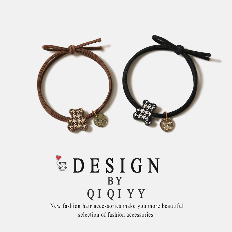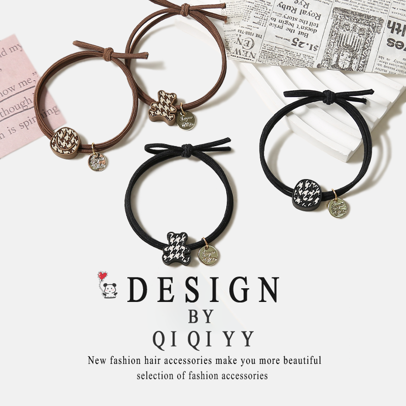 Korean-Style High-End Smiley Bear Hair Tie, Elegant Hair Rope, Cute Girl's Hair Tie for High Ponytail, Houndstooth Hair Accessory