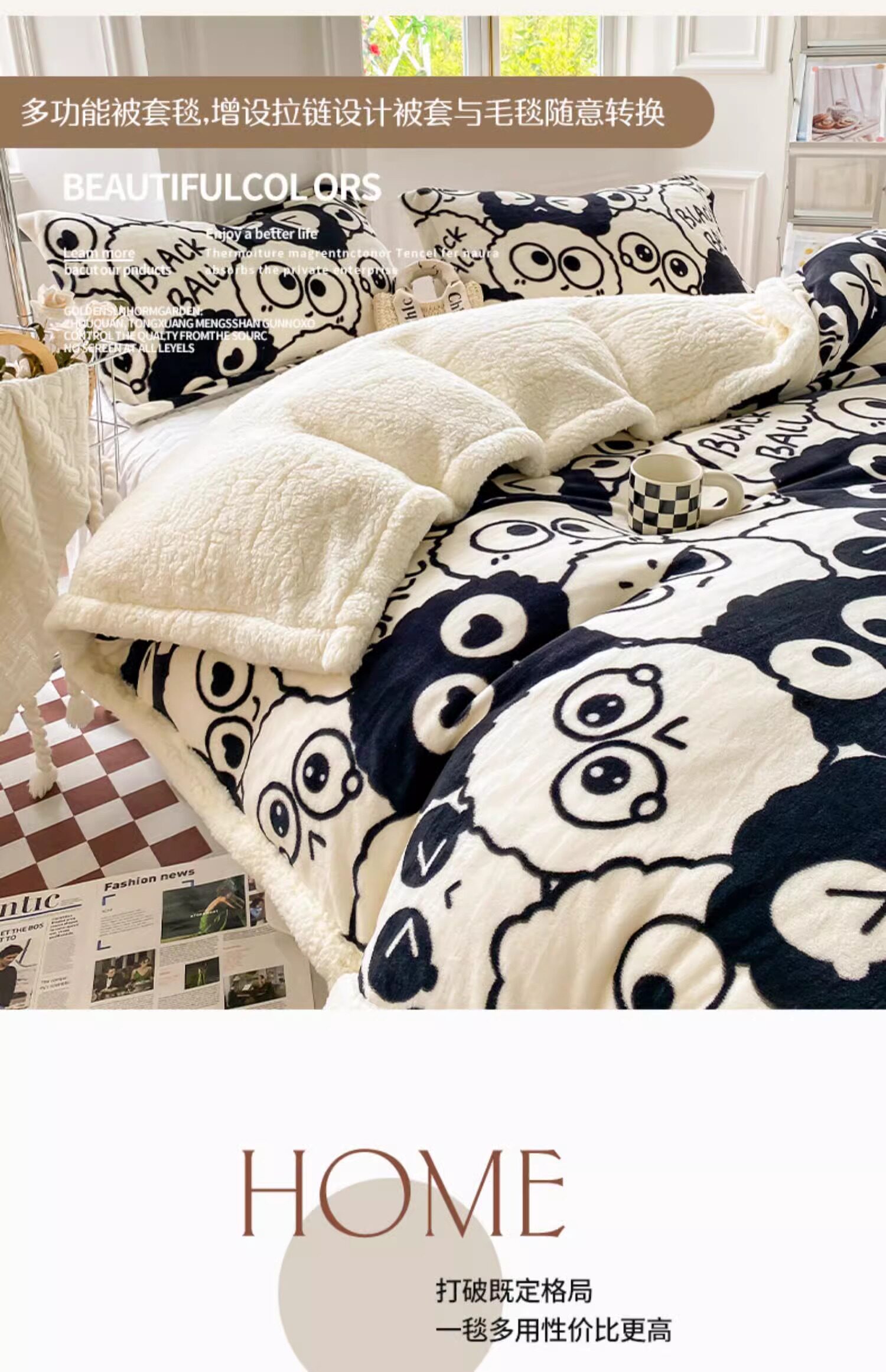 Size 100x150cm multifunctional sherpa baby blanket-this Specification does not come with a zipper,150x200cm multifunctional sherpa baby blanket - can be covered or padded,180x220cm multifunctional sherpa baby blanket - can be covered or padded,200x230cm multifunctional sherpa baby blanket - can be covered or padded,150x200cm multifunctional lambswool blanket + pair of pillowcases,200x230cm multifunctional lambswool blanket + pair of pillowcases