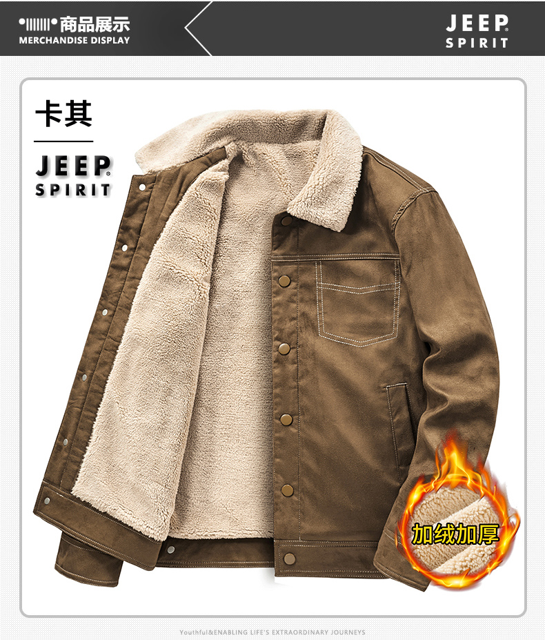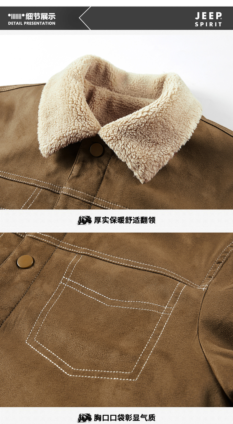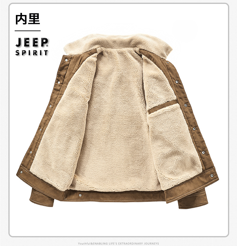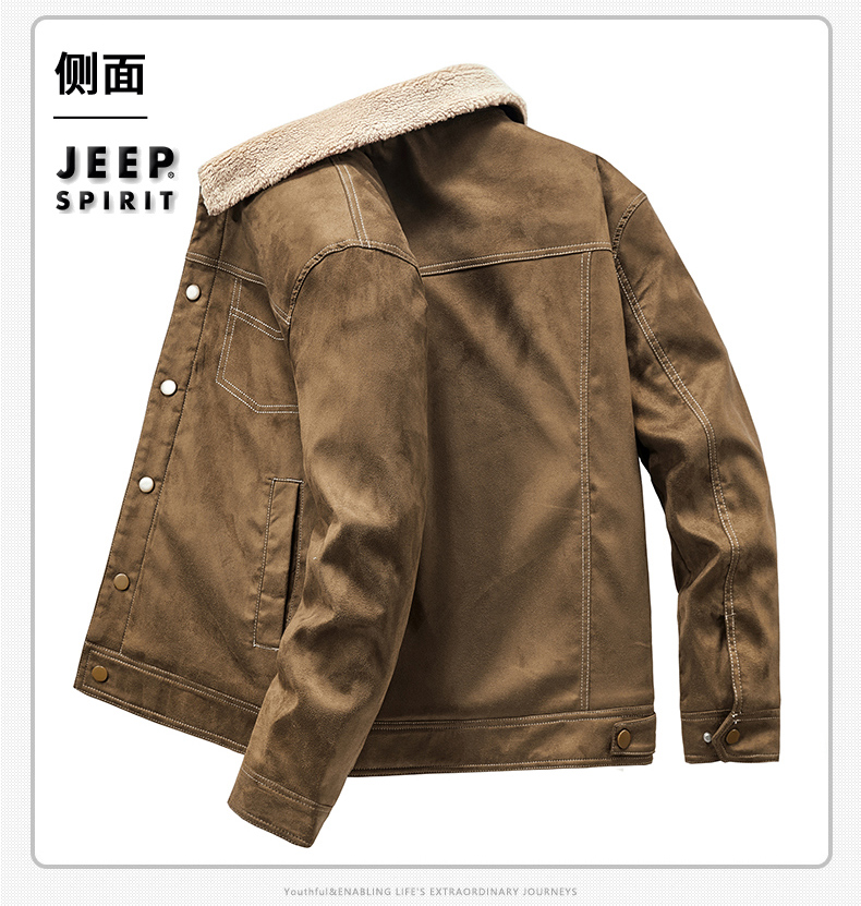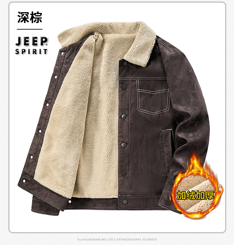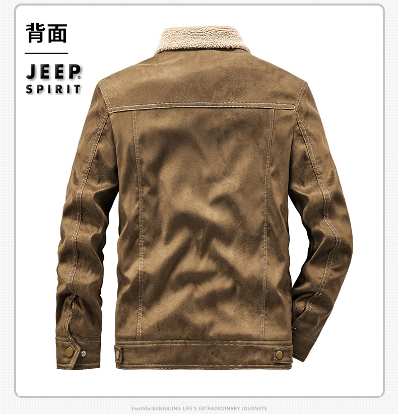 Jeep Suede Cotton Jacket for Men, Autumn and Winter, Fleece-Lined and Thickened, 2025 New Style, Turn-Down Collar Jacket, Men's Cotton Clothing