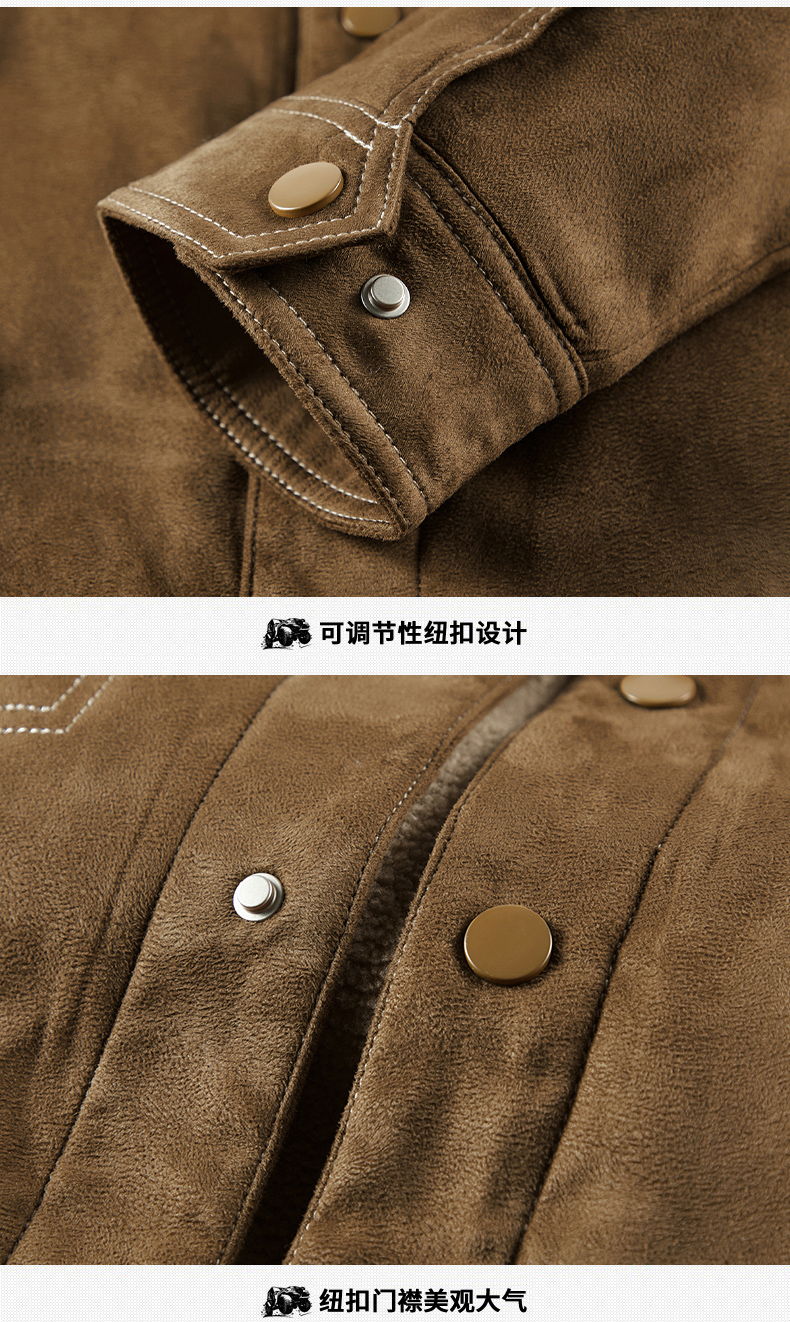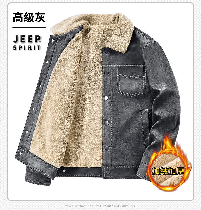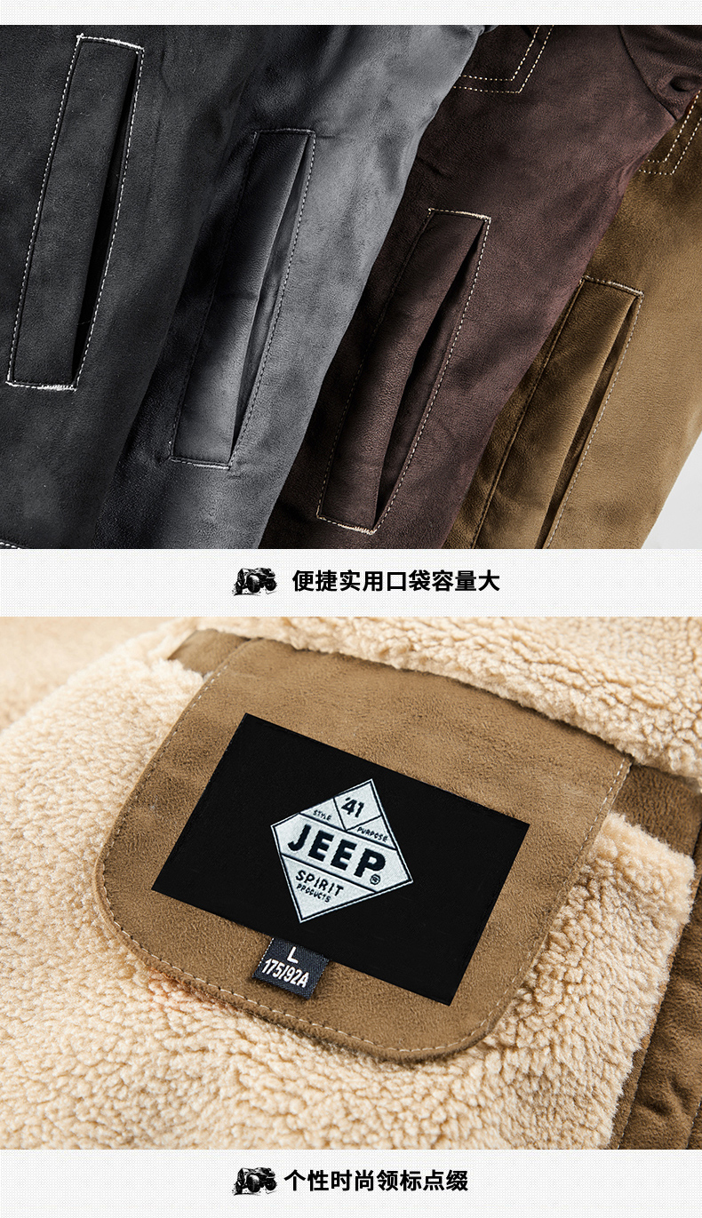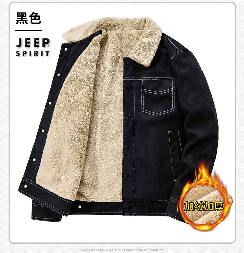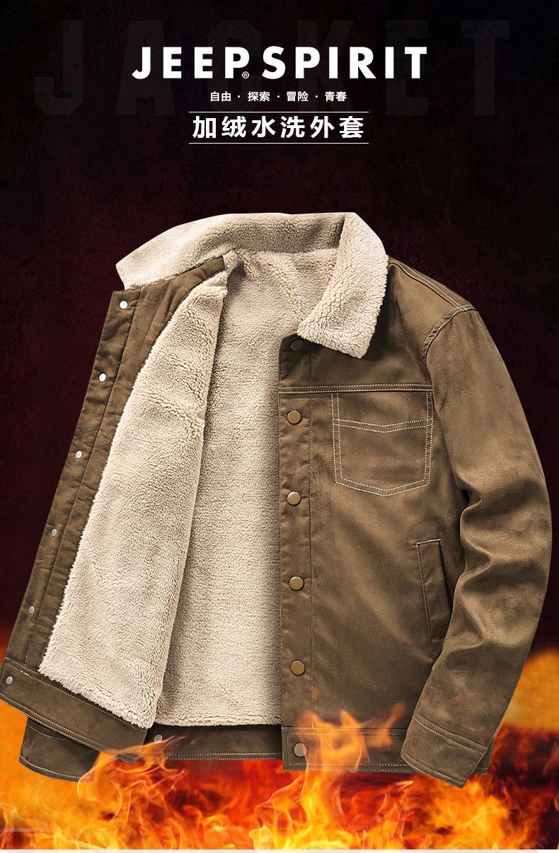 Jeep Suede Cotton Jacket for Men, Autumn and Winter, Fleece-Lined and Thickened, 2025 New Style, Turn-Down Collar Jacket, Men's Cotton Clothing