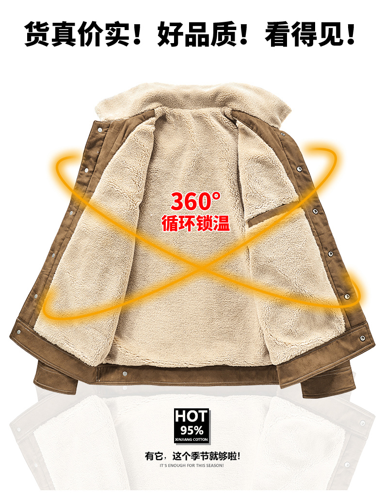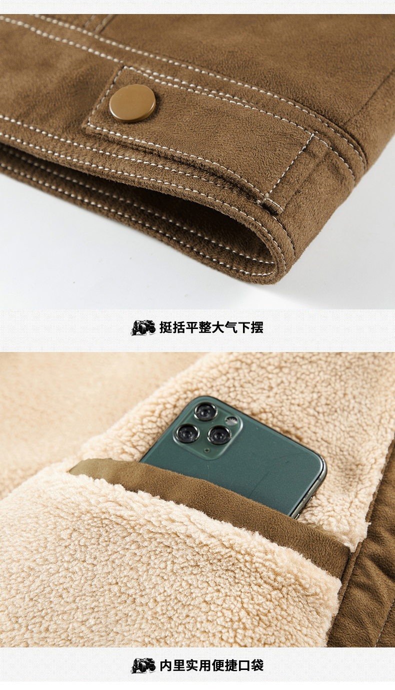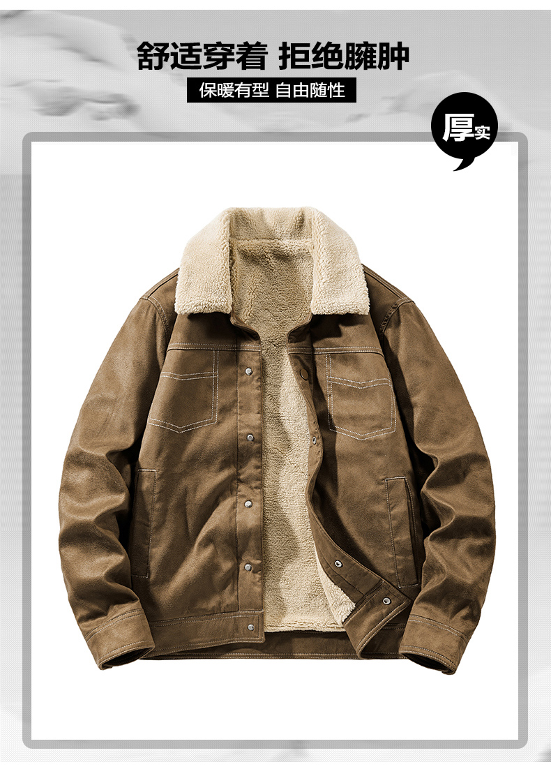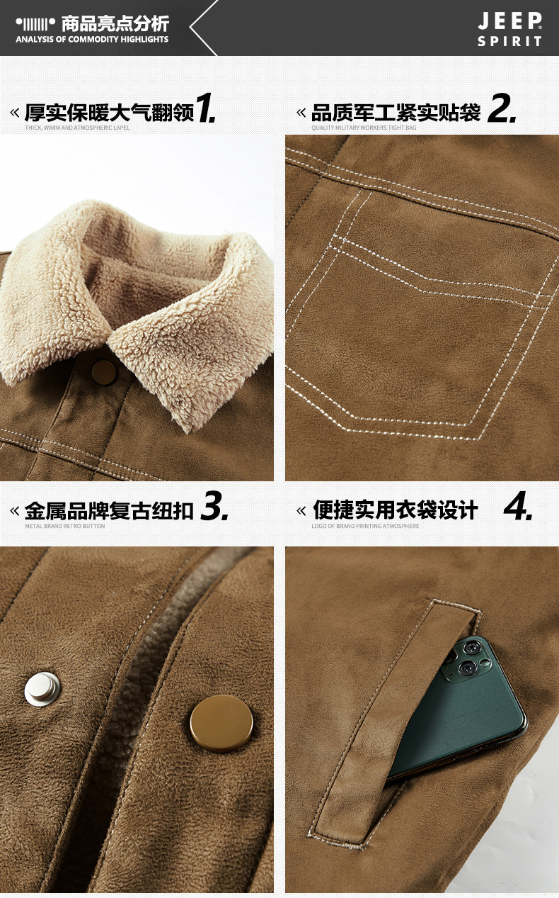 Jeep Suede Cotton Jacket for Men, Autumn and Winter, Fleece-Lined and Thickened, 2025 New Style, Turn-Down Collar Jacket, Men's Cotton Clothing