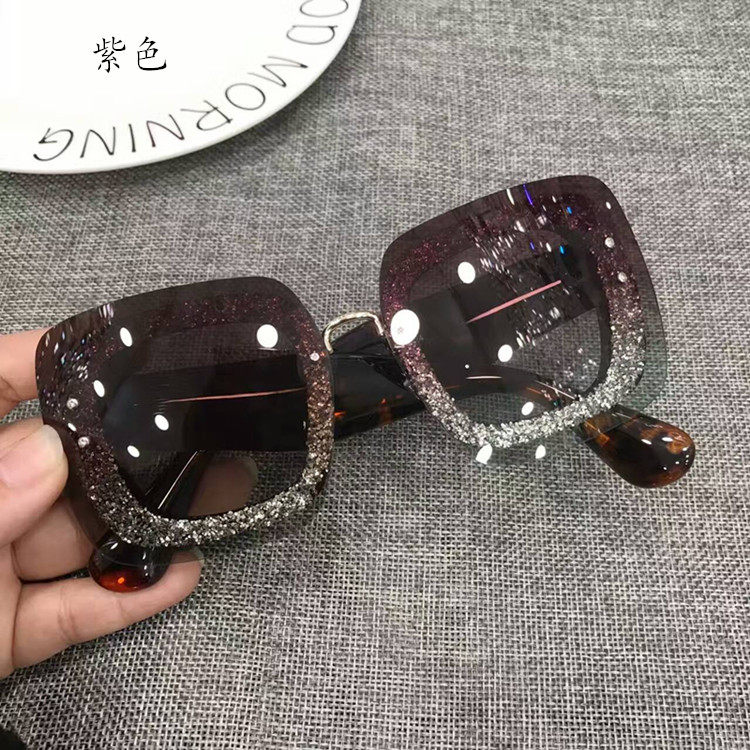Zhou Yangqing Same Sunglasses Personalized Sunglasses Female Trendy 2023 round Face New Arrival Polarized Super Large Rim Diamond-Studded Glasses