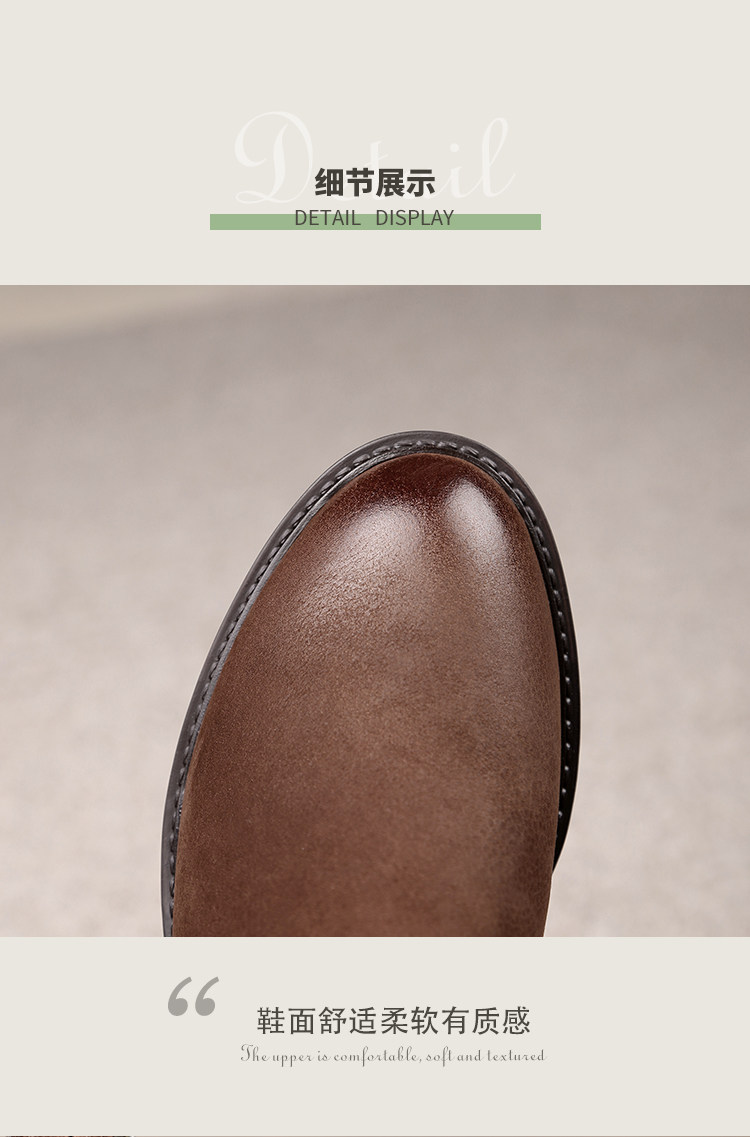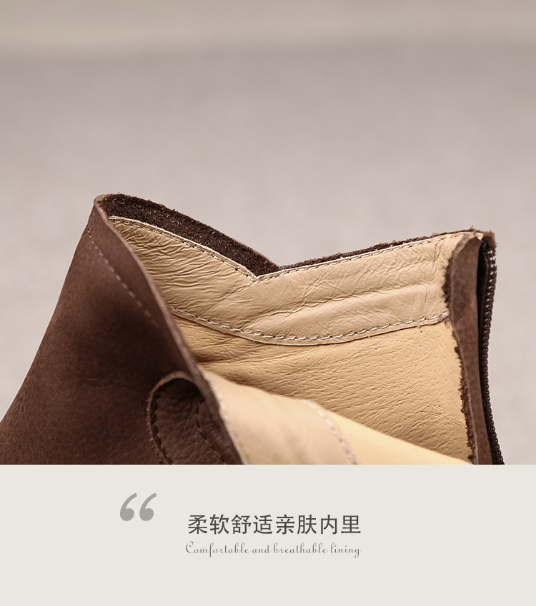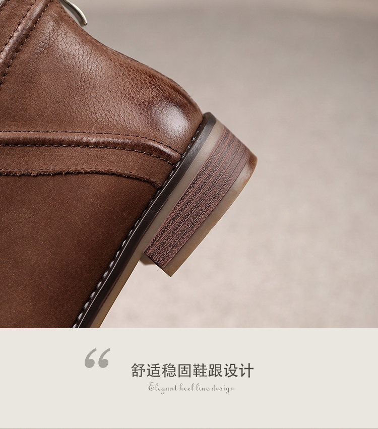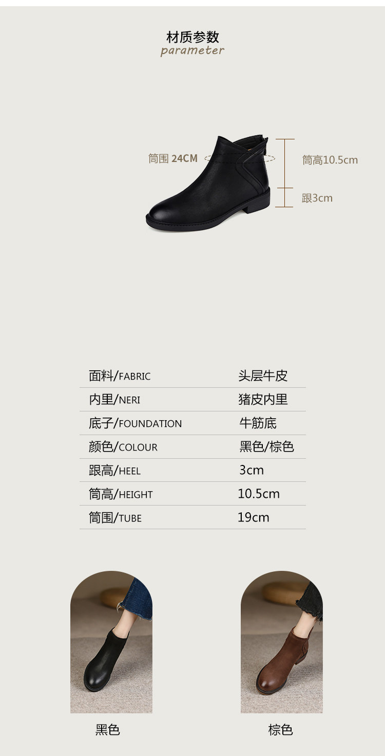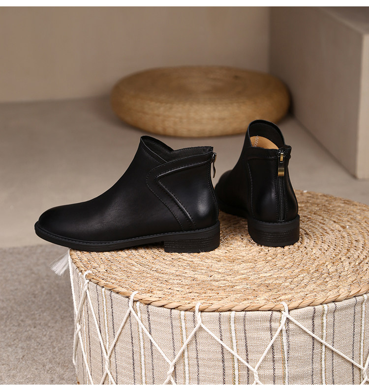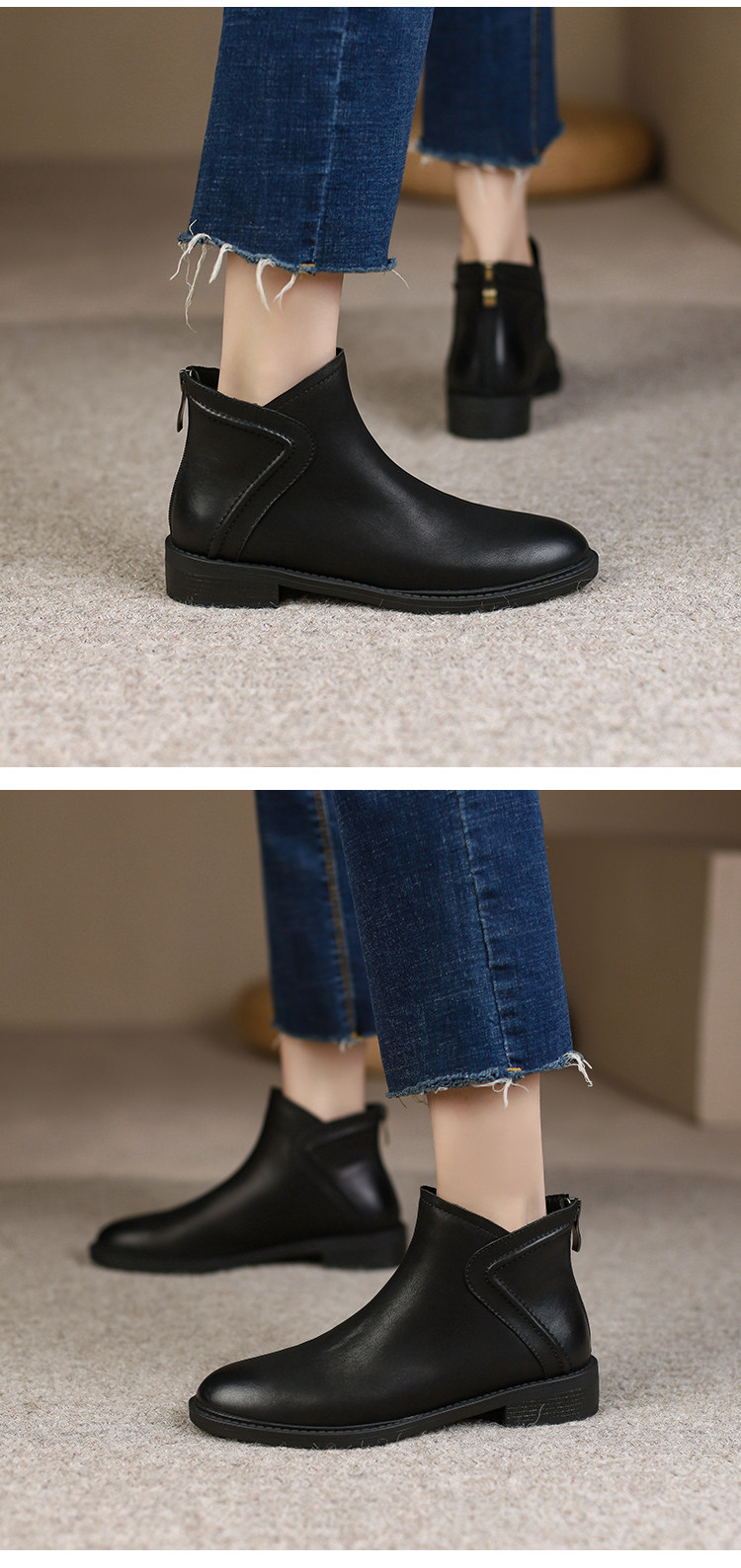 Genuine leather French retro polished short boots for women in autumn and winter, comfortable soft sole mid-heel ankle boots, round toe thick heel Chelsea boots