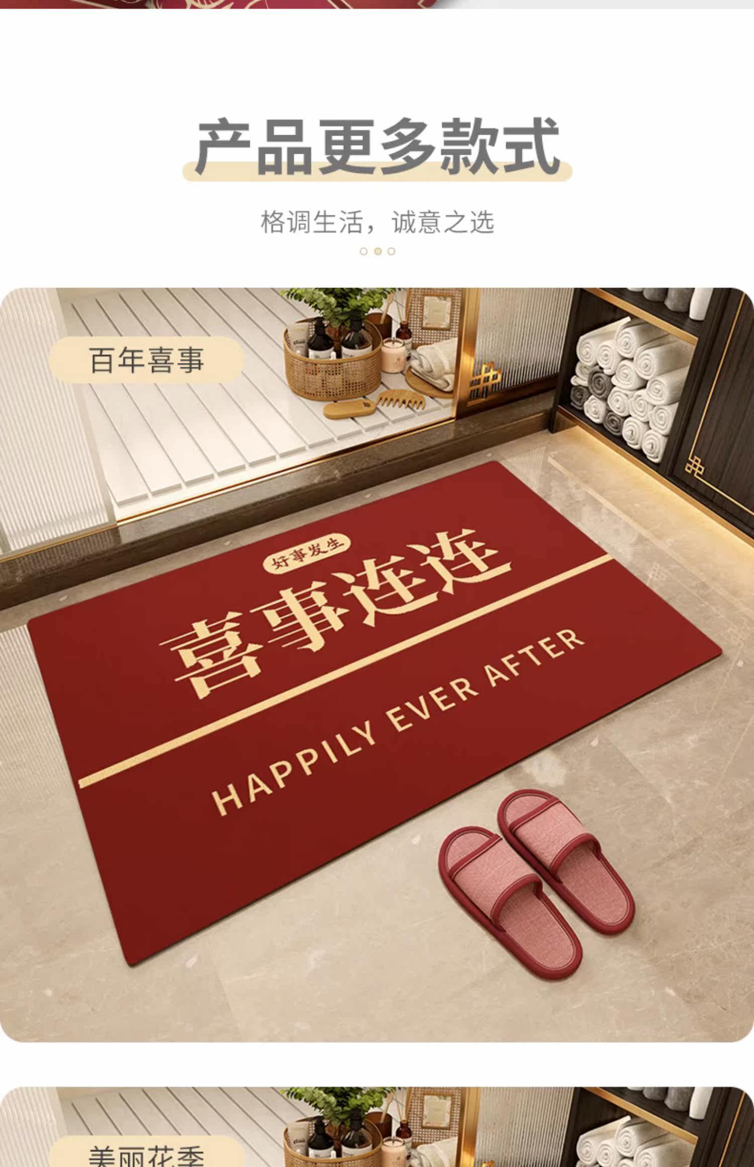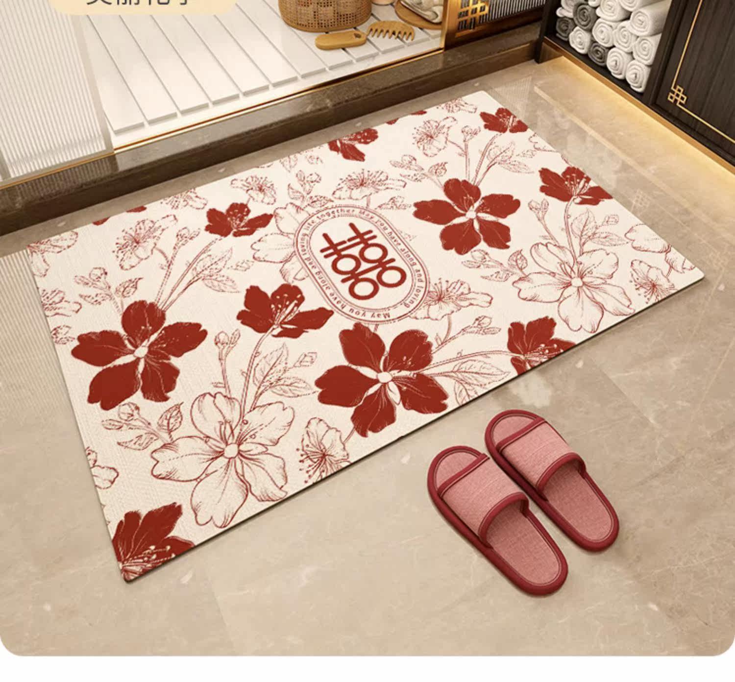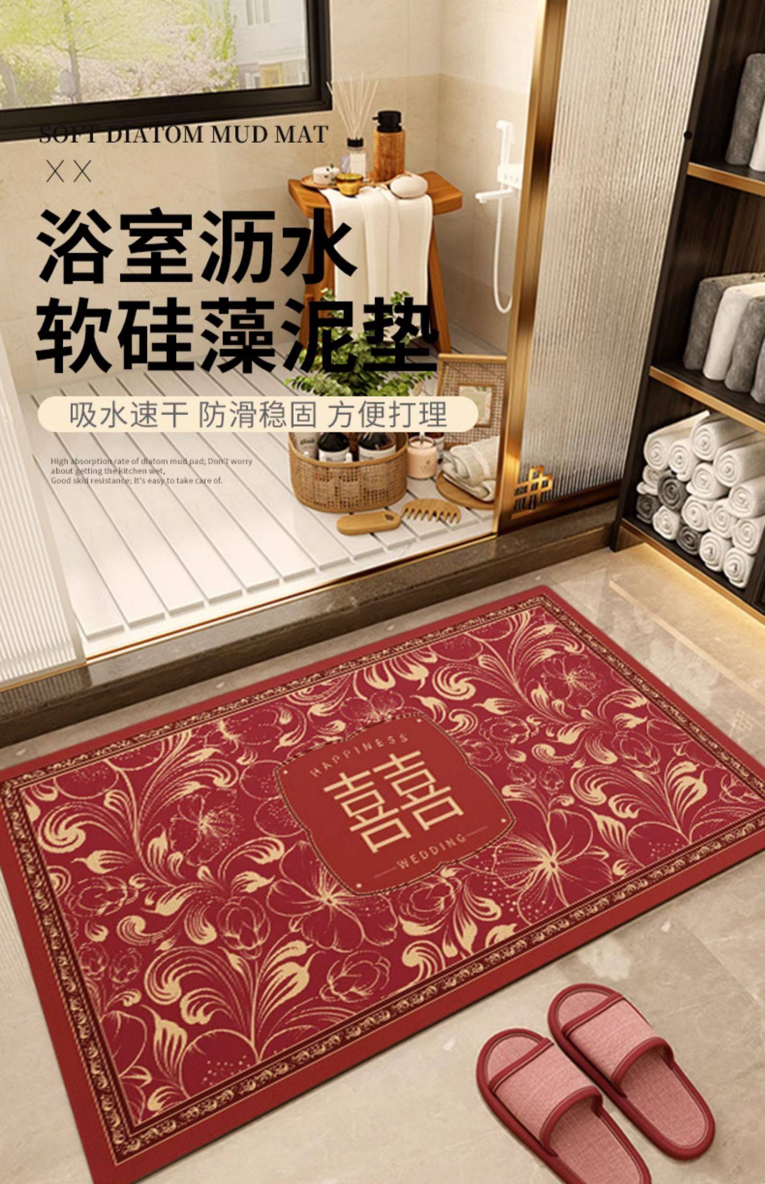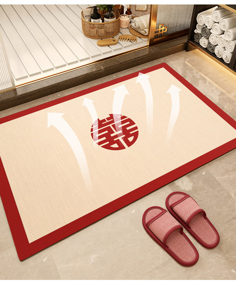 Leichte, luxuriöse rote Bodenmatte für Badezimmer, Duschraum, Tür, saugfähig, rutschfest, Kieselalgenschlamm, abwischbar, nicht waschbar, Fußmatte, Fußmatte