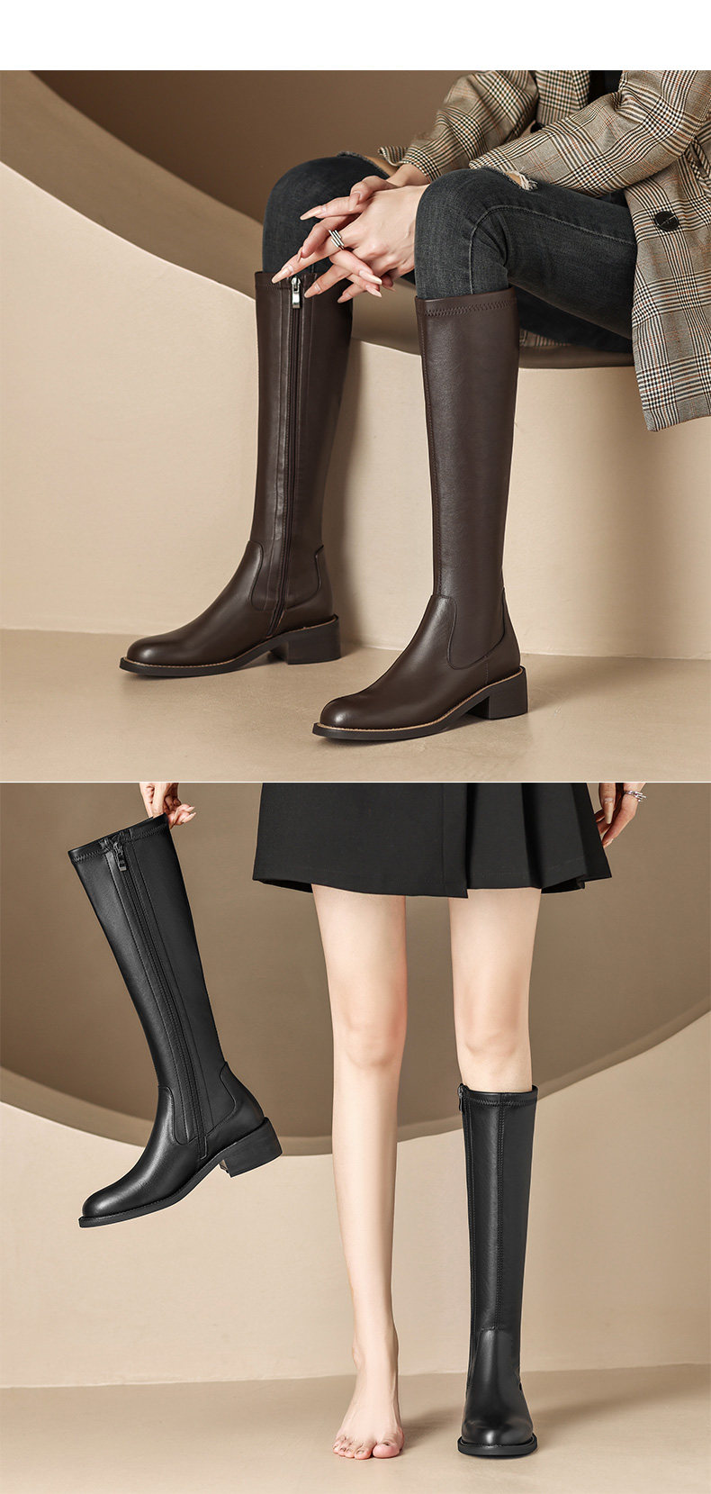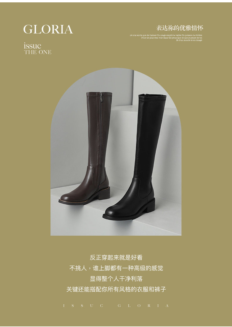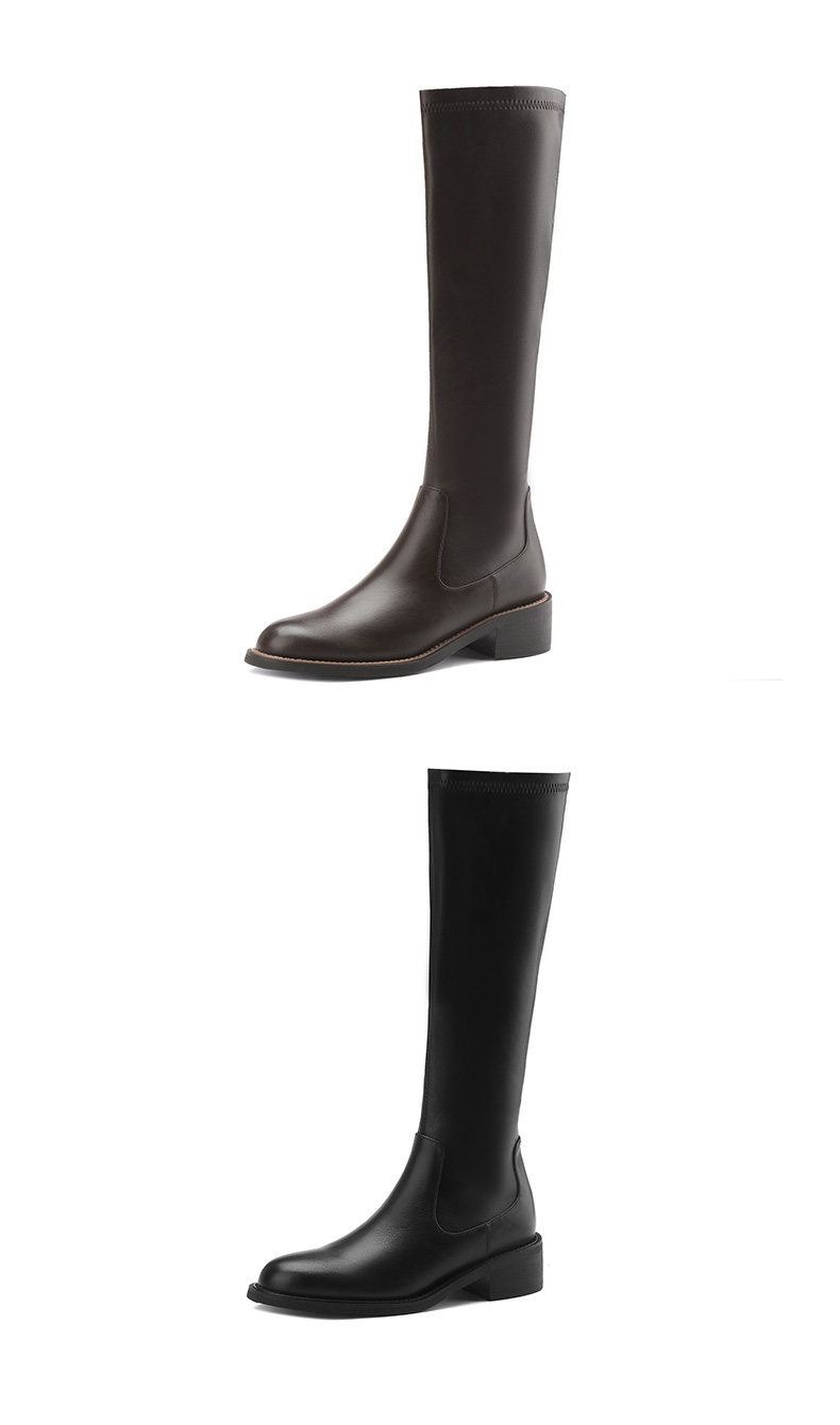 Autumn and winter new style leather high-top elastic slim boots brown medium heel for small people but no more than knee-high knight boots for women to look slim