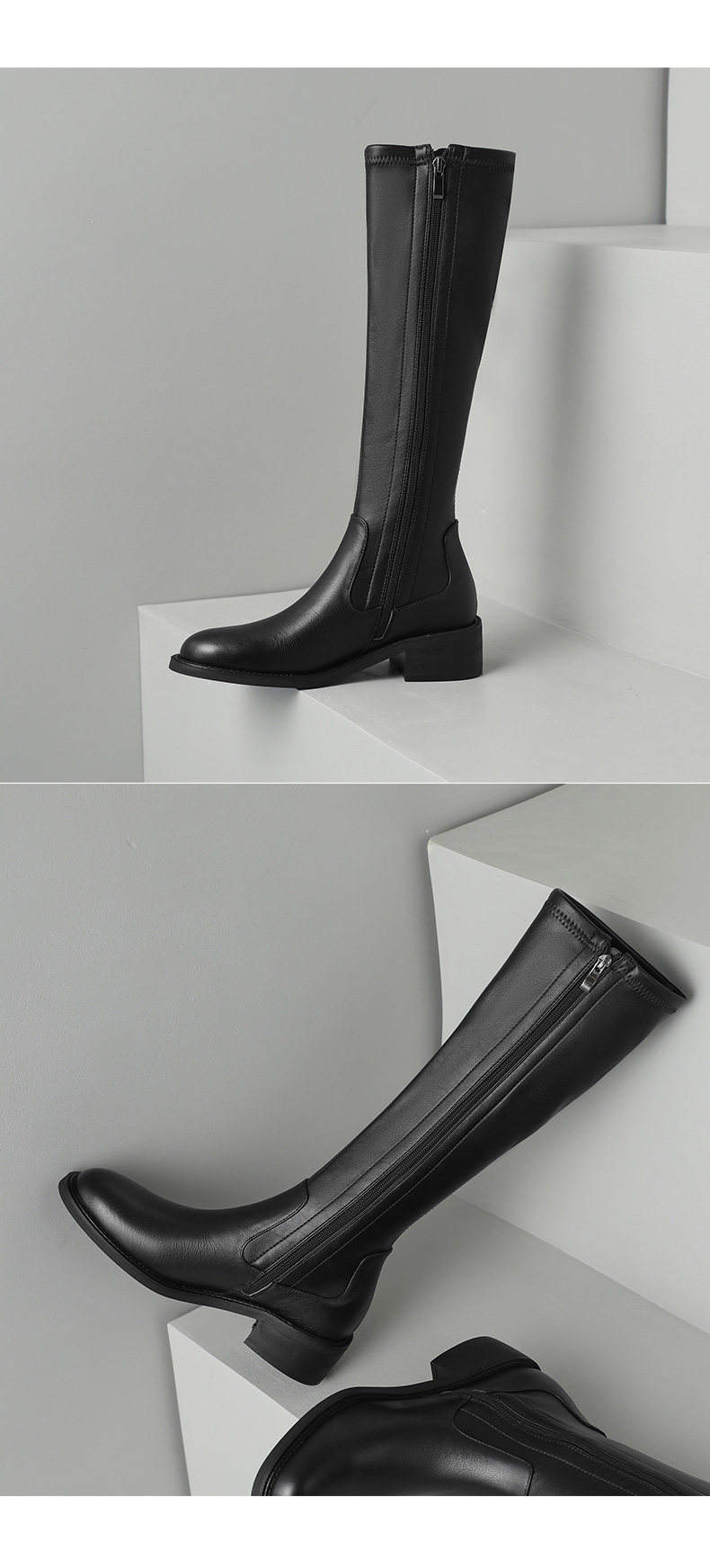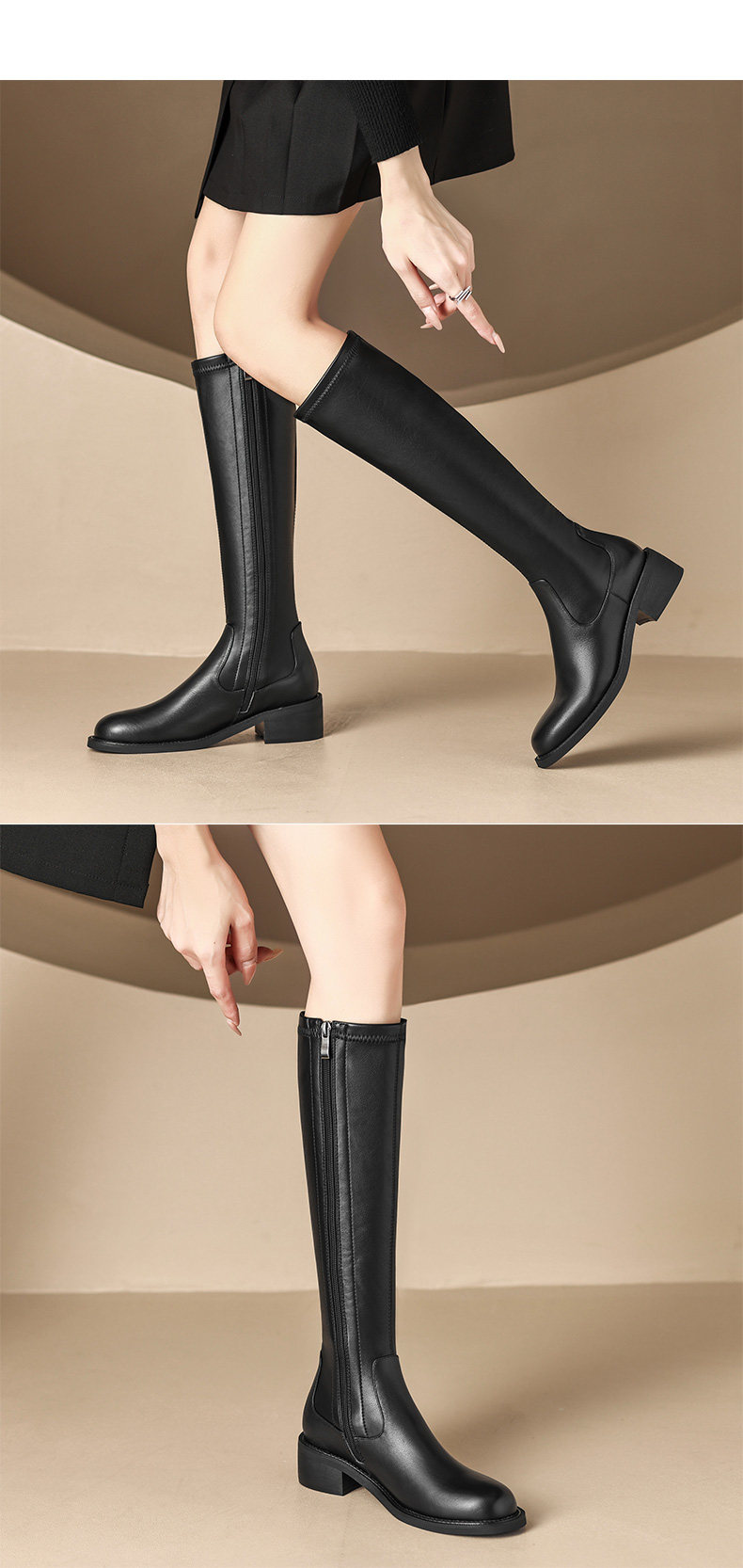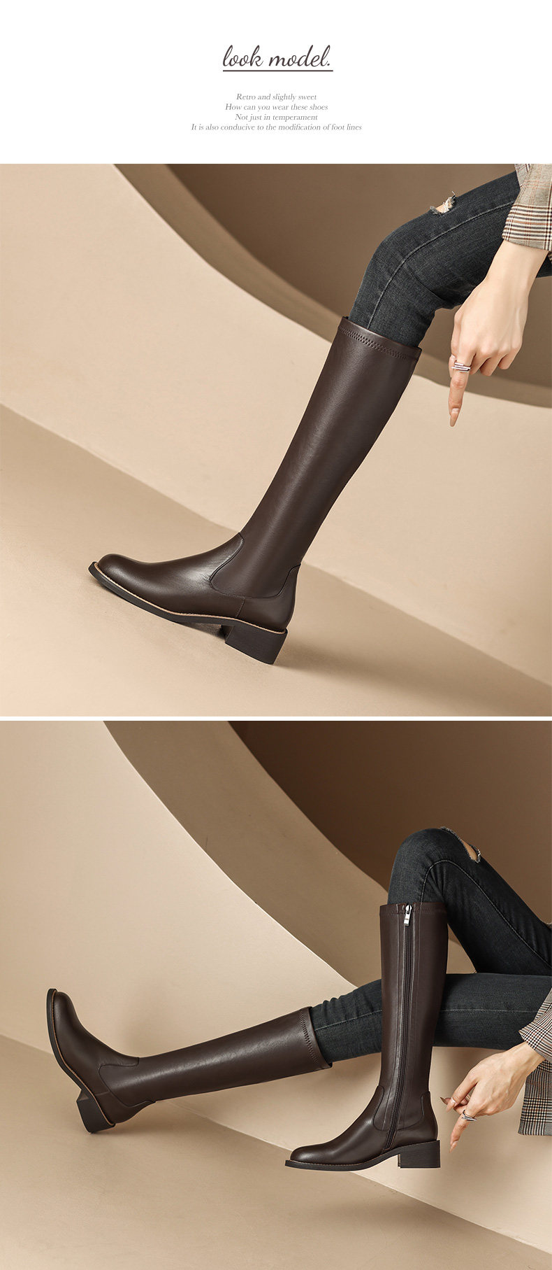 Autumn and winter new style leather high-top elastic slim boots brown medium heel for small people but no more than knee-high knight boots for women to look slim