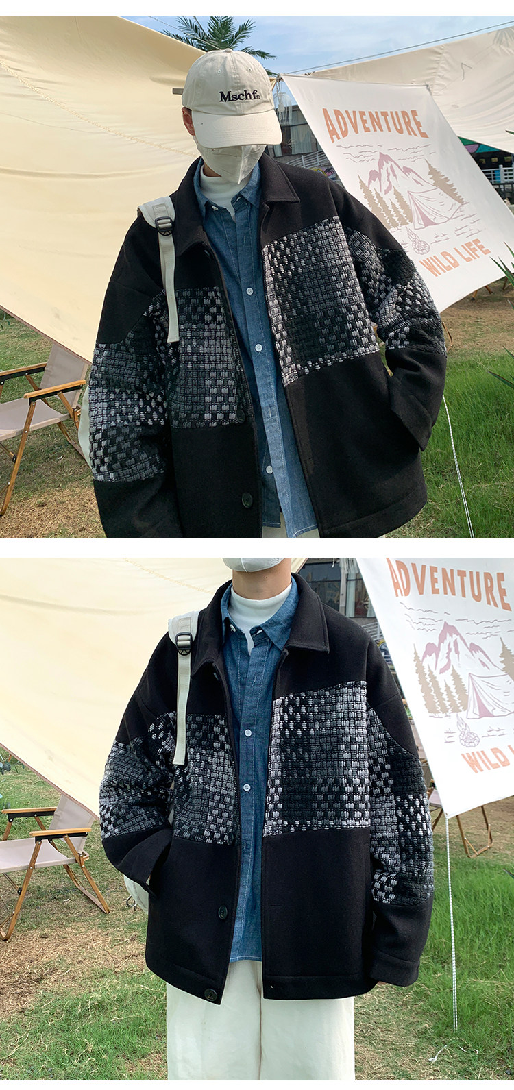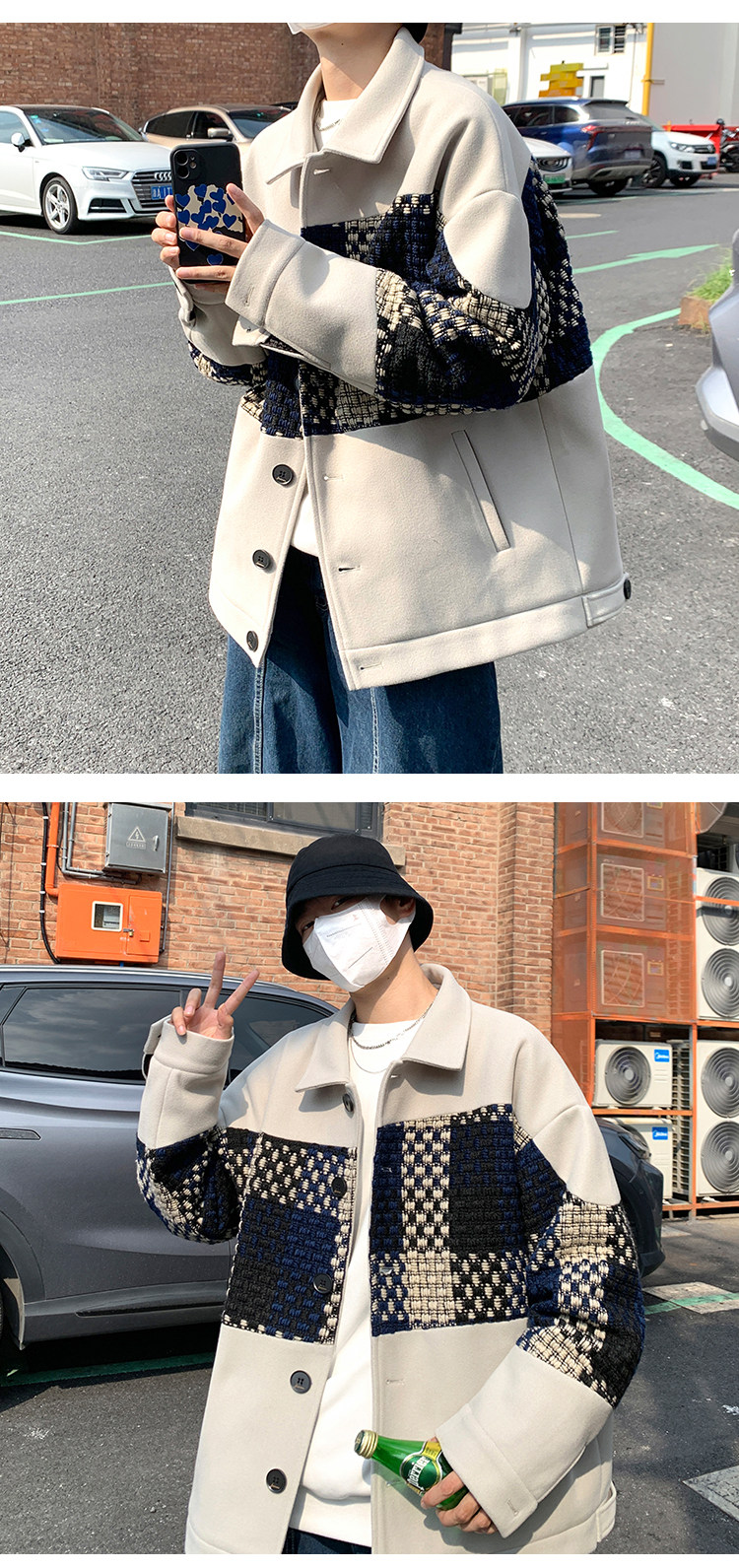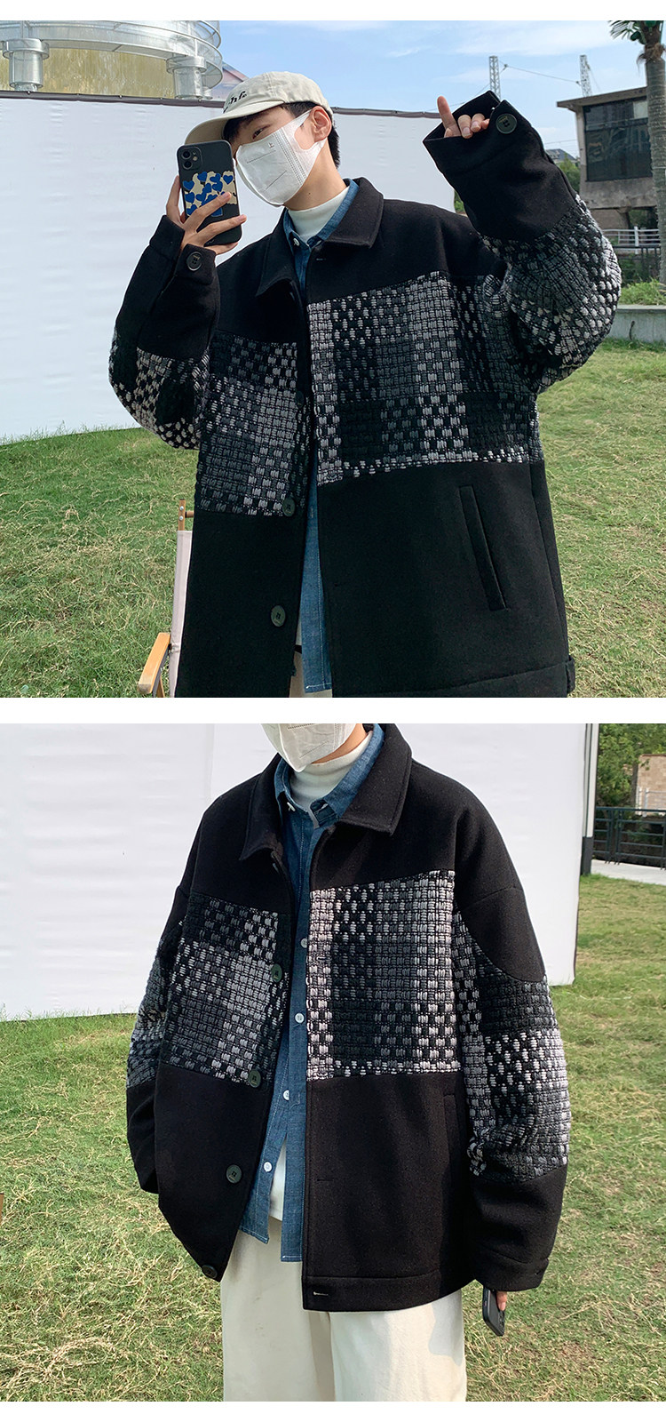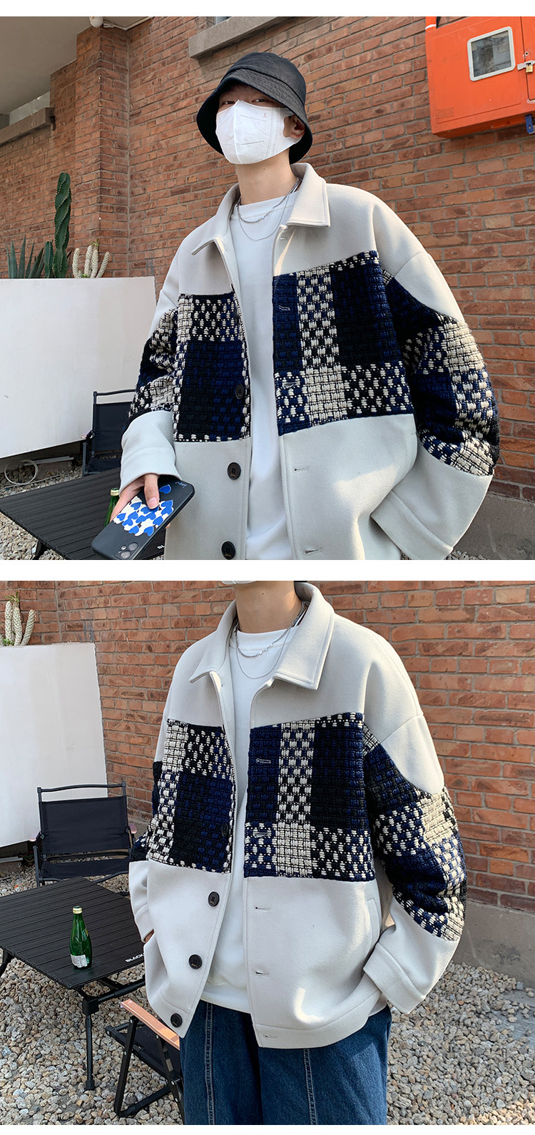 Trendy Men's Jacket with a High-End Feel, Color-Blocked Patchwork, Spring Korean Style, Fashionable Design, Woolen Coat