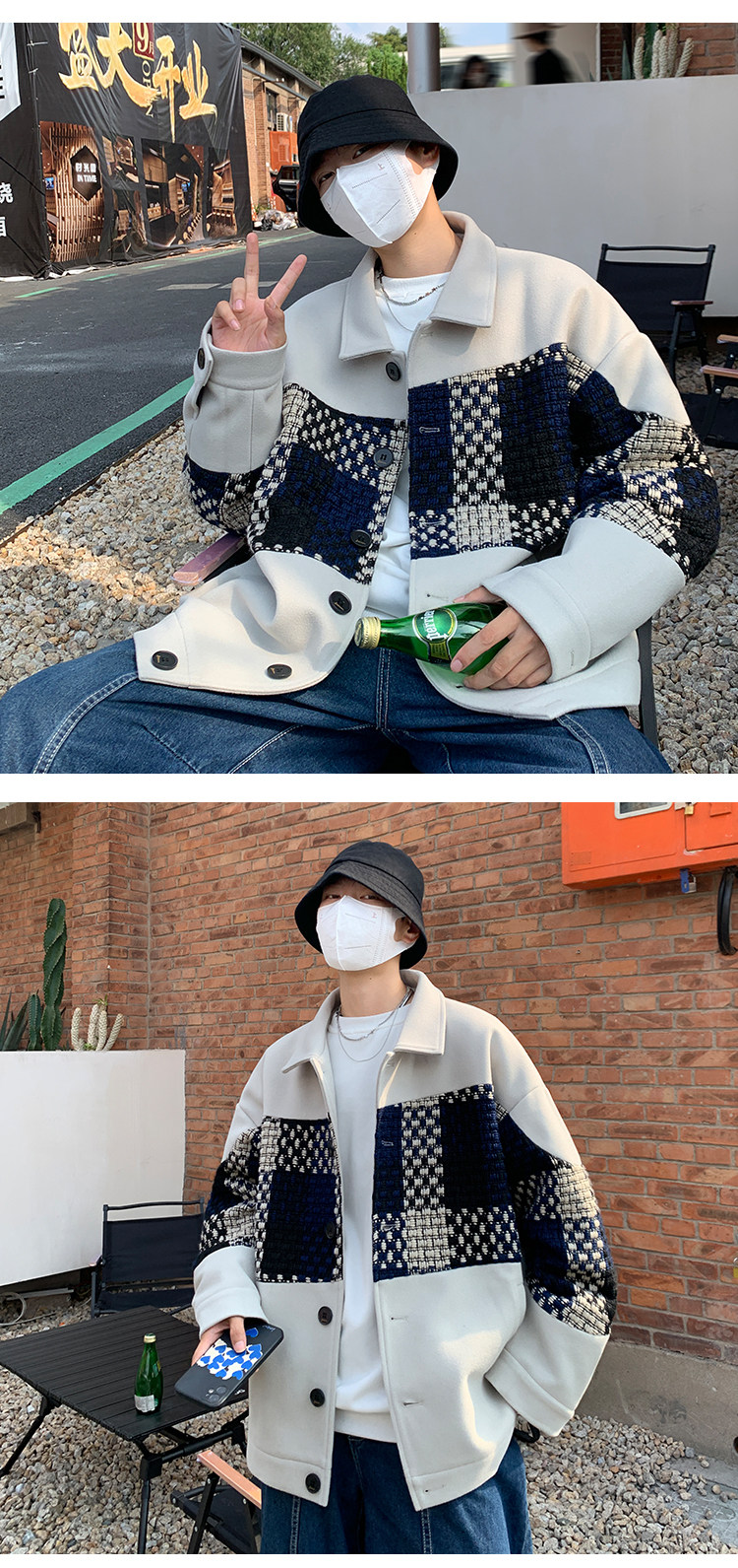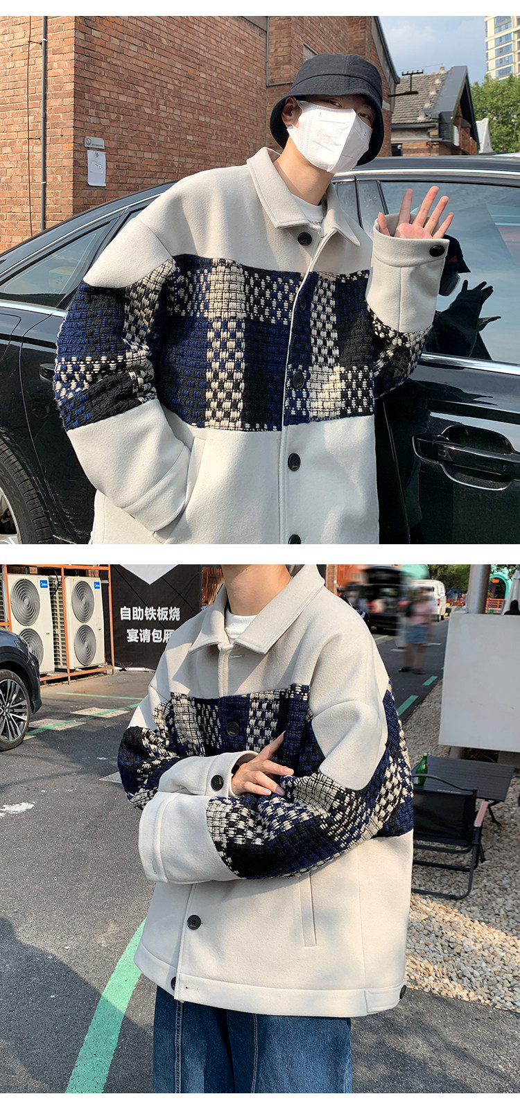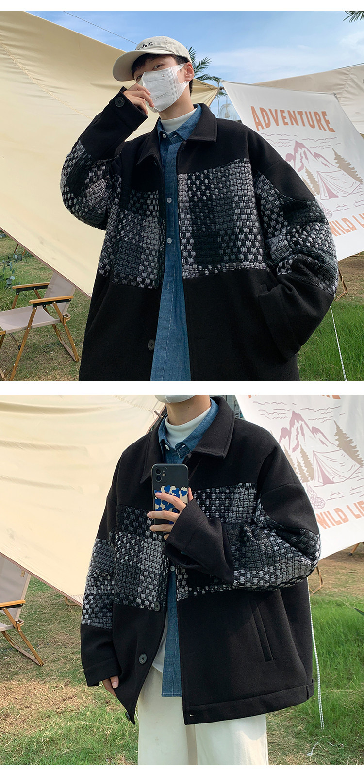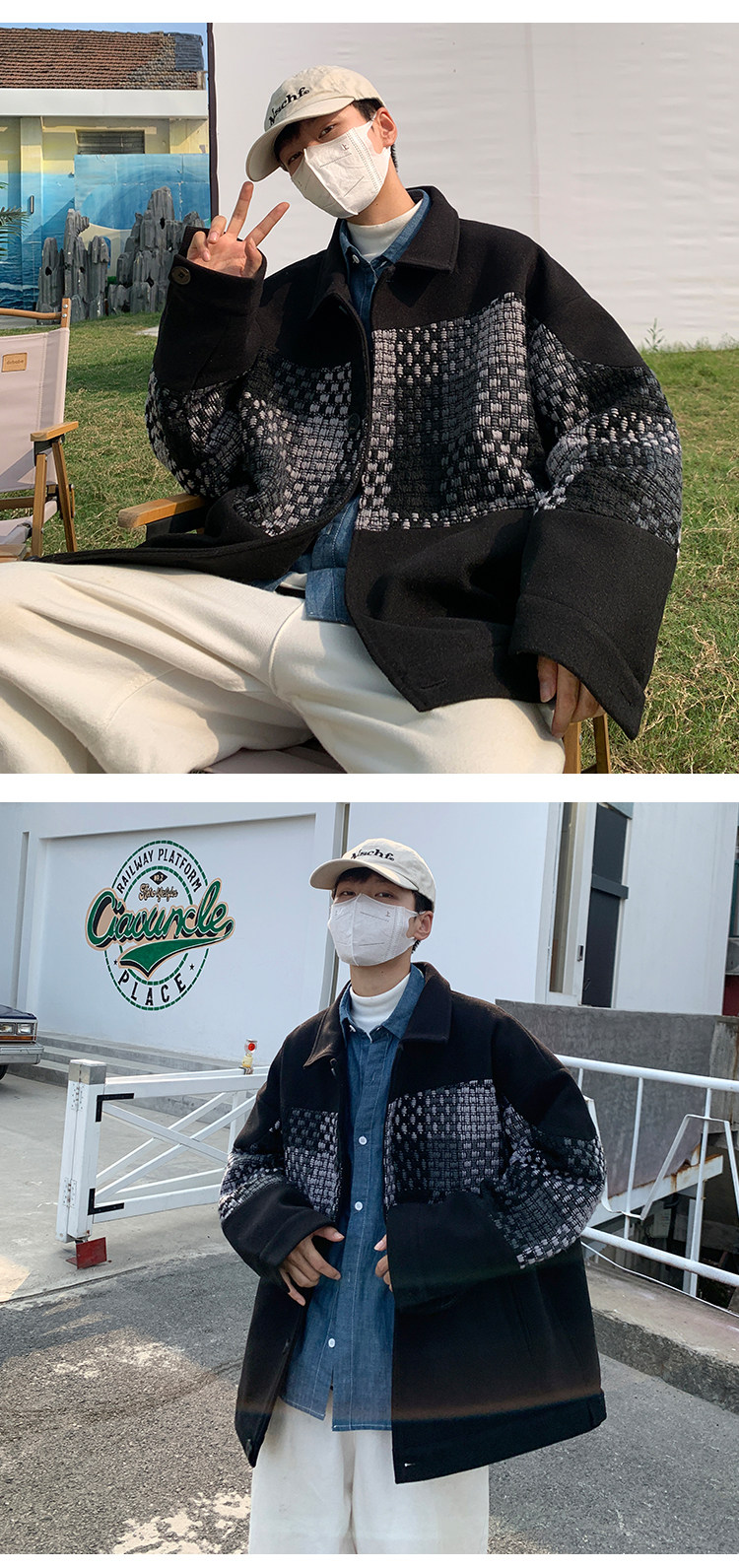 Trendy Men's Jacket with a High-End Feel, Color-Blocked Patchwork, Spring Korean Style, Fashionable Design, Woolen Coat
