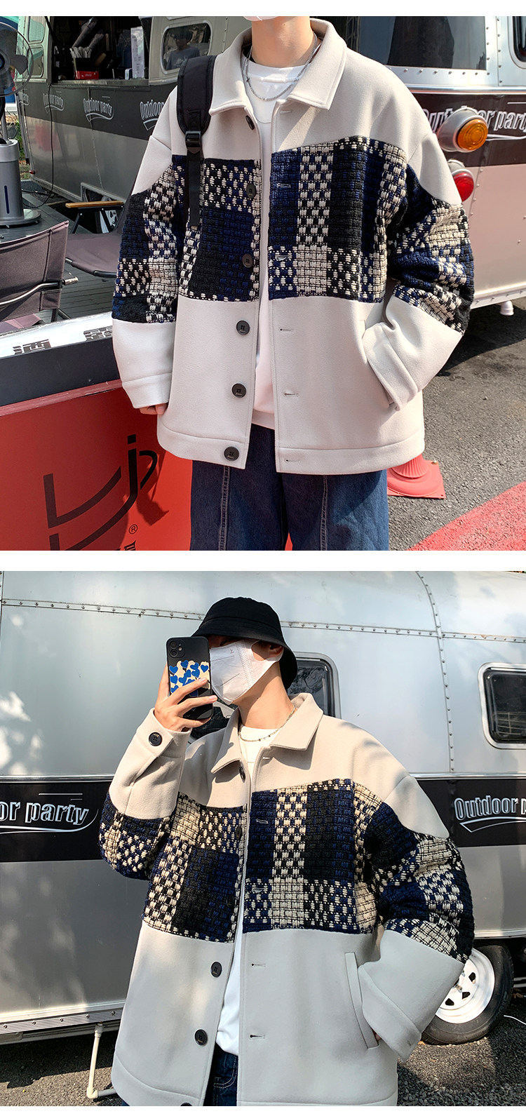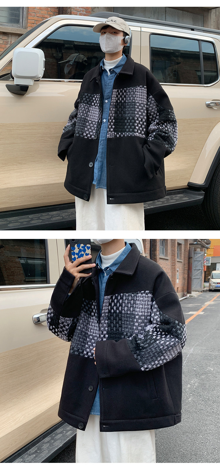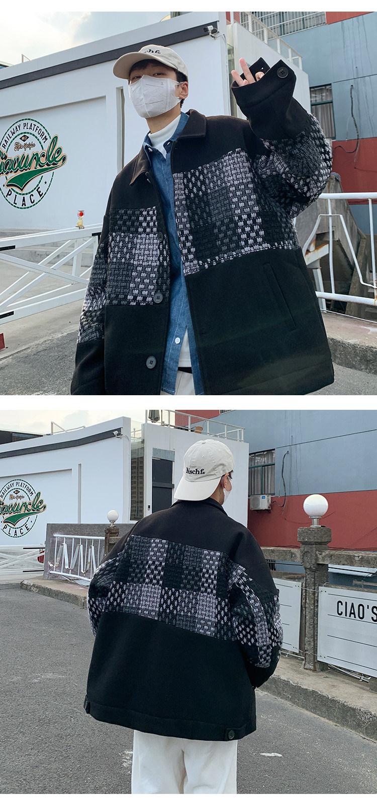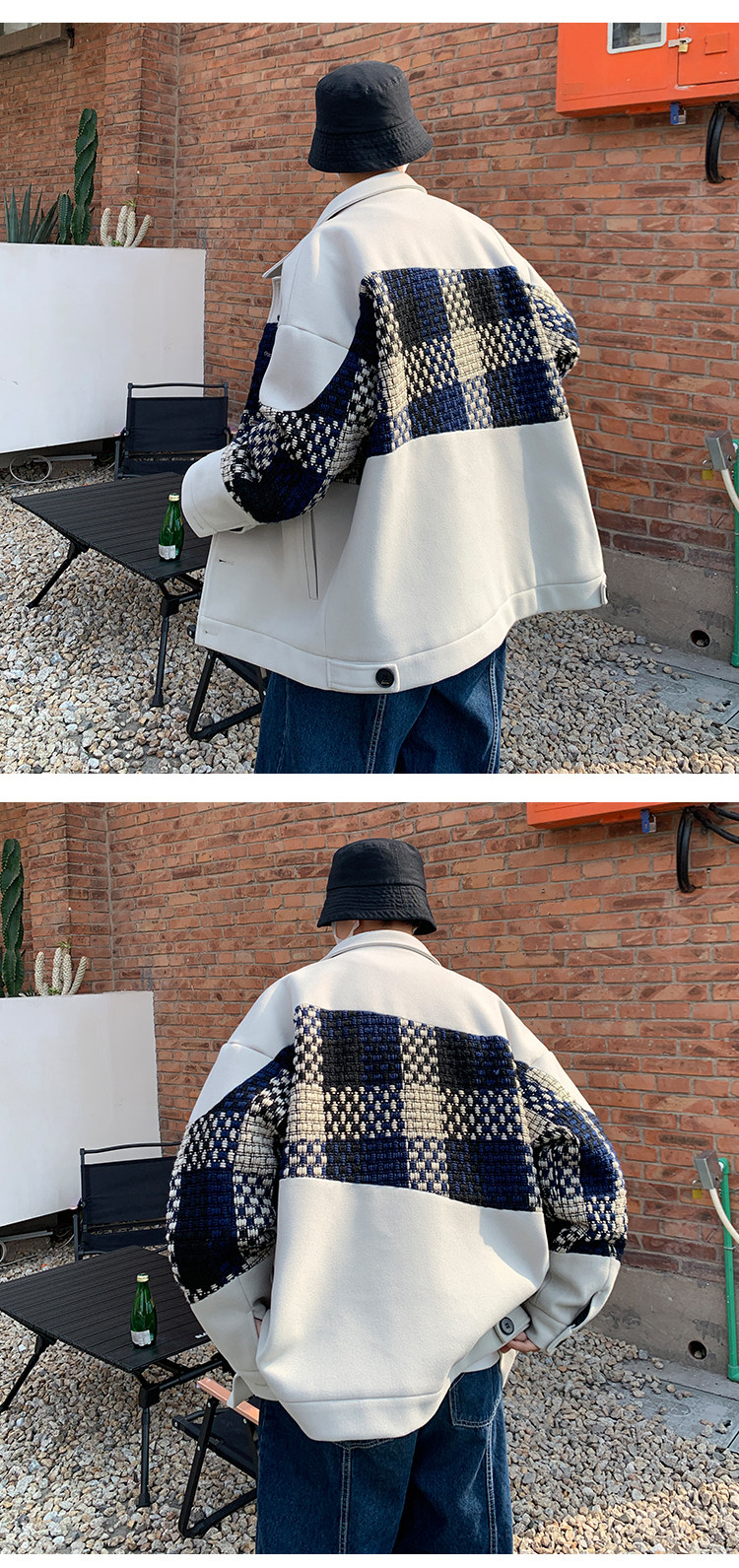 Trendy Men's Jacket with a High-End Feel, Color-Blocked Patchwork, Spring Korean Style, Fashionable Design, Woolen Coat