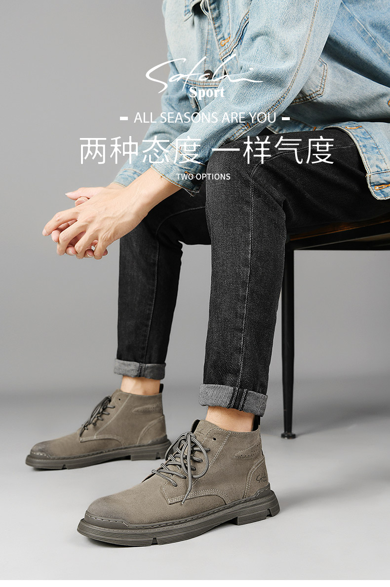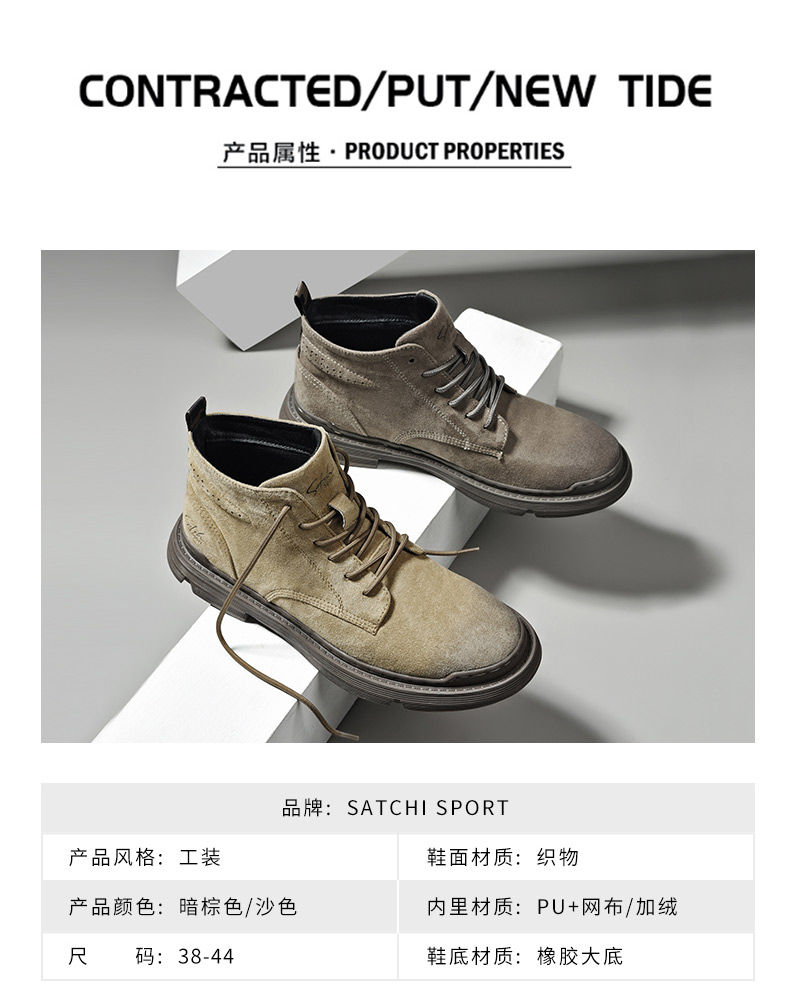 Shachi Men's Shoes Short Boots Autumn 2025 High Top Martin Boots Men's Casual Shoes Trendy and Versatile Shoes