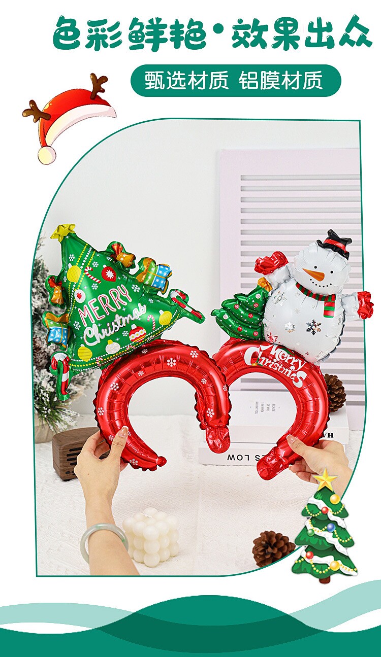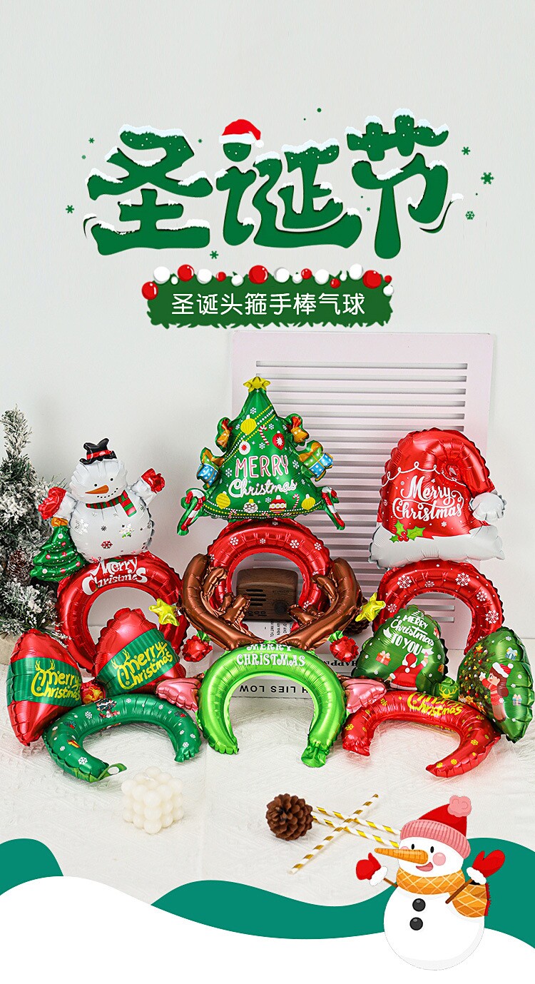 Christmas balloon headdress photo props christmas candy cane old man snowman christmas tree hand holding stick props