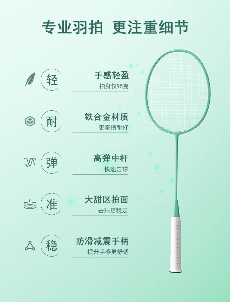 Badminton racket for couples, one-piece ultra-light, durable and highly elastic children's, student and adult badminton double racket set