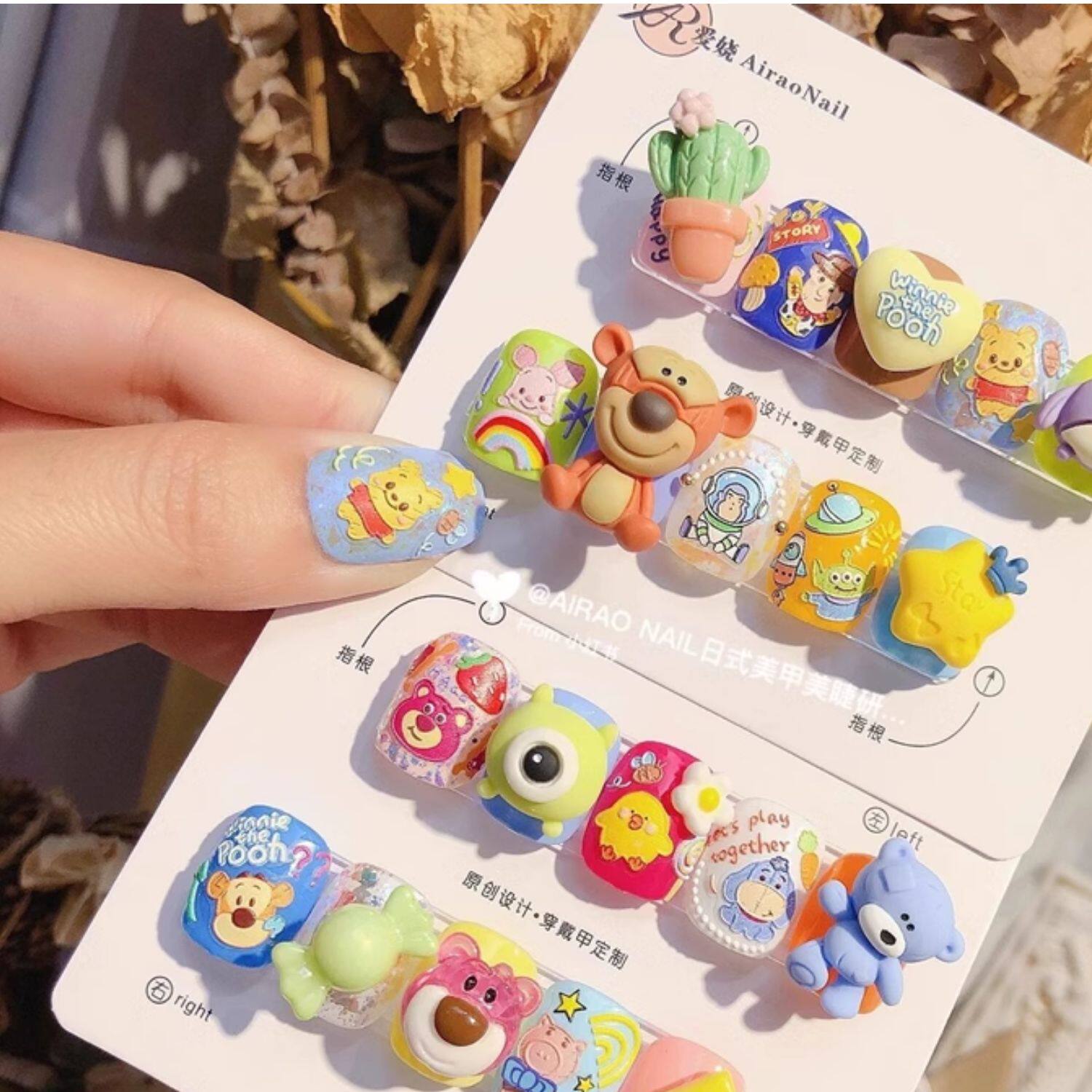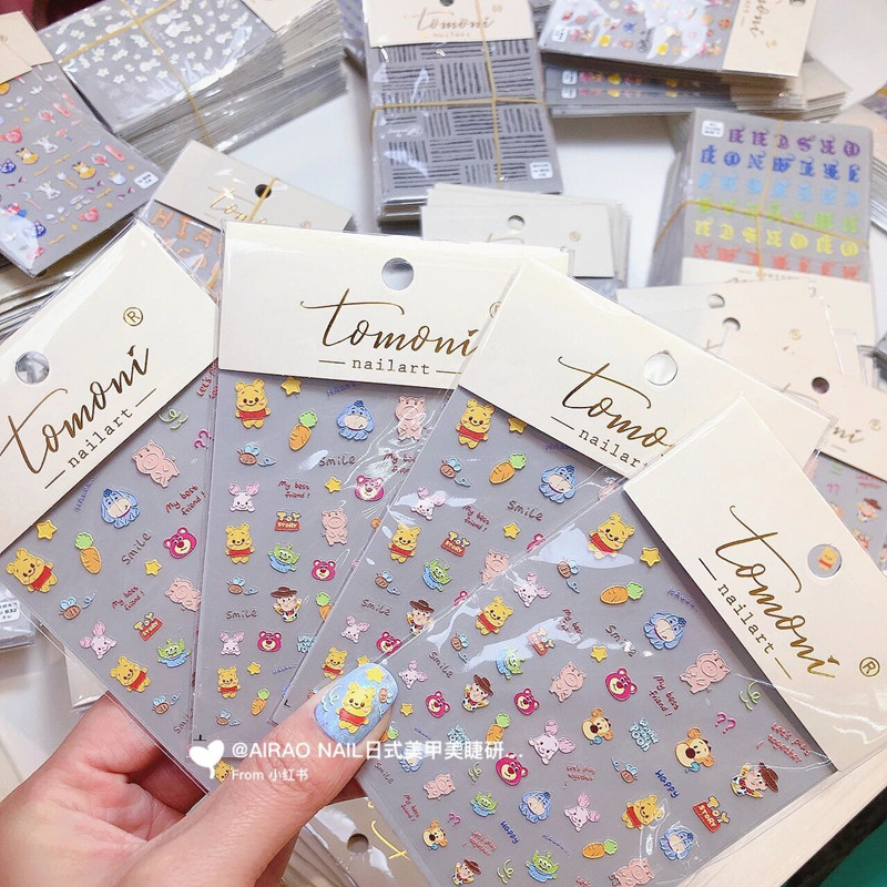 Cartoon 3d three-dimensional embossed nail stickers disney waterproof children's stickers decorative small patterns strawberry bear cute stickers girl hand account hand account gu card material mobile phone case creative diy
