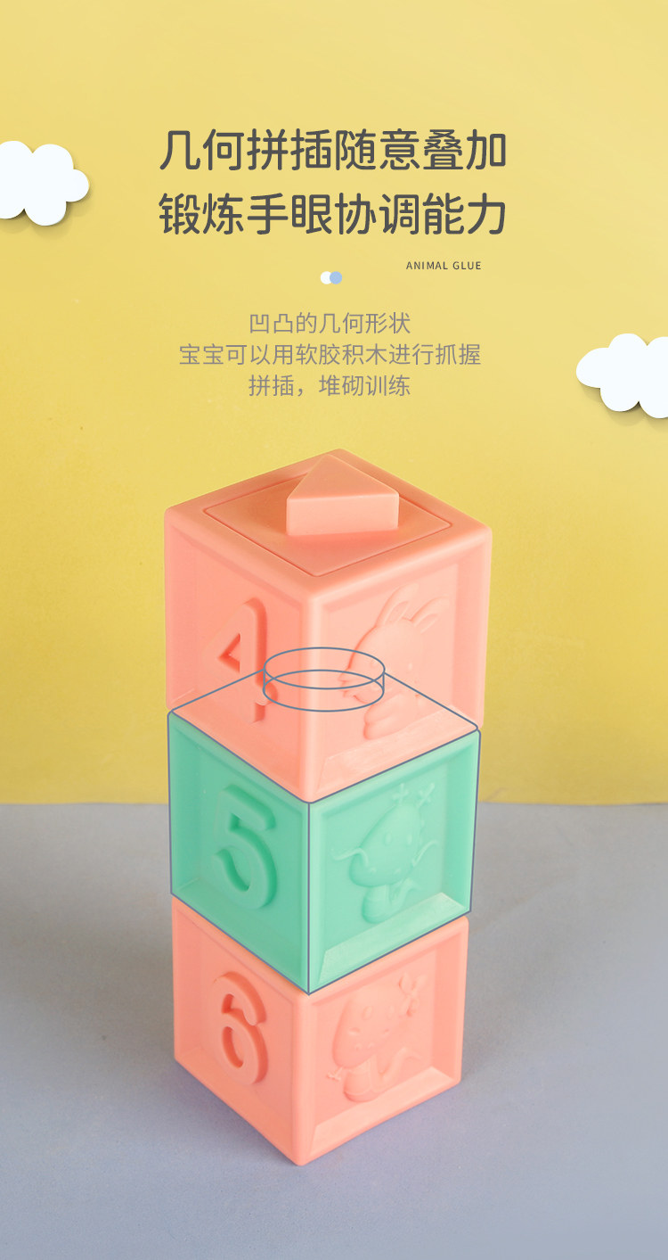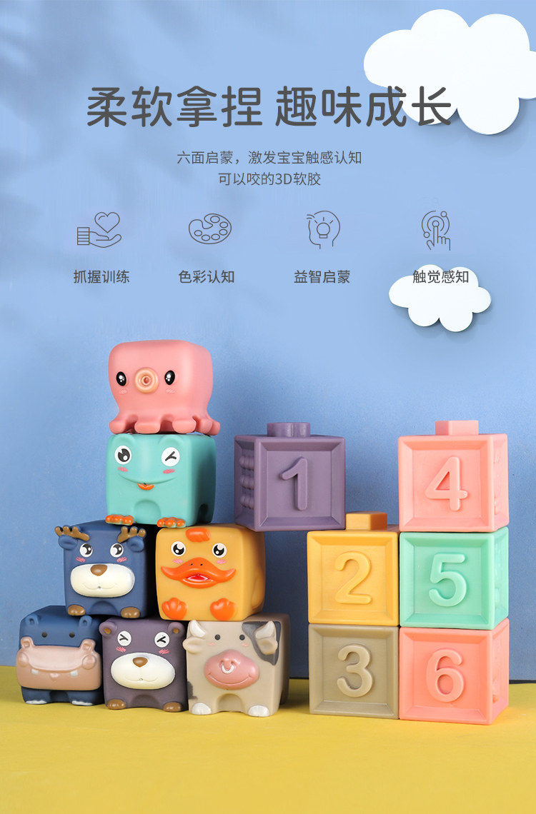 Soft plastic building blocks children's educational Jenga toys for 6-12 month old babies that can be chewed by boys and girls for early education and cognition